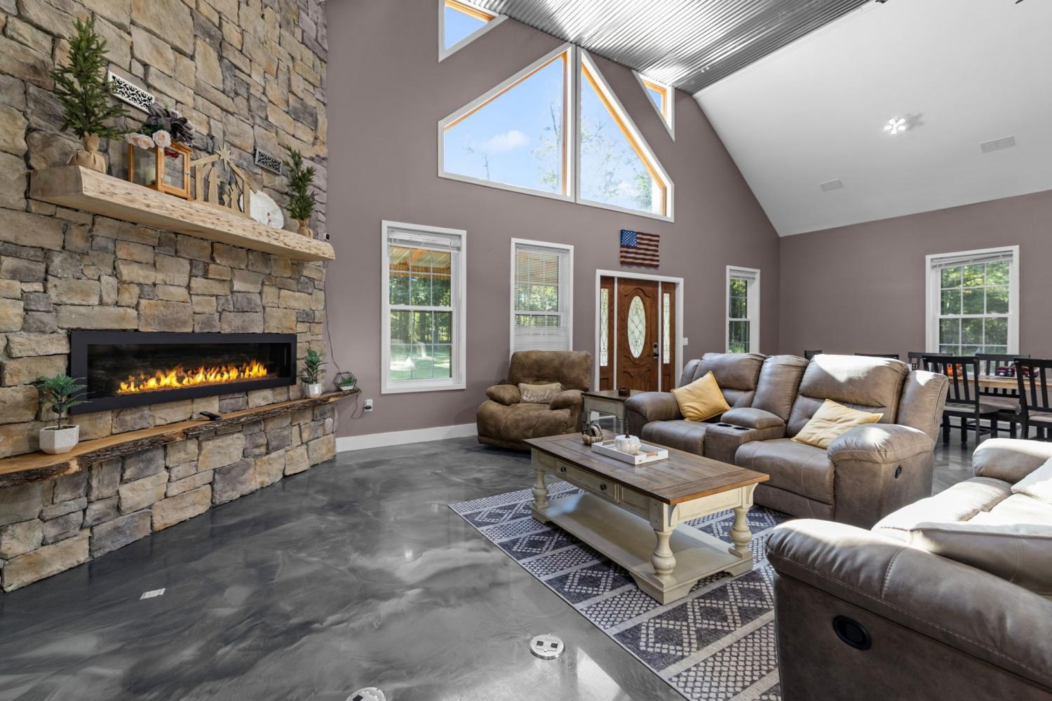 Welcome to 520 Bonner Way, a stunning custom-built Barndominium offering 4,240 SqFt of thoughtfully designed living space, situated on over 5 acres in beautiful Bonner Estates. Enjoy peaceful privacy and beautiful surroundings that make you forget you have neighbors. Inside, the home impresses with vaulted ceilings featuring built-in Bluetooth speakers, creating an open and airy atmosphere in the main living area centered around a stunning stone fireplace. The freshly painted interior showcases exceptional craftsmanship and a thoughtfully designed, spacious layout throughout. The kitchen and gathering spaces flow seamlessly together, offering plenty of room for family and guests. This home offers 3 bedrooms, 2.5 bathrooms, and three flex rooms (two downstairs and one upstairs) providing plenty of options for an office, playroom, workout space, or guest area. Throughout the house are cozy nooks perfect for quiet reading or simply enjoying the peaceful view of wildlife, including deer that frequently wander through the property. Large living room windows and the upstairs balcony layout offer an elevated spot to relax and watch the sunrise and sunset views from the comfort of your own home. The bonus room and large utility room add even more functionality, ensuring there’s a place for everything and everyone. Outside, the property continues to impress with a detached garage featuring a newly installed storm shelter, ensuring peace of mind in every season. The roof is a premium Standing Seam metal roof with a 40 year warranty. Whether you’re enjoying morning coffee on the porch, hosting friends for a weekend getaway, or simply soaking in the quiet surroundings, this property delivers the best of Tennessee country living with all the modern conveniences just minutes away. Only 10 minutes to Tullahoma and less than 10 minutes to Tims Ford Lake. Up to 1% Lender credit with preferred Lender. Seller has an accepted offer with a 48-hour right of first refusal contingency.