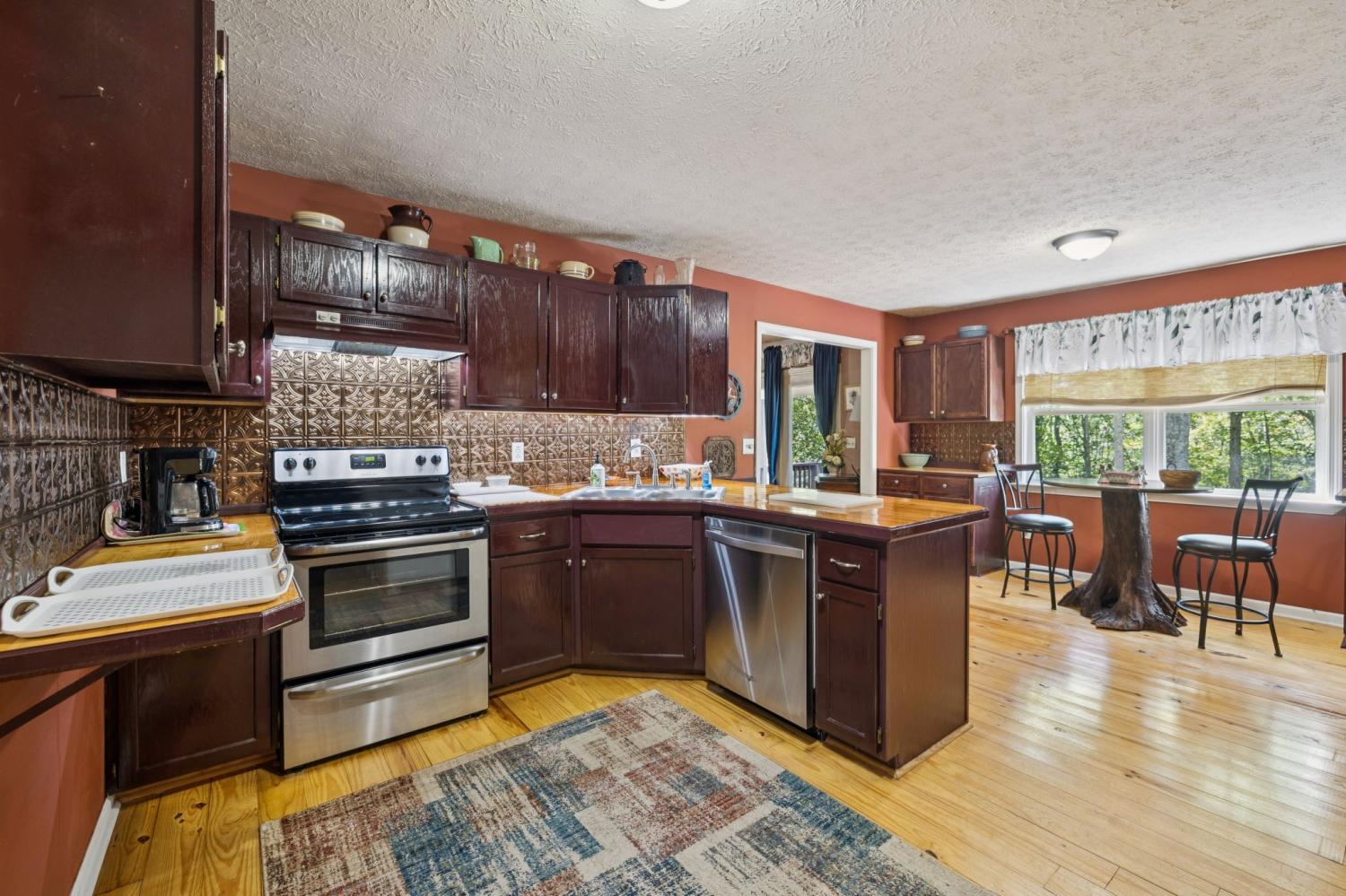 This is the kind of home you create a life in~everything is located on one level and the floorplan is perfect for the large family gatherings, the holiday parties, or maybe some indoor tricycle races~beautiful pine hardwood floors~a separate living room and den~split bedrooms~large master suite~wood burning stove in den that has a vaulted ceiling with exposed beams~living room has second fireplace that is currently electric but you could use as wood burning~located towards the end of a cul-de-sac in an area that feels very private~take a walk back to the creek on the property~ newer water heater~there is an adjacent lot for sale that can be purchased with this home see mls #3017075