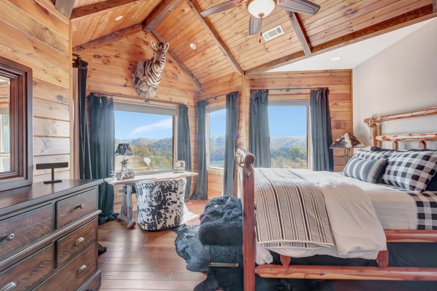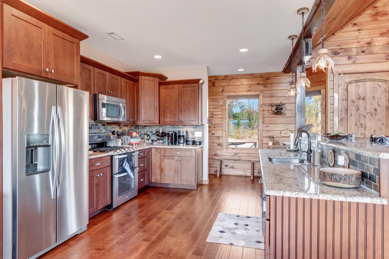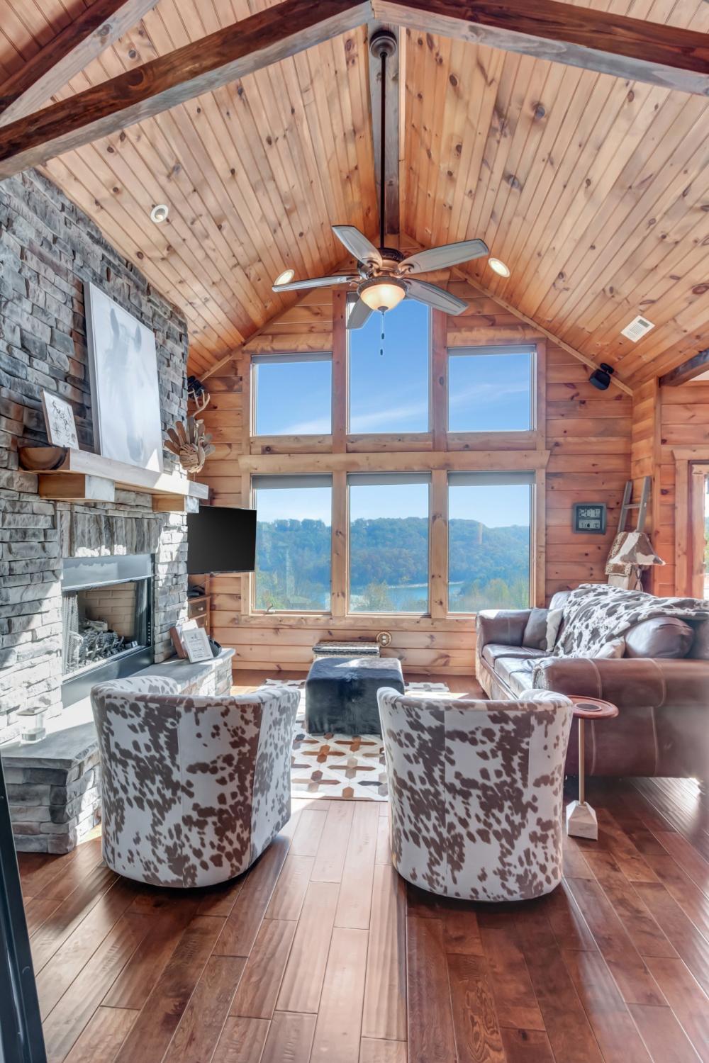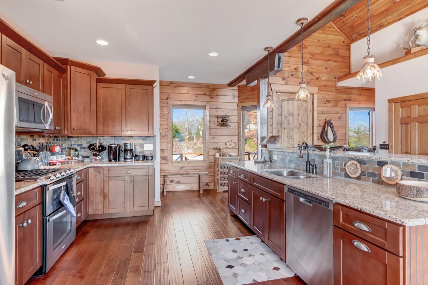 Stunning Lakeview Retreat – Fully Remodeled with Luxury Finishes! Experience lakefront living at its finest in this beautifully remodeled 4-bedroom, 3-bathroom home, offering breathtaking lake views from every room but one! Nestled in a serene setting, this home boasts exquisite cedar woodworking inside and out, elegant hardwood floors, and unique cowhide cabinets, creating a perfect blend of rustic charm and modern luxury. The open-concept kitchen features a gas cooktop, stainless steel appliances, and custom chandeliers, while the spacious living areas—two on the main level and a third downstairs—offer ample space for relaxation and entertaining. Custom mirrors add a touch of sophistication throughout. Step outside to your private backyard oasis, complete with a wraparound cedar deck, a built-in gas grill, and a six-person hot tub—perfect for soaking in the views after a long day. The two-car garage provides convenience, and the home is short-term rental-friendly, making it an excellent investment opportunity. Don’t miss this rare chance to own a fully updated lakeview retreat with unparalleled charm and modern amenities. Schedule your private tour today!