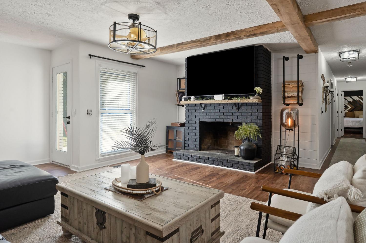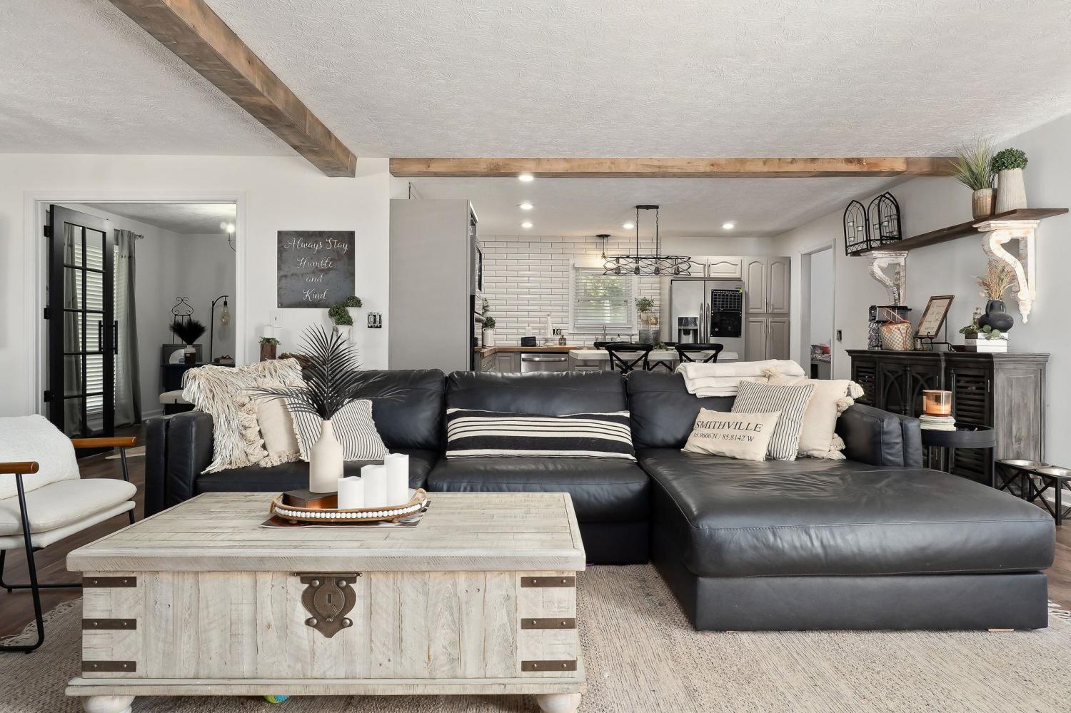 One-of-a-Kind – This is Not a Cookie Cutter Home! Don’t miss this rare opportunity to own a completely renovated, one-level ranch home that stands out from the crowd. Thoughtfully reimagined with high-end finishes and custom details throughout, this 3 bed, 2 bath home, with an oversized office, that is revealed through custom double doors, and a 2-car garage, offers both function and flair. This gem sits on a rare, peaceful, 2+ acre lot in a sought-after neighborhood just minutes from Center Hill Lake. Step inside to an expansive open-concept living space that seamlessly blends rustic charm with modern luxury. The kitchen is a chef’s dream—featuring double ovens, a deep farmhouse sink, 2” thick butcher block countertops, and striking tile that extends to the ceiling. Custom wood beams, crafted from locally sourced lumber, add warmth and character to the living area, while continuous designer LVP flooring flows throughout the entire home. The spacious primary suite offers a spa-like retreat with a double farmhouse vanity, elegant walk-in shower, and an enormous walk-in closet outfitted with custom rails spanning both sides. Two additional bedrooms are generously sized, and the guest bathroom impresses with a fully tiled tub/shower combo, dual flush toilet and boutique vanity. Outside, the charm continues. Enjoy a large fenced in area with a finished outbuilding, complete with LVP flooring—perfect as a luxury dog suite or upscale playhouse. An additional outdoor shed provides extra storage. The large wood deck and a massive outdoor firepit, bordered by authentic Smithville creek boulders, is the ultimate gathering space for entertaining. With a new roof (2023) and updates in every corner, this home is truly move-in ready. It's not just a home—it’s a handcrafted masterpiece, designed to stand the test of time.