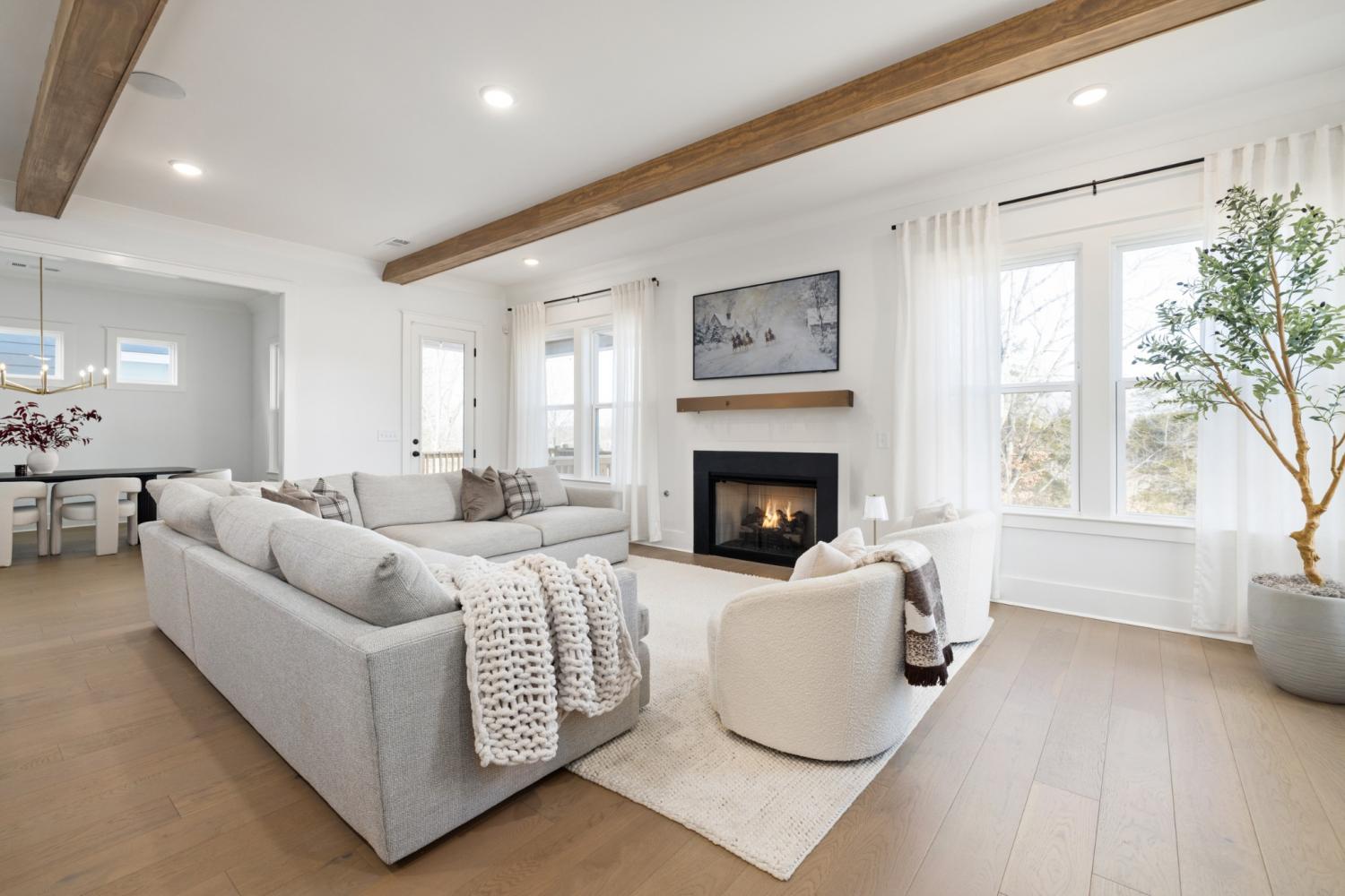 Welcome to this gorgeous home in the highly sought-after Lockwood Glen community in Franklin, TN! Conveniently located near I-65 and minutes from historic downtown Franklin’s charming shops and restaurants, this home blends modern style and timeless comfort. Impeccably maintained and practically brand new, it features hardwoods throughout the main level and custom touches at every turn. The stunning kitchen offers ceiling-height cabinetry, a beverage center, and top-tier appliances, opening to the living and dining areas with natural wood beams and cozy finishes. The main-level primary suite is a retreat with double vanities, a soaking tub, a floor-to-ceiling tile shower, a spacious walk-in closet, and a main-level laundry room. Also on the main floor are a private office and a stylish half bath. Upstairs, you'll find four bedrooms, two with private baths (one with a balcony) and two connected by a Jack-and-Jill bath, plus a spacious bonus room ideal for a playroom or media space. The finished basement offers a versatile bonus room, half bath, and ample unfinished storage. A $10,000 built-in sound system extends throughout the home, including the outdoor porch for music streaming and basement surround sound for movie or gaming nights. Outdoor living is a dream on the covered back deck, with the home situated on an end block with no neighbors at the rear and adjacent to a green space to be finished by the developer. Lockwood Glen residents enjoy amenities like a clubhouse, pool, and playground. This home truly has it all—style, functionality, and an unbeatable location!