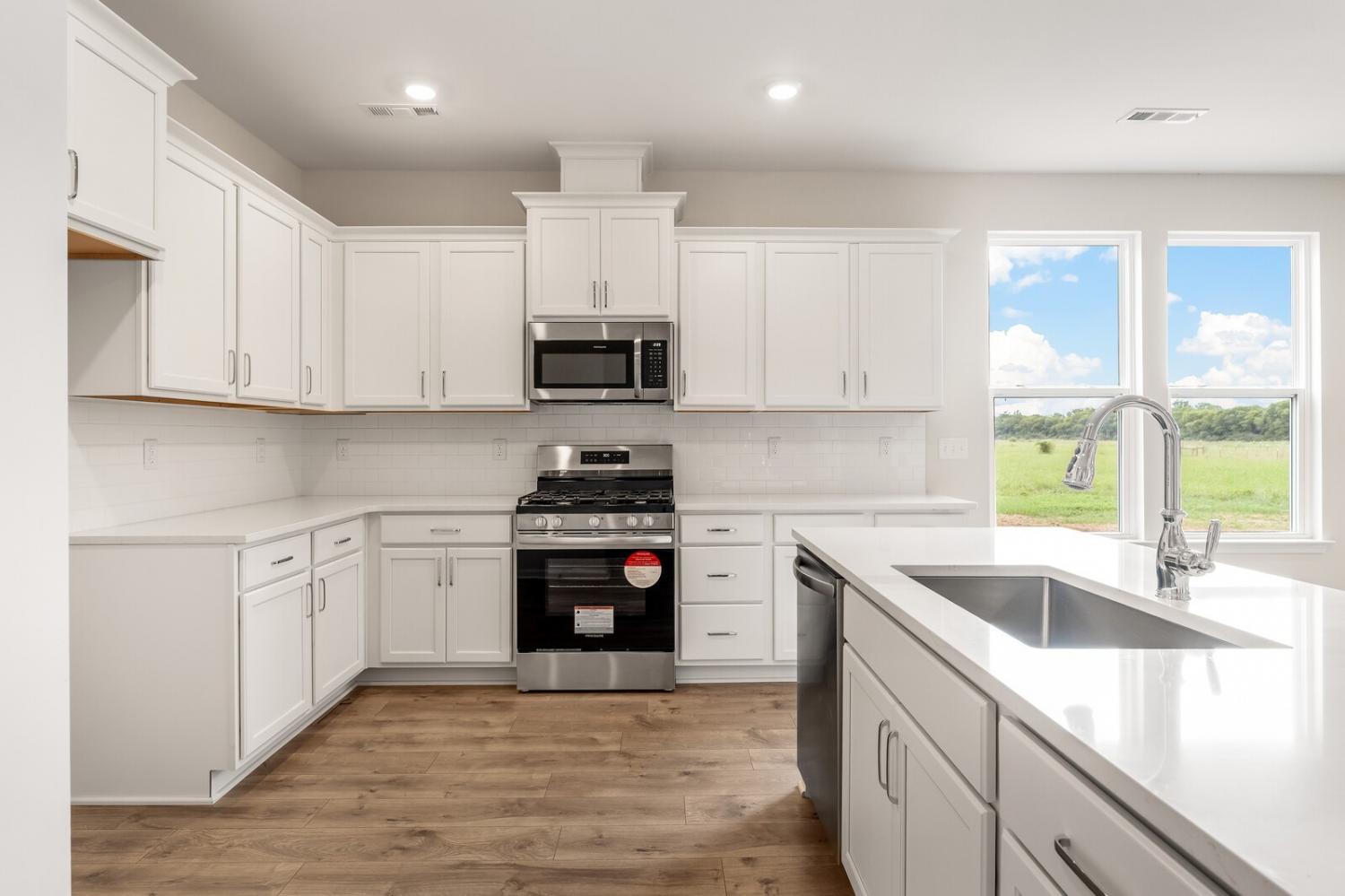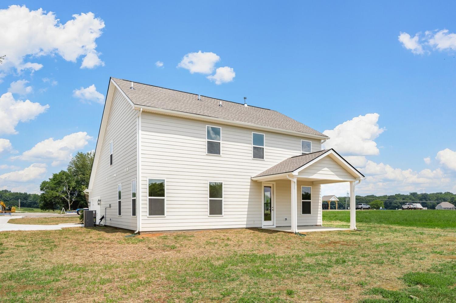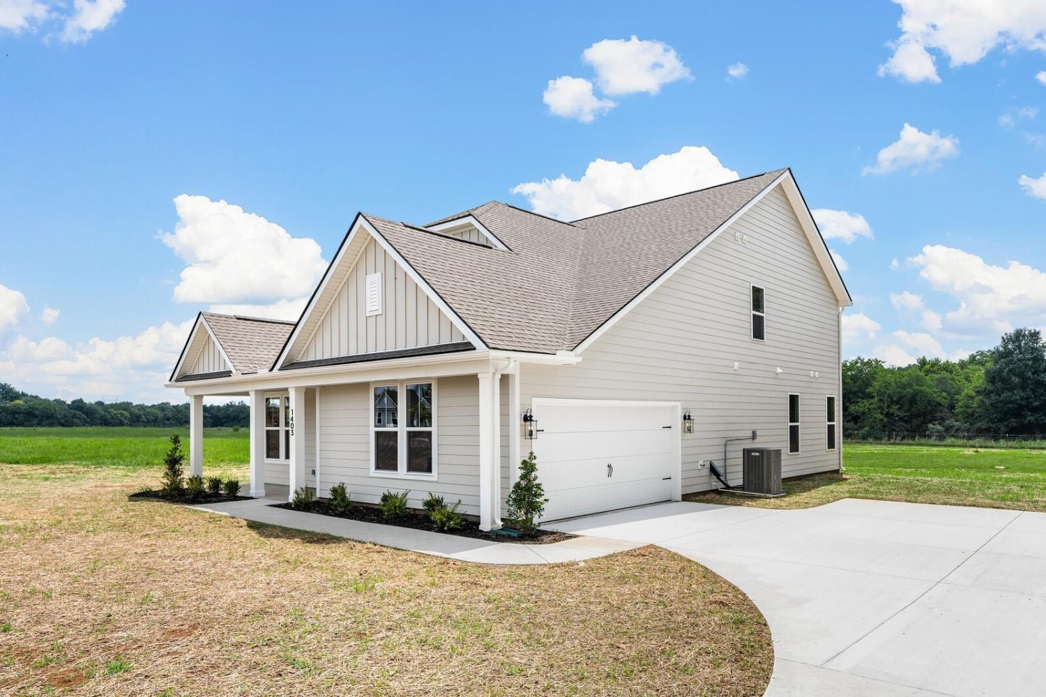 Move-in ready and located in a premier community of just 37 estate-sized homes, this beautifully designed 4-bedroom, 3.5-bath Caldwell floor plan offers 2,644 square feet of stylish, functional living space. Sitting on a spacious ¾-acre lot that backs up to a peaceful tree line, this home features durable HardiBoard siding and thoughtful upgrades throughout. The main-level primary suite provides privacy and convenience, while upstairs includes three generously sized bedrooms, a large bonus room, and excellent walk-in storage. The open-concept kitchen is equipped with a gas cooktop, quartz countertops, and connects seamlessly to the living and dining areas. Additional highlights include fully tiled bathrooms, elegant open stair railing, and a covered rear porch perfect for relaxing or entertaining. This home is a true retreat offering space, comfort, and style in a sought-after setting—schedule your tour today!