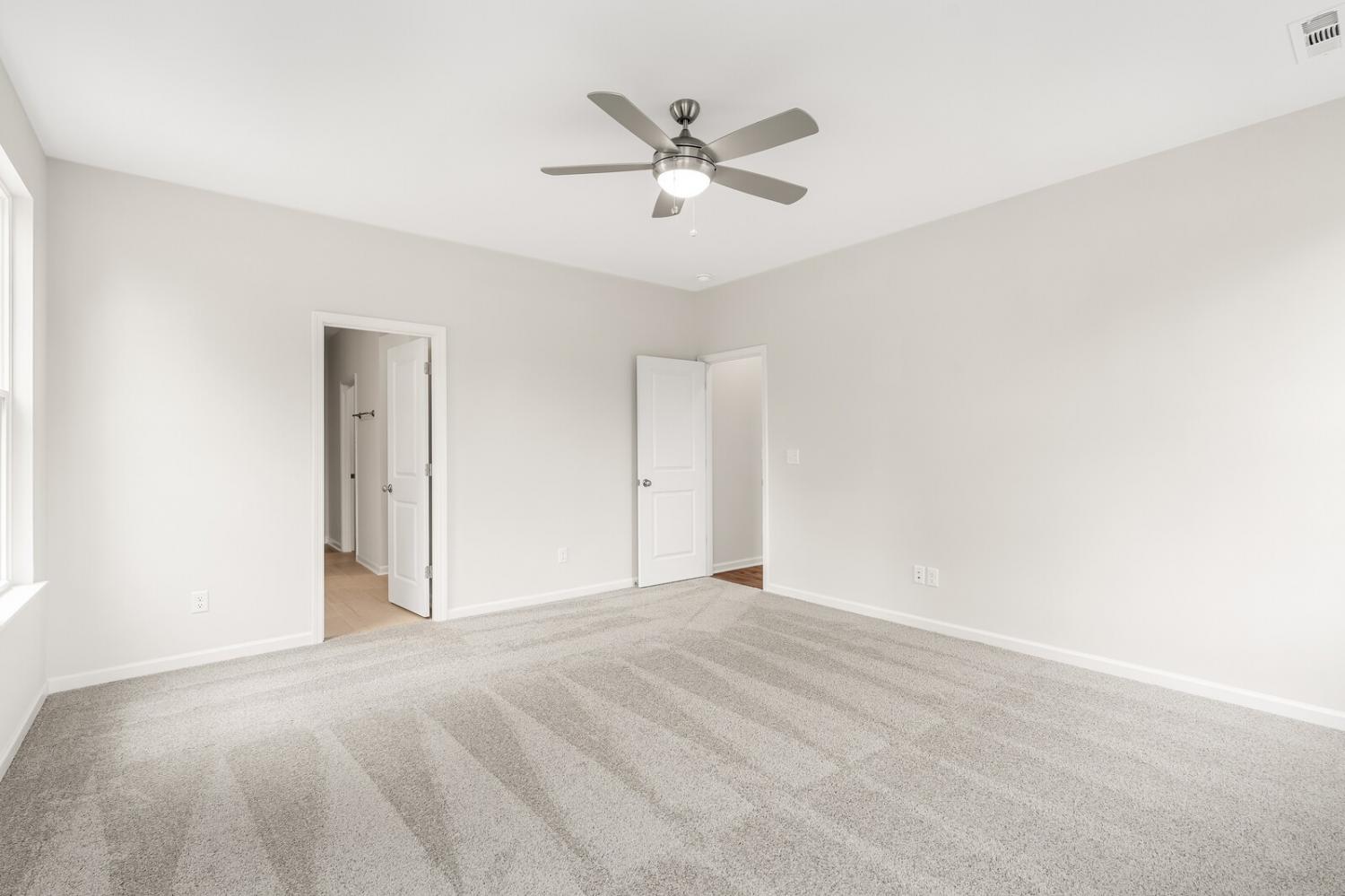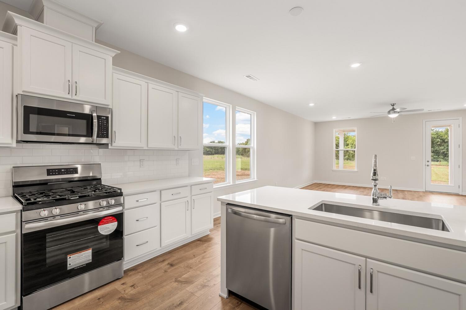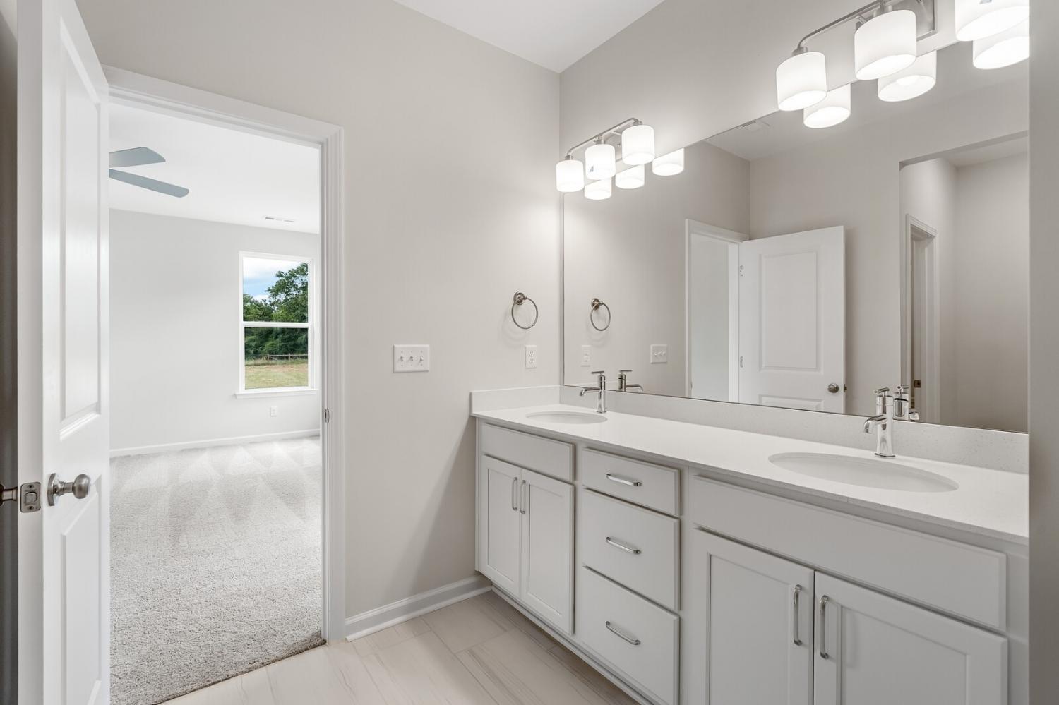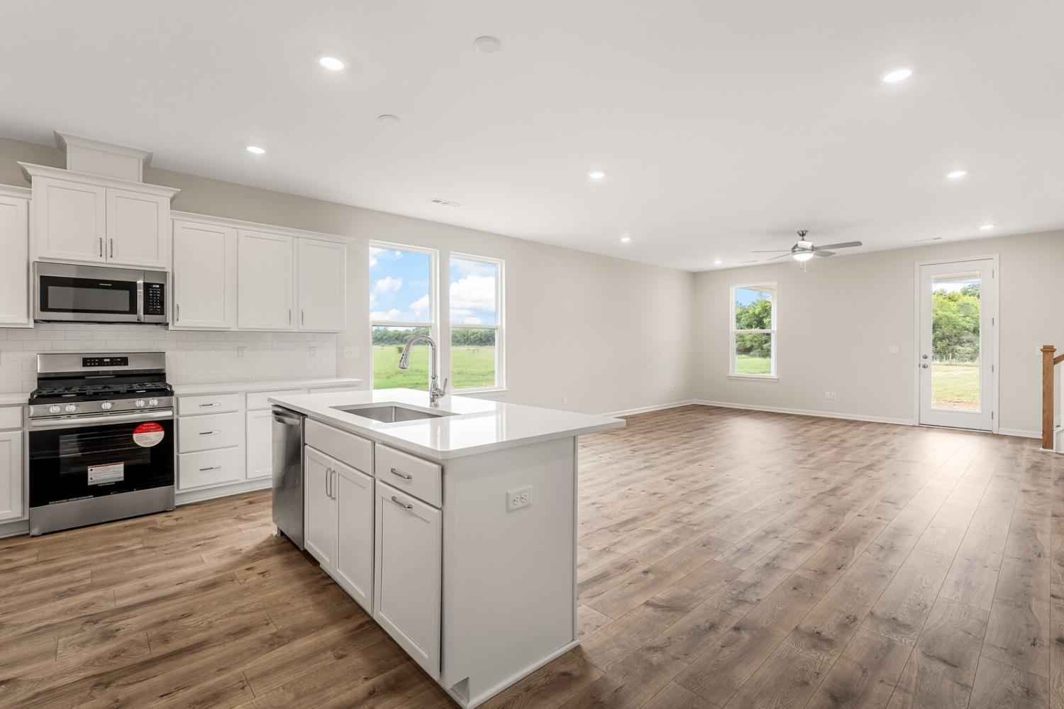 Move-in ready and located in a premier community of just 37 estate-sized homes, this beautifully designed 4-bedroom, 3.5-bath Caldwell floor plan offers 2,644 square feet of stylish, functional living space. Sitting on a spacious ¾-acre lot that backs up to a peaceful tree line, this home features durable HardiBoard siding and thoughtful upgrades throughout. The main-level primary suite provides privacy and convenience, while upstairs includes three generously sized bedrooms, a large bonus room, and excellent walk-in storage. The open-concept kitchen is equipped with a gas cooktop, quartz countertops, and connects seamlessly to the living and dining areas. Additional highlights include fully tiled bathrooms, elegant open stair railing, and a covered rear porch perfect for relaxing or entertaining. This home is a true retreat offering space, comfort, and style in a sought-after setting—schedule your tour today!