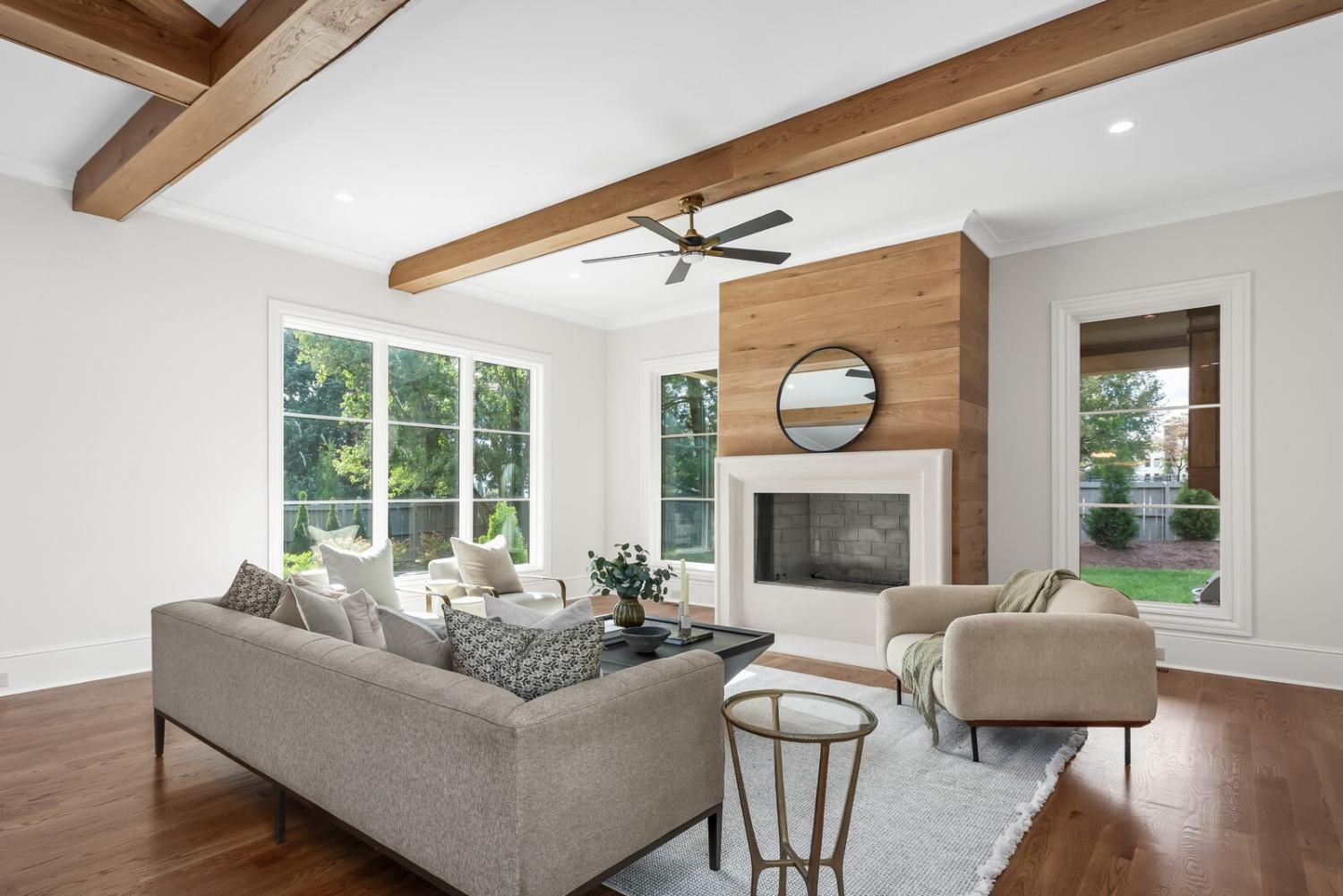 Set on nearly an acre in one of Brentwood’s most desirable neighborhoods, this 6,000+ SF transitional-style home pairs timeless design with modern luxury. With 5 bedrooms, 5 full and 2 half baths, it’s thoughtfully designed for both everyday living and elegant entertaining. The light-filled interior features 10’ ceilings, 4" white oak hardwoods, and a chef’s kitchen with Wolf and Sub-Zero appliances. The great room and hearth room open to a covered patio with built-in outdoor kitchen—perfect for summer gatherings or cozy fall evenings. The main-level primary suite offers a private porch and spa-like bath. A 4-car garage, EV charging, and central vac add convenience, while zoning for top Williamson County schools completes the package.