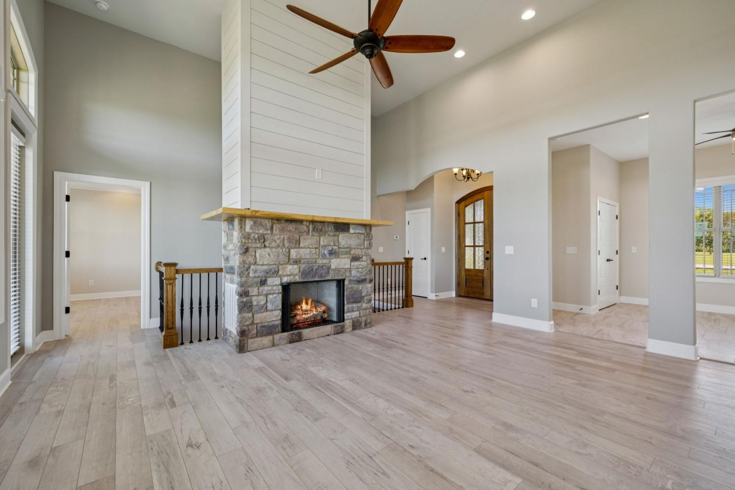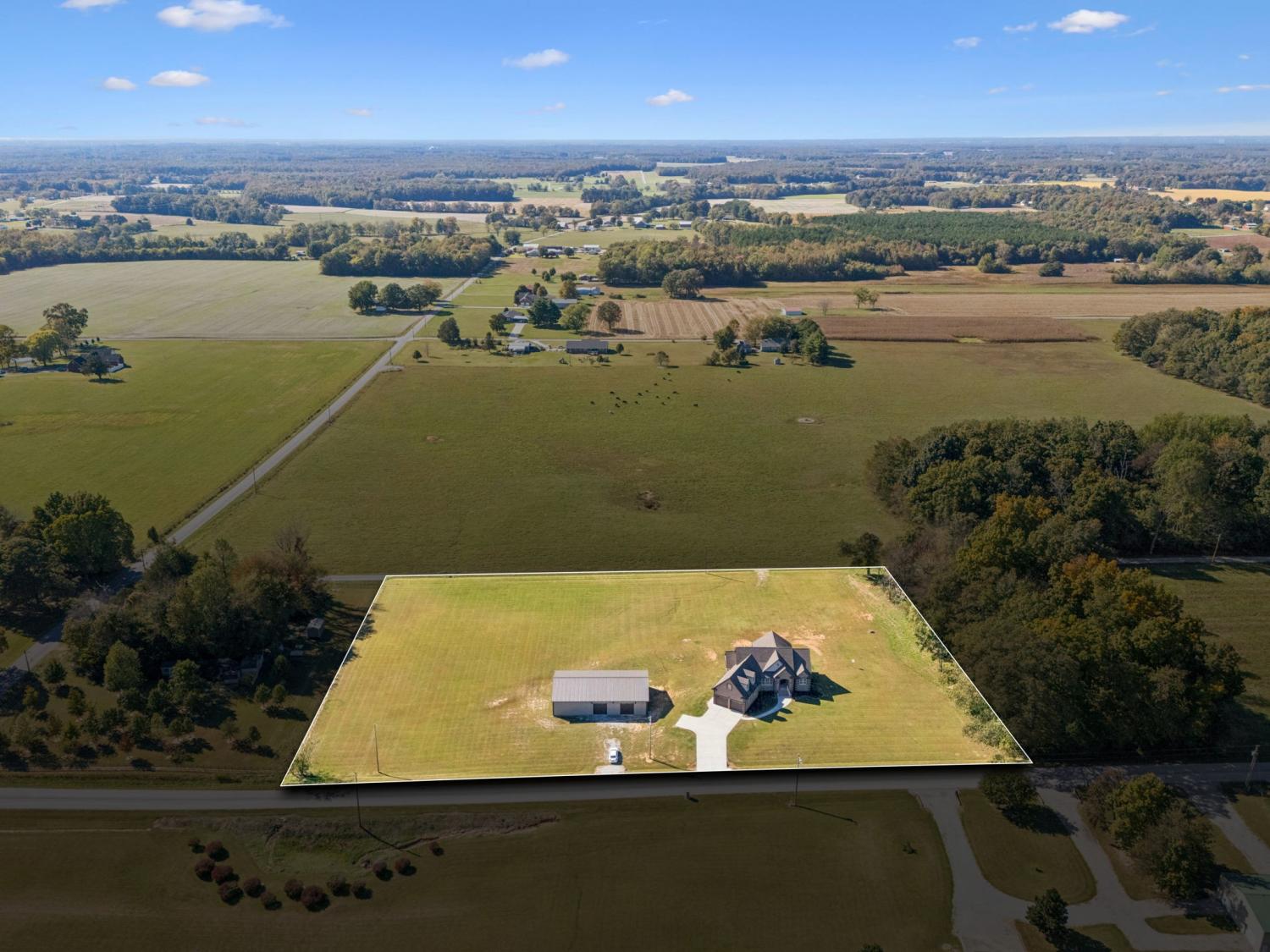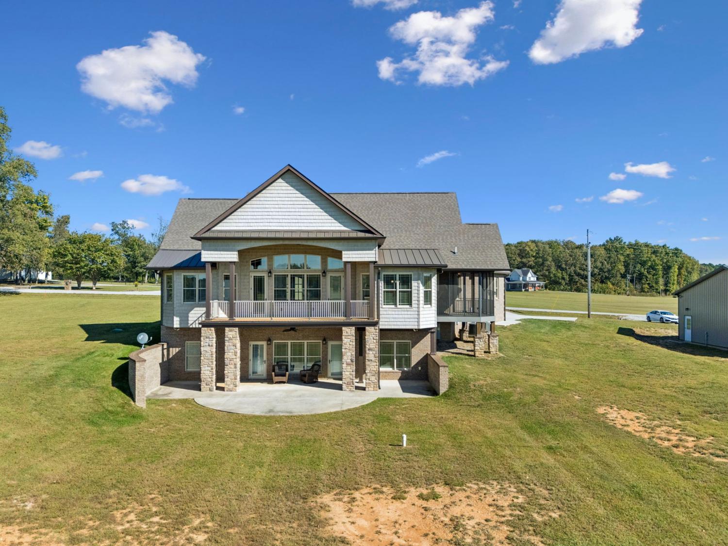 Experience luxury, comfort, and privacy in this immaculate all-brick custom home on 3 manicured acres. The open-concept main level features soaring ceilings, hardwood floors, and a stunning stone fireplace. A gourmet kitchen offers upscale finishes, quality cabinetry, and space for entertaining. The main-level primary suite provides a peaceful retreat, while the finished lower level adds two bedrooms, two baths, a media room with mini kitchen, a safe room, and bonus space ready for a 4th bedroom or office. Enjoy multiple outdoor living areas—an enclosed breakfast deck with fireplace, a covered patio, and a separate deck—all surrounded by mature landscaping. A massive 40x70 wired workshop completes this rare property.