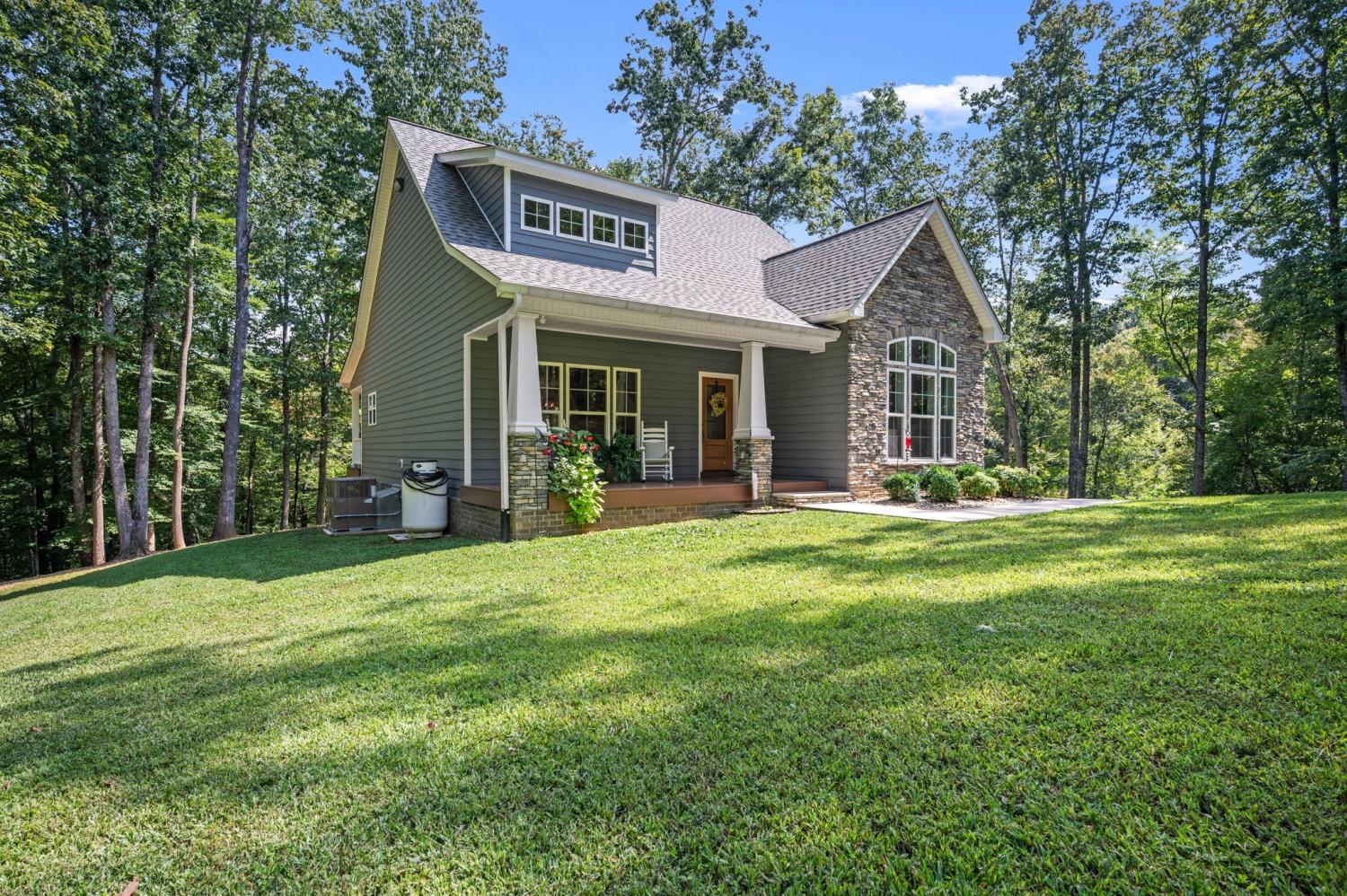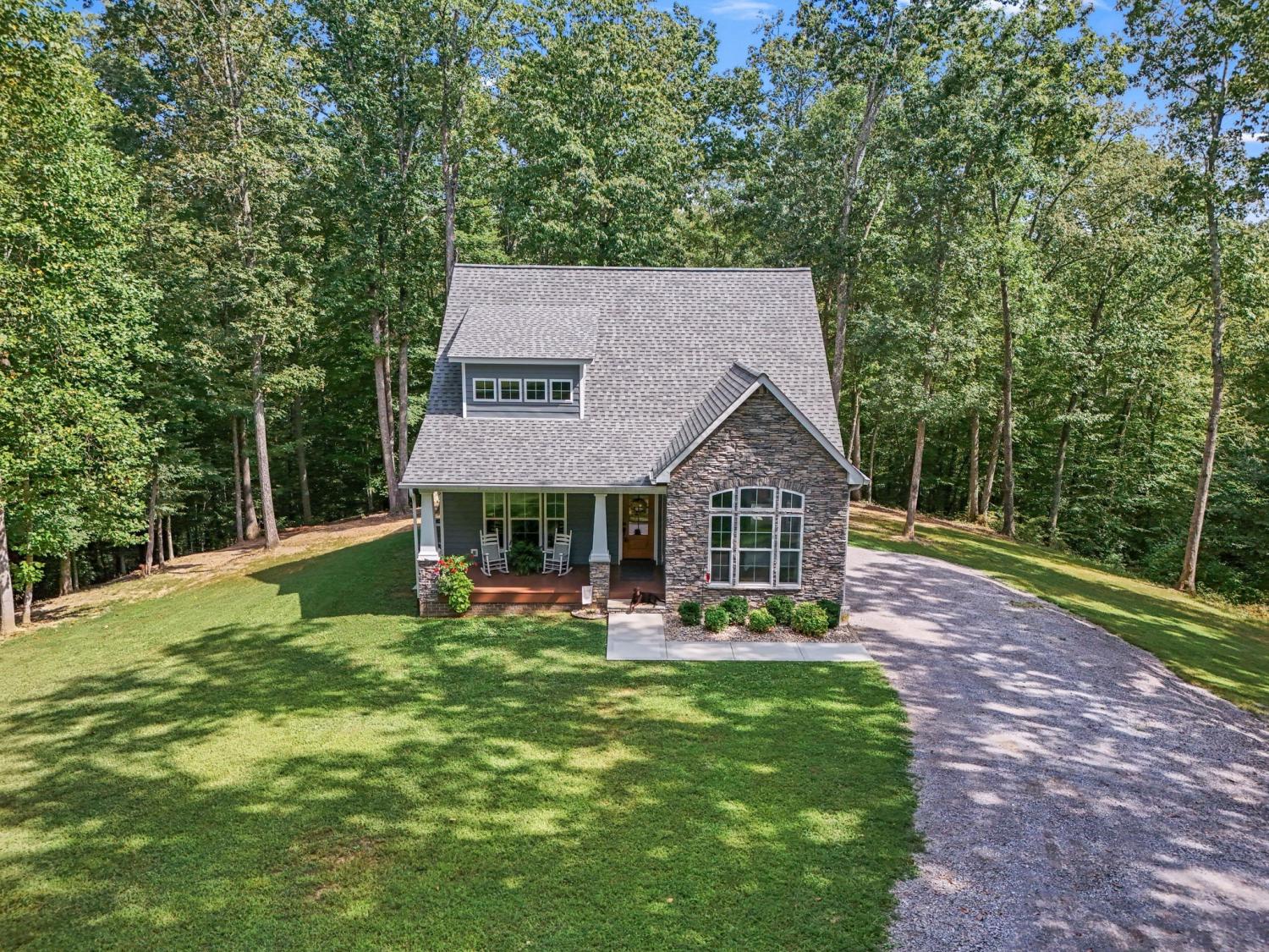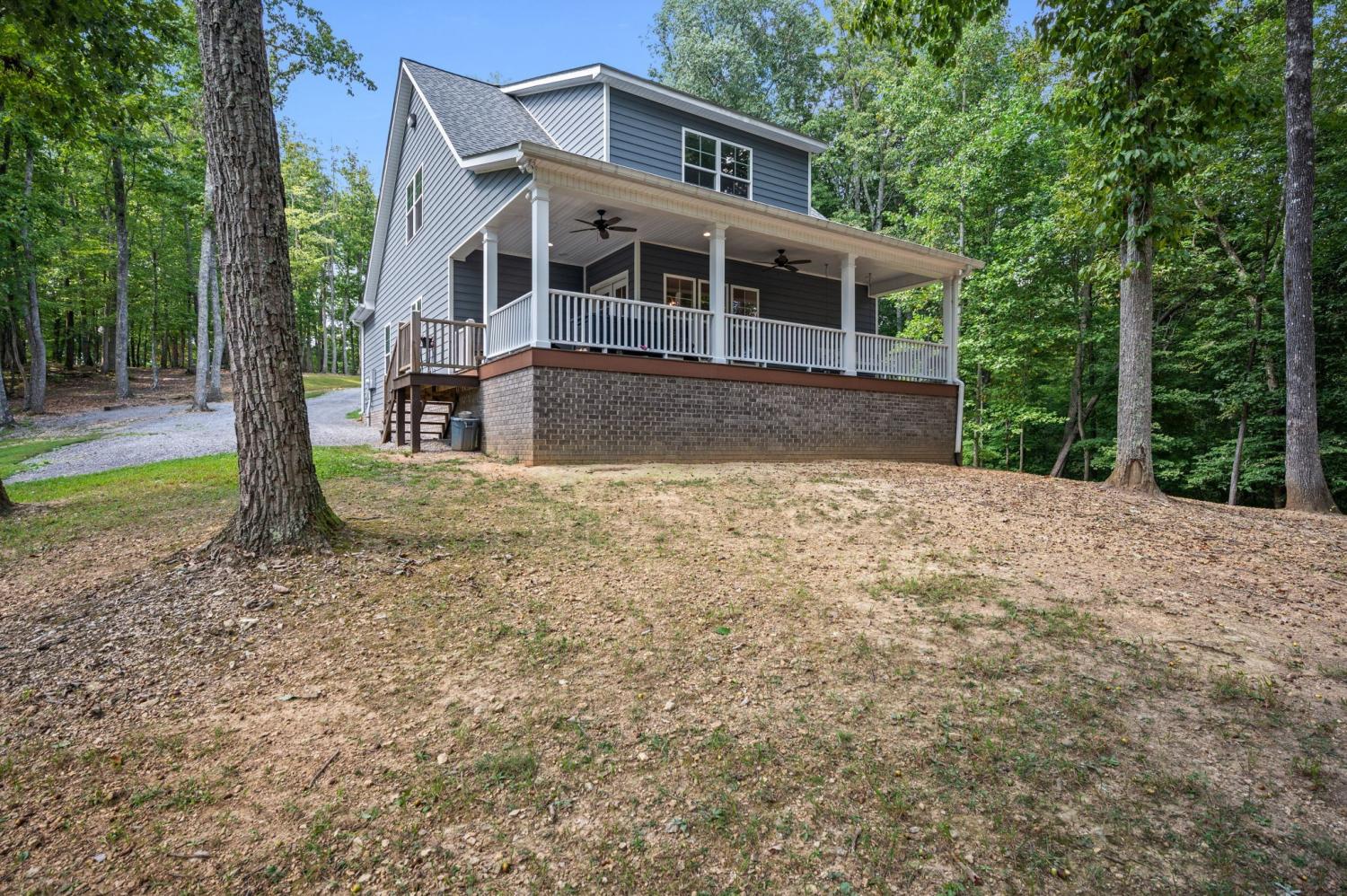 Tucked away on 9 mostly wooded acres, this practically new home offers a tranquil retreat surrounded by nature. Step inside to a home filled with natural light and a warm, inviting atmosphere. The spacious living room features vaulted ceilings and a gas fireplace. The large kitchen boasts granite countertops, a large bar adjacent to the living room, and stainless appliances, perfect for both everyday living and entertaining. With every bedroom featuring its own bathroom plus a downstairs half bathroom, this home provides a comfortable and convenient layout for family and guests. Real hardwood floors and tile are throughout the home. Practical features like spray foam insulation, an encapsulated crawl space, Everlast Composite Siding, and excellent well water ensure peace of mind. With distant waterfall sounds, you’ll never want to leave the covered back porch. Possible second soil site, an open field, and 1300 ft of road frontage offers potential for additional building sites. Experience the perfect blend of modern comfort and secluded, natural beauty in this one-of-a-kind property.