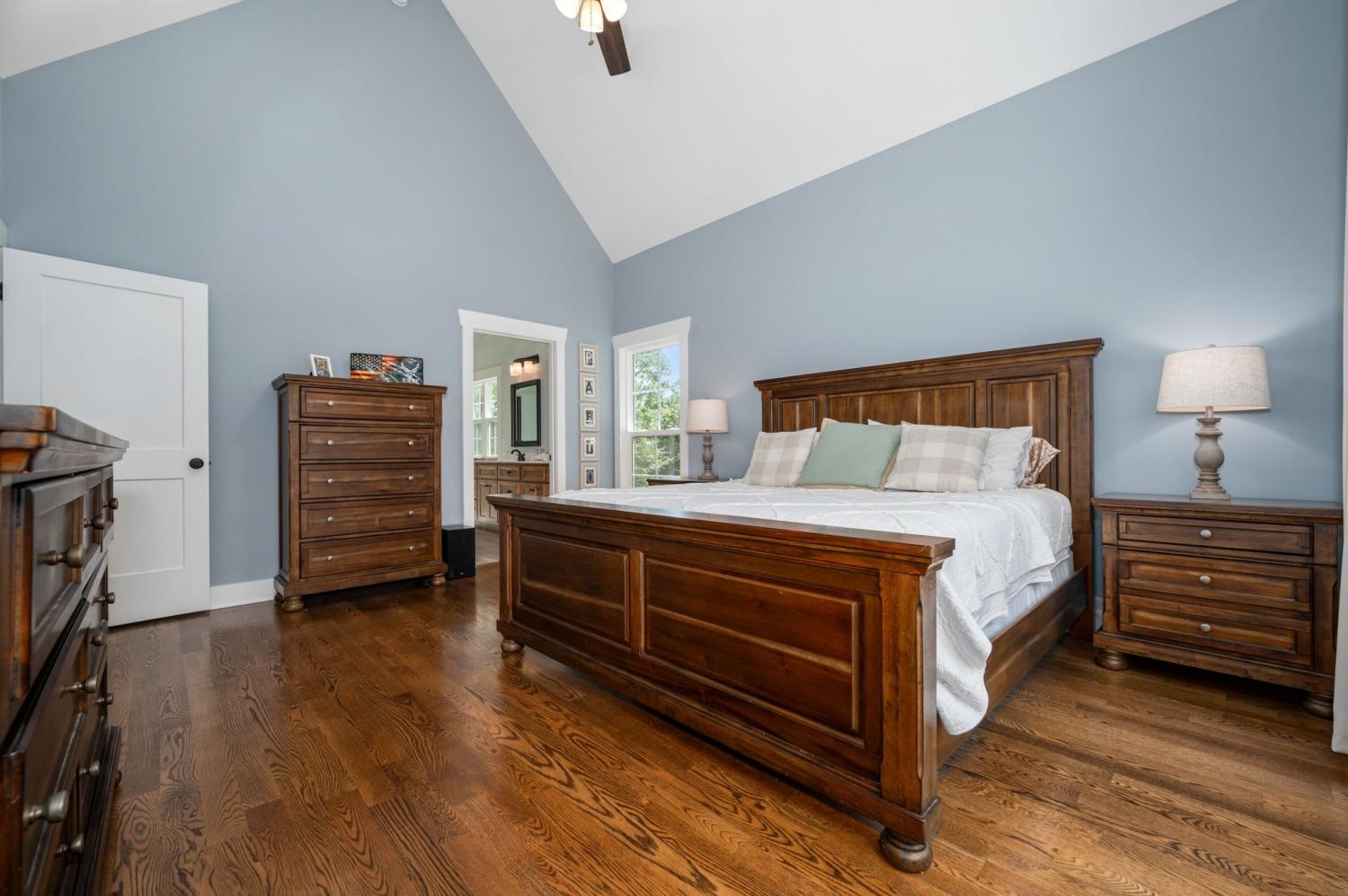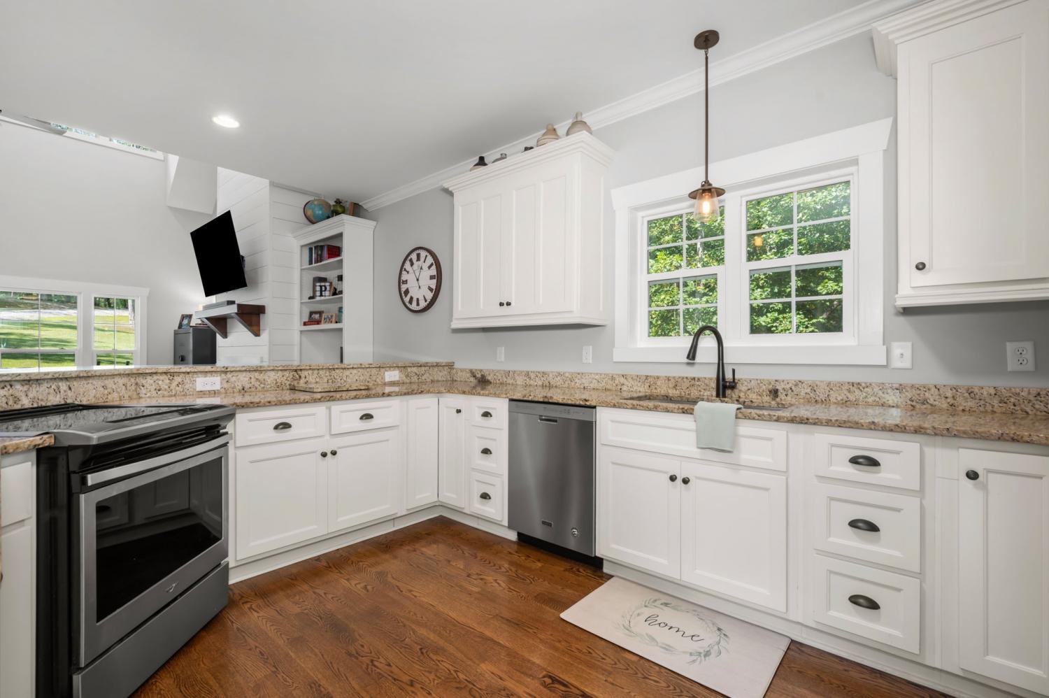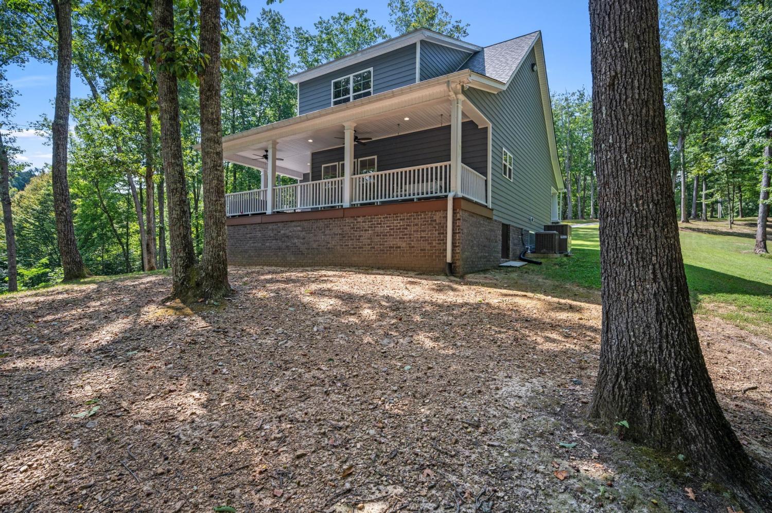 Tucked away on 9 mostly wooded acres, this practically new home offers a tranquil retreat surrounded by nature. Step inside to a home filled with natural light and a warm, inviting atmosphere. The spacious living room features vaulted ceilings and a gas fireplace. The large kitchen boasts granite countertops, a large bar adjacent to the living room, and stainless appliances, perfect for both everyday living and entertaining. With every bedroom featuring its own bathroom plus a downstairs half bathroom, this home provides a comfortable and convenient layout for family and guests. Real hardwood floors and tile are throughout the home. Practical features like spray foam insulation, an encapsulated crawl space, Everlast Composite Siding, and excellent well water ensure peace of mind. With distant waterfall sounds, you’ll never want to leave the covered back porch. Possible second soil site, an open field, and 1300 ft of road frontage offers potential for additional building sites. Experience the perfect blend of modern comfort and secluded, natural beauty in this one-of-a-kind property.
