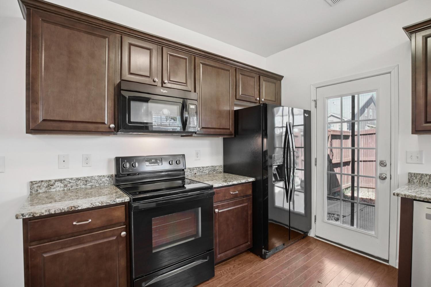 Welcome to this charming end unit townhome in the heart of Spring Hill! Featuring 3 bedrooms and 2.5 baths, this home offers comfortable living and modern convenience. Downstairs, you’ll find the primary bedroom with an ensuite bathroom and walk in closet. The light filled kitchen and living area is perfect for both relaxing and entertaining. Large windows fill the space with natural light, creating a warm and welcoming atmosphere! Enjoy the covered balcony off the upstairs bedroom — perfect for morning coffee or unwinding at the end of the day. Outside, you’ll love the fenced in backyard with a small grassy area. All appliances remain, making this home move in ready! Located just minutes from restaurants, grocery stores, and shopping plus scenic walking trails and greenery right outside your front door!