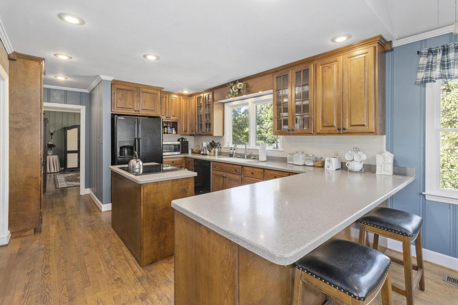 Nestled conveniently at the top of Signal Mountain, this charming 4-bedroom, 2 full bath and 2 half bath home offers the perfect blend of mountain living and easy accessibility. Situated on a rare 1.33 acre lot, the property provides a private, serene buffer thanks to mature trees and low-maintenance landscaping. The circular drive offers easy access and ample overflow parking for guests. The charming interior boasts a thoughtful layout. The spacious living room, centered around a cozy wood-burning fireplace, flows seamlessly into a delightful sunroom—the perfect spot for morning coffee. Hosting is a breeze with the formal dining room leading directly into the expansive kitchen. This kitchen is a true highlight, featuring abundant cabinetry, durable Corian countertops, vast counter space, and a baker's dream setup with two ovens. The main level is highly functional, including a cozy den room and an easily accessible half-bath for guests. Two of the four large bedrooms and a full bath are conveniently located on the main floor. Upstairs, you'll find two additional generous bedrooms, a full bath, and a versatile bonus room ideal for a home office or nursery. The surprises continue with a finished rec room, laundry and half bath in the basement(648sf not included in the advertised square footage), offering easy walk-out access to the spacious backyard. Enjoy the benefits of award-winning Signal Mountain schools from this wonderfully private, yet conveniently located, home. Don't miss the opportunity to make this your new mountain retreat!