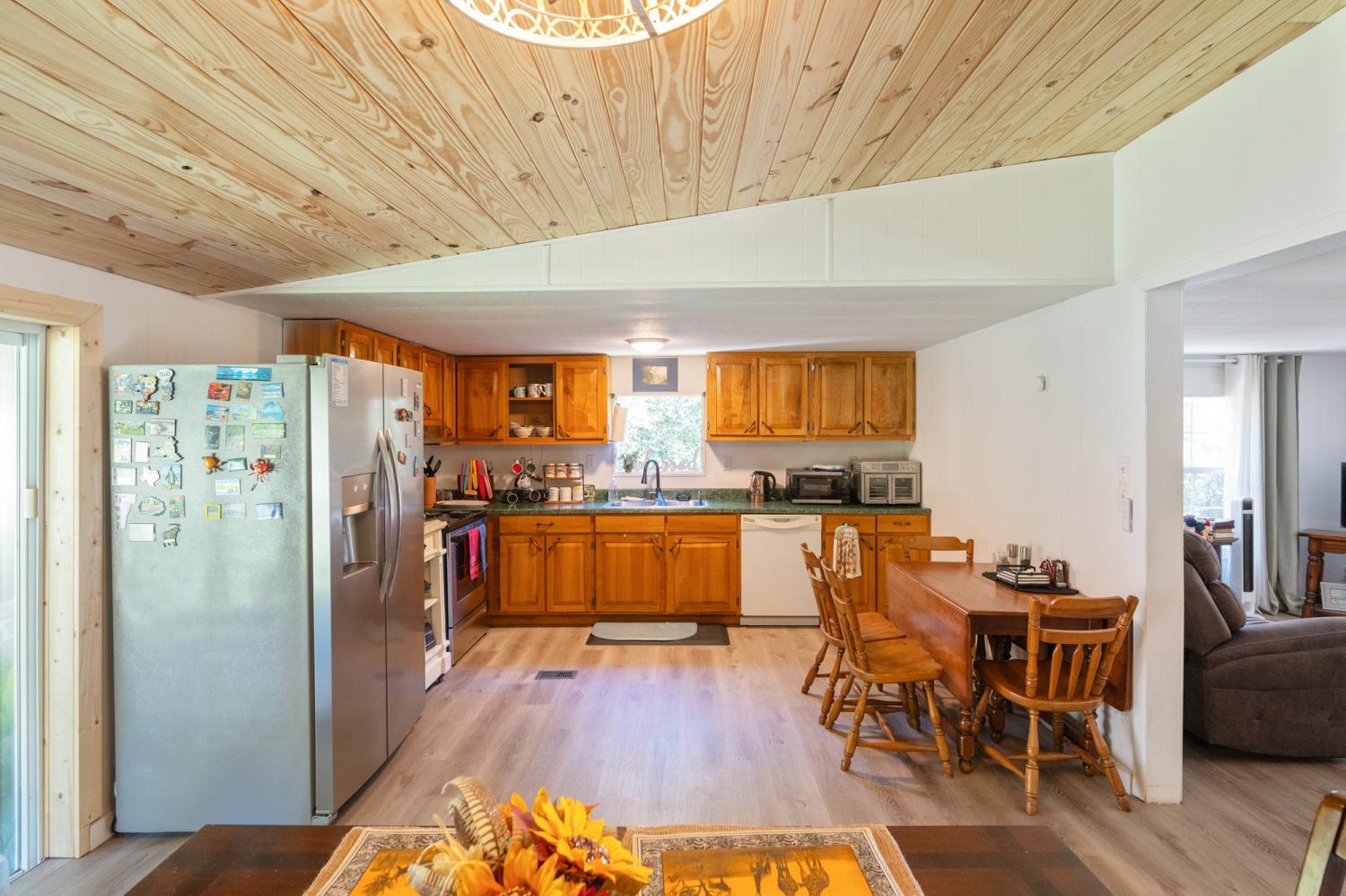 Charming 3-bedroom, 2-bath newly remodeled with new insulation throughout home featuring an open kitchen and dining area with beautiful tongue-and-groove ceilings that add warmth and character. Enjoy relaxing on the large covered front porch or the covered back deck — both perfect for porch sitting and taking in the peaceful surroundings. Conveniently located just a few minutes from town, this home offers the perfect mix of comfort and country charm.