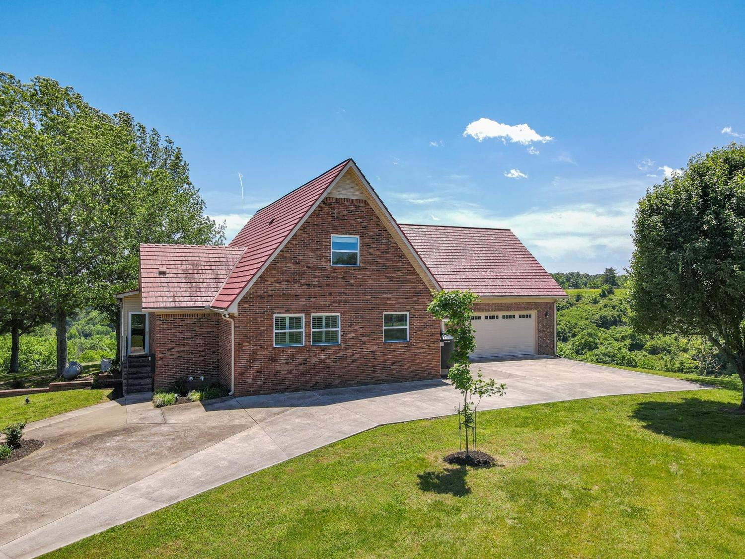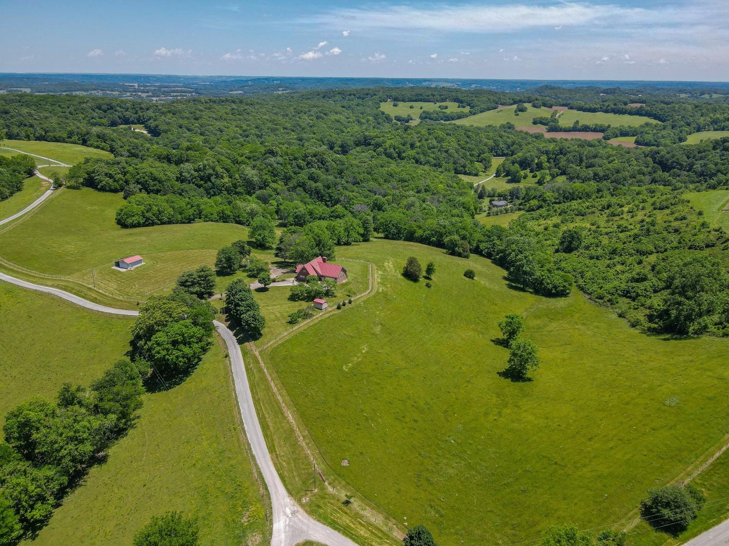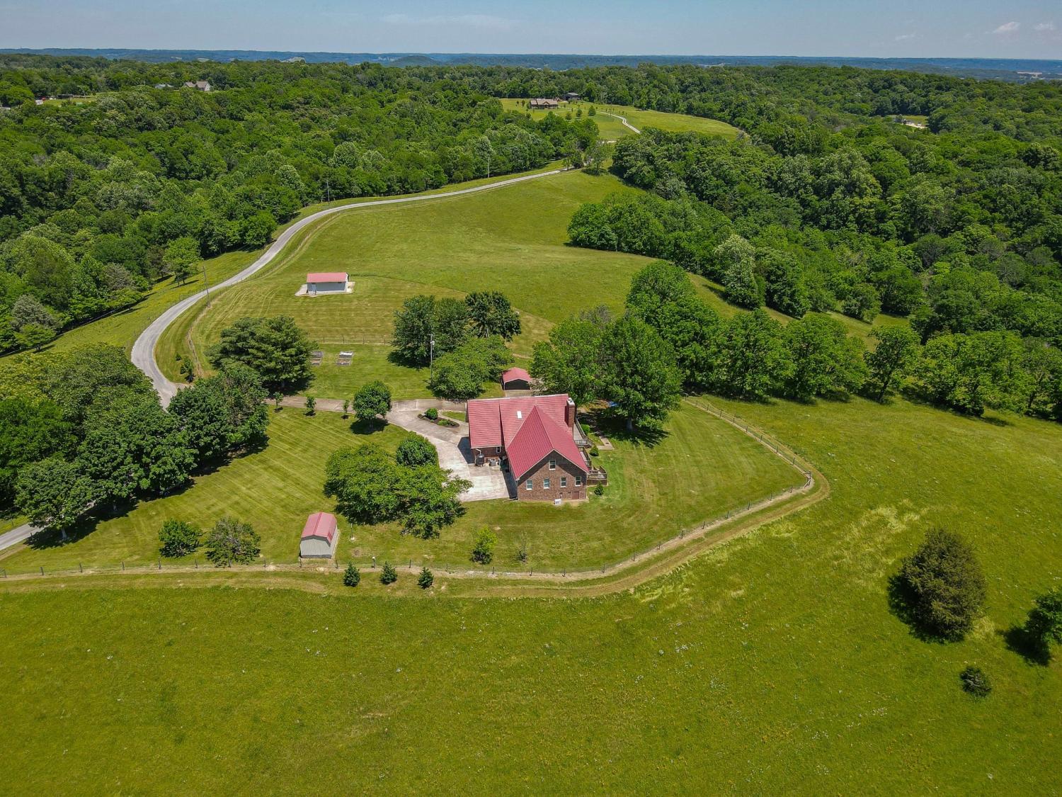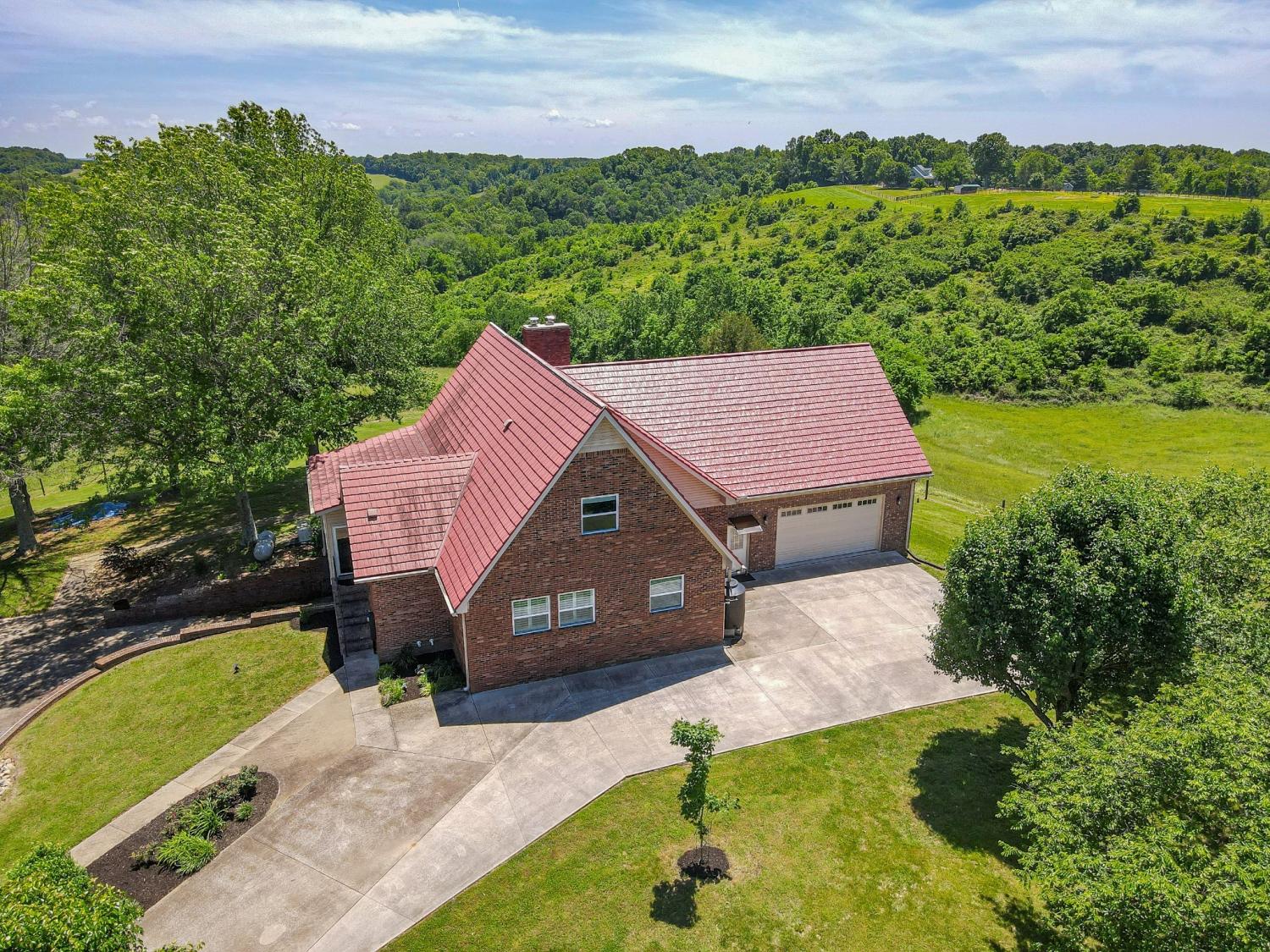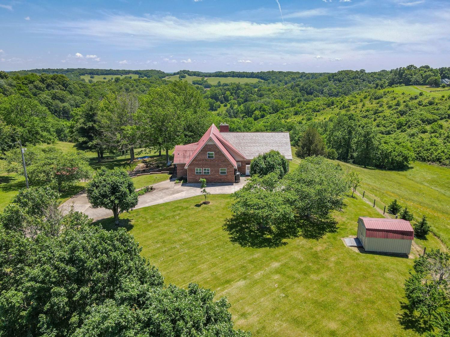 WELCOME TO YOUR PRIVATE TN RETREAT! Luxury brick home w/ 40 acres, very long road frontage & amazing views! Fiber Optic internet/cable from United! Overlook your valley pastures & distant rolling hills from private decks & window filled home. Major renovation w/paint, flooring, pex plumbing, shingle-look metal roofing, modernized kitchen w/luxury appliances & updated baths w/shaker cabinetry, granite counters & porcelain tile. New HVAC system & tank-less water heater. Interior stonework around fireplace area, solid acacia wood (rare) flooring,custom trim work,carefully constructed built-ins, storage,lofted recreation area,large viewing windows,sunroom & so much more to be seen & felt to appreciate.Fully furnished separate apartment suite built in 2018 w/interior access but also own exterior entrance w/deck,ramp & own HVAC system.2018 sunroom upgraded w/cedar lined walls & oversize viewing deck on back of home also replaced & sealed.Unfinished w/plumbed & electrified expansion space in attic area & expansive full basement of 1550 square feet of clean & dry living area w/ backup gas stove,finished drywall & ceiling & double doors.Connected to public water & electric but very unique in that it could be temporarily self-sufficient w/propane powered whole home GENEREX generator,backup well (1 well),2 wood burning stoves,propane heater in basement,interior housed 1000-gallon water cistern w/electric pump & also rain catchment tanks for watering of raised garden beds/livestock.Main yard fenced w/ gated entry & main acreage majority fenced. 660 sq. ft. barn/workshop w/ concrete floor.2 car attached garage,2 car detached carport & 1 car attached carport. Road frontage of1600 feet,over 1/4 mile of fenced frontage! Slow moving road & ultimate privacy w/ security of distant neighbors. Giles County minimally restricted, able to subdivide. Wildlife+! PERFECT RANCH! LOCATION only 15 minutes to Pulaski,25 minutes to Columbia & 15 minutes to I-65. ABSOLUTELY NOTHING ELSE LIKE THIS!