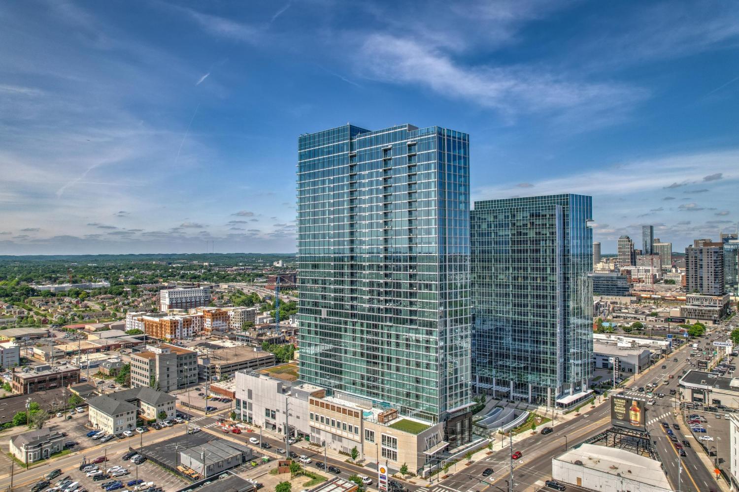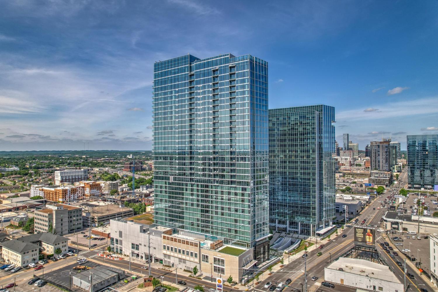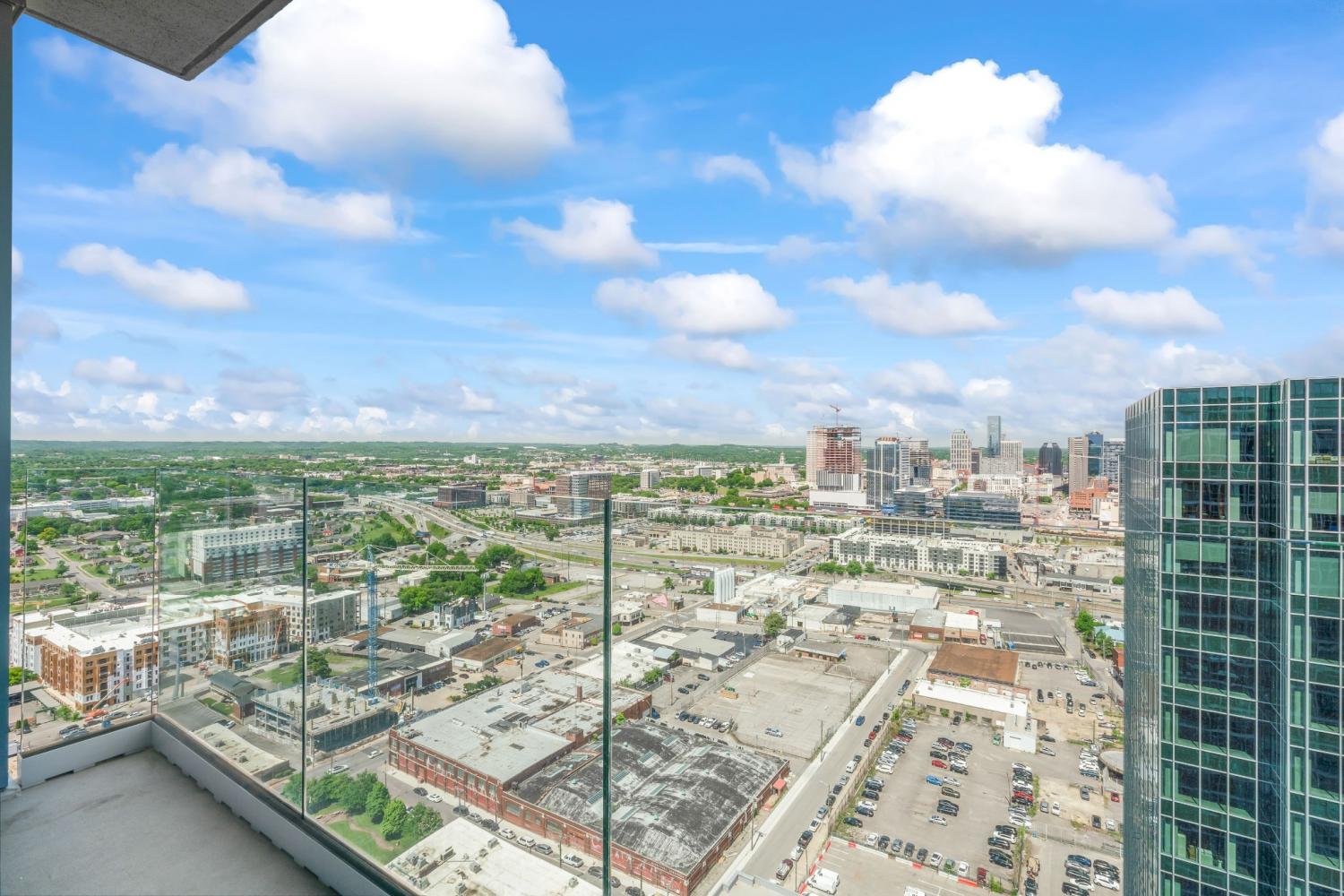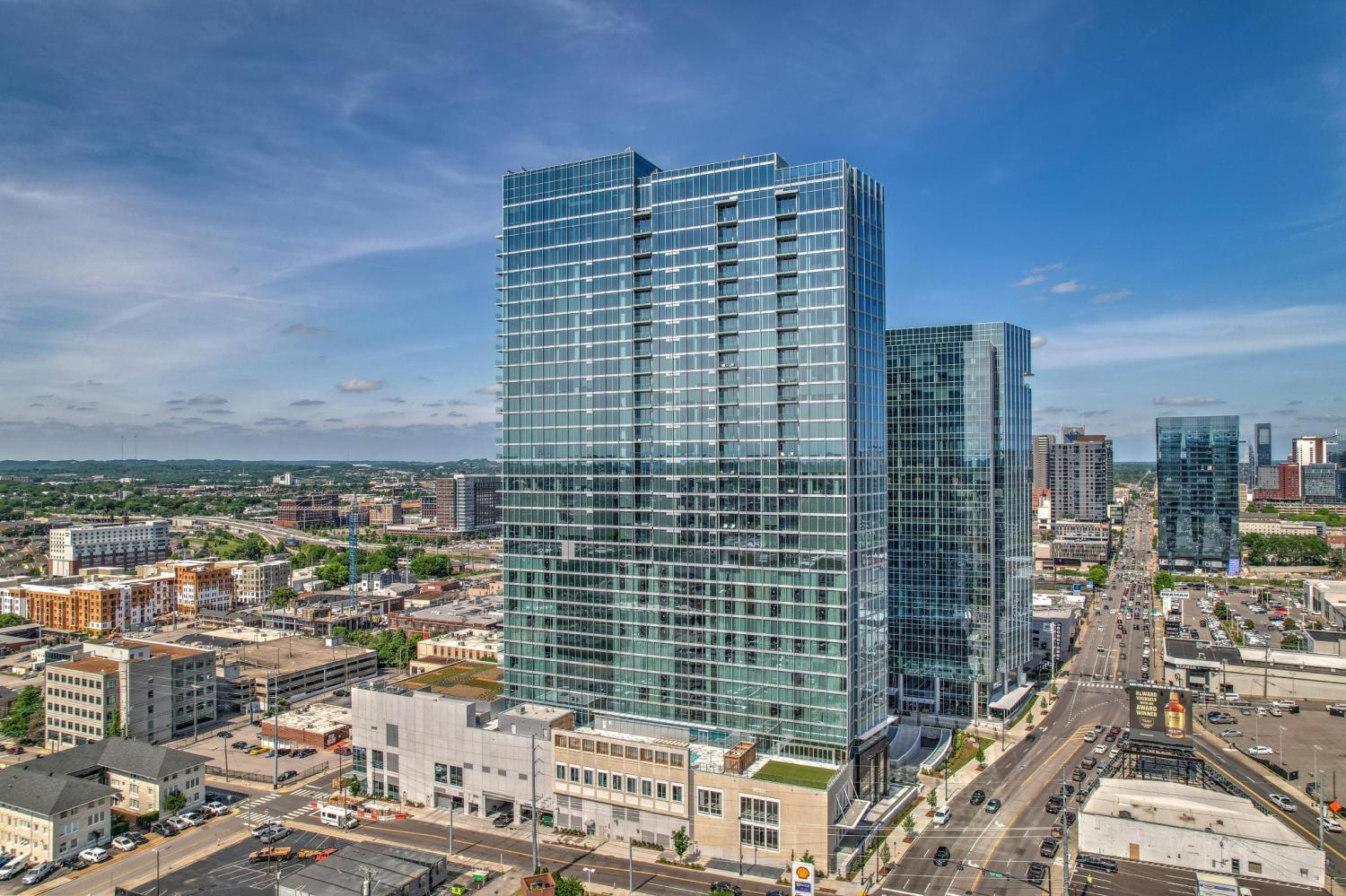 Residences at Broadwest—27th-floor skyline views. Modern open layout with W/D and garage parking in a full-service tower. Building amenities include a 34th-floor resort-style pool & sun terrace, fitness with steam/sauna, golf simulator, library & private conference room, private dining, billiards, lounge/bar, and outdoor green terrace with fire table, gaming lawn & grills; plus 24/7 reception, package services (incl. cold-storage), lobby coffee bar, conference rooms, and Conrad Nashville hospitality services (select services fee-based). Prime Midtown location near Vanderbilt, Centennial Park & Music Row.