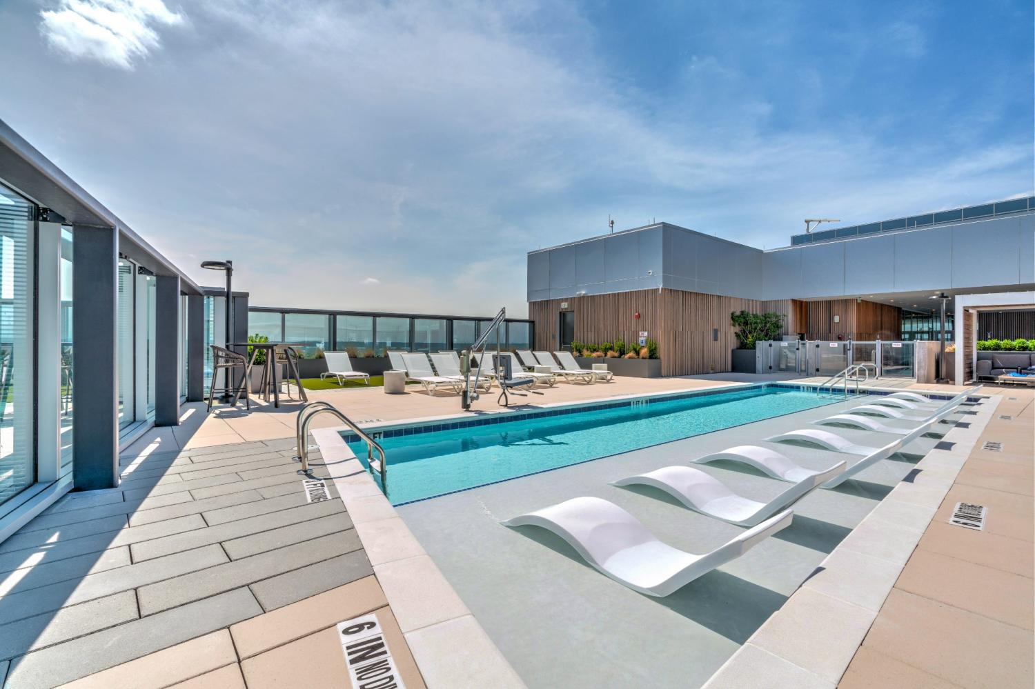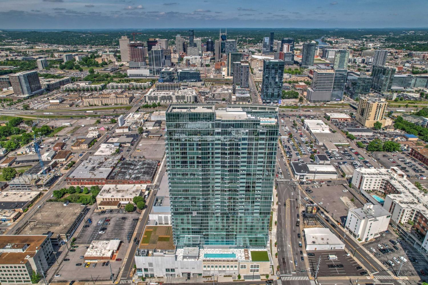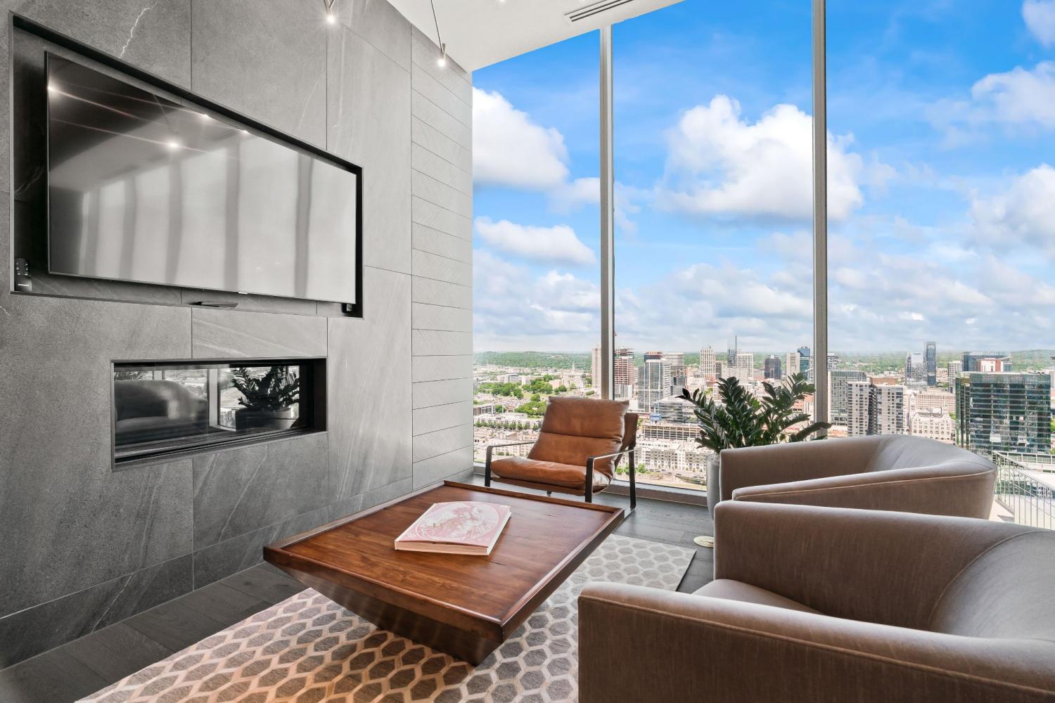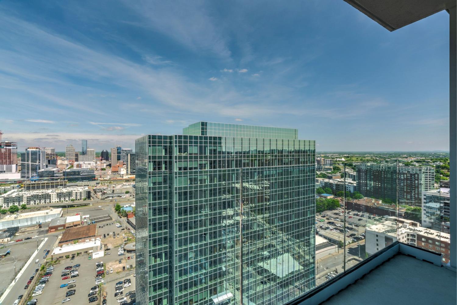 Residences at Broadwest—27th-floor skyline views. Modern open layout with W/D and garage parking in a full-service tower. Building amenities include a 34th-floor resort-style pool & sun terrace, fitness with steam/sauna, golf simulator, library & private conference room, private dining, billiards, lounge/bar, and outdoor green terrace with fire table, gaming lawn & grills; plus 24/7 reception, package services (incl. cold-storage), lobby coffee bar, conference rooms, and Conrad Nashville hospitality services (select services fee-based). Prime Midtown location near Vanderbilt, Centennial Park & Music Row.