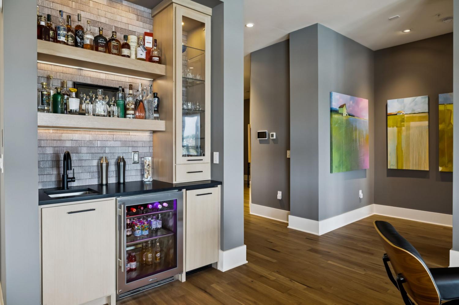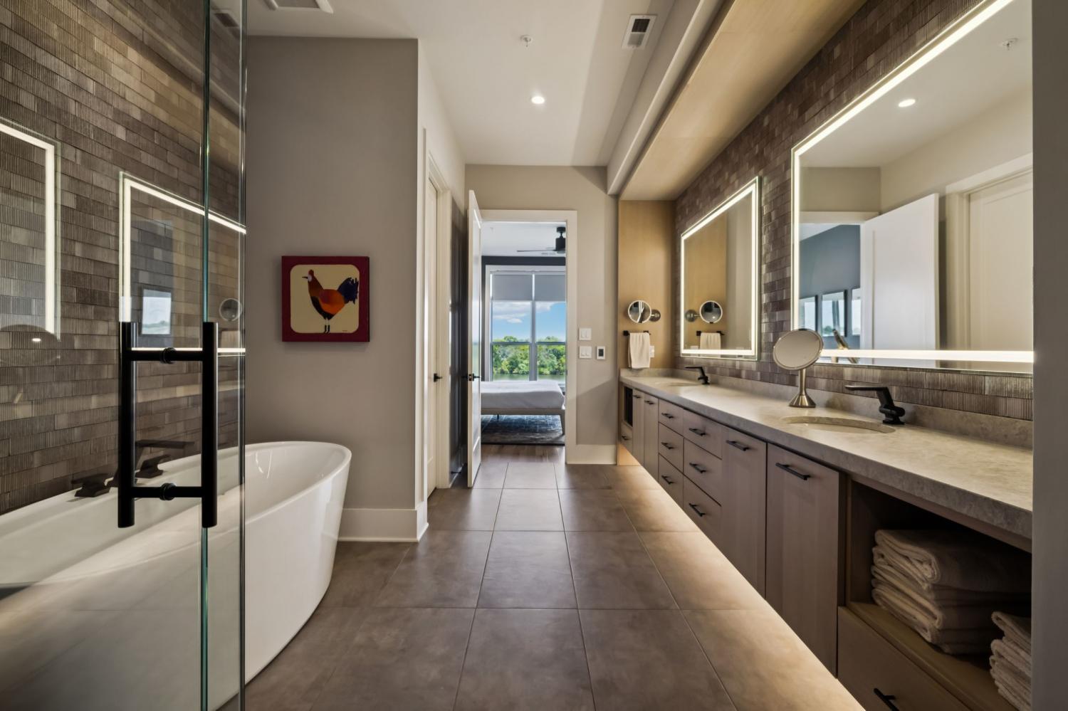 Welcome to C302 at Revery Point, a rare opportunity to own one of only four corner units overlooking Old Hickory Lake. This third floor unit combines unmatched views with custom upgrades found exclusively in this home, making it truly one of a kind. The open layout features 10’ tall ceilings throughout and is framed by 8’ tall windows, filling the space with natural light and showcasing panoramic lake views. The living area features a sleek, modern fireplace wall and opens seamlessly to a private balcony—ideal for relaxing or entertaining while overlooking the water. The chef’s kitchen stands out with designer tilework, floating shelves, Wolf/Sub-Zero appliances, and custom cabinetry with an abundance of storage. The primary suite is a retreat of its own, offering floor-to-ceiling water views, an oversized walk-in closet with top of the line built-in organization, and a spa-inspired bath with a freestanding tub, glass shower, floating vanities detailed with under cabinet lighting. Additional features include wide-plank hardwood flooring throughout, modern lighting, spacious laundry, oversized walk-in closet, additional storage room, and two reserved covered parking spaces. Revery Point offers a maintenance-free lifestyle with resort-style living. For those who desire even more, an optional membership at Grasslands Country Club provides access to two championship golf courses, two waterfront pools, two fitness centers, and two amazing restaurants— right outside your new home, Revery Point.
