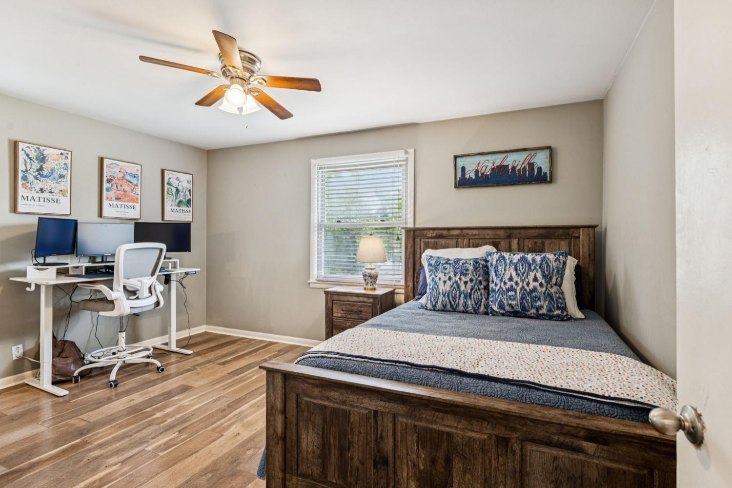 Incredible Price in central Donelson! Charm and character abound in this gracious ranch home, perfectly situated on a private 1/2 acre lot with fully fenced backyard. Ideally located ~ just 10 minutes to Nashville International Airport and Downtown Nashville, with quick access to Briley Parkway, Opryland Hotel, Grand Ole Opry, and Opry Mills Mall. Welcoming front porch surrounded by all new landscaping ~ Brick exterior freshly painted ~ Brand new HVAC and ductwork ~ All new crawl space vapor barrier with full encapsulation ~ All new plumbing ~ Updated electrical. Inside you'll find a bright and inviting layout that blends comfort, character and so much charm! The updated kitchen boasts stainless appliances, stylish tile backspace and granite countertops. The adjacent dining area offers access to the outdoor patio and yard and features a brick fireplace and built in china cabinet, perfect for a bar area or serving location. Recessed lighting throughout the main living areas and large picture windows combine to create a brightly lit interior. Three spacious bedrooms provide flexibility for a growing household, home office or guest space. The primary bedroom features two closets, and a striking painted wood accent ceiling, adding both sophistication and warmth. The other two bedrooms each have plenty of closet space, with one being an ensuite. Outdoors, the expansive backyard area offers an abundance of space for family and friends to enjoy. There is a covered area for grilling on the patio and a huge storage shed that will remain. Other items that convey: Simply Safe home security system with backyard cameras, washer, dryer and kitchen refrigerator. No HOA! Sellers work from home ~ please allow at least two hours notice to show.