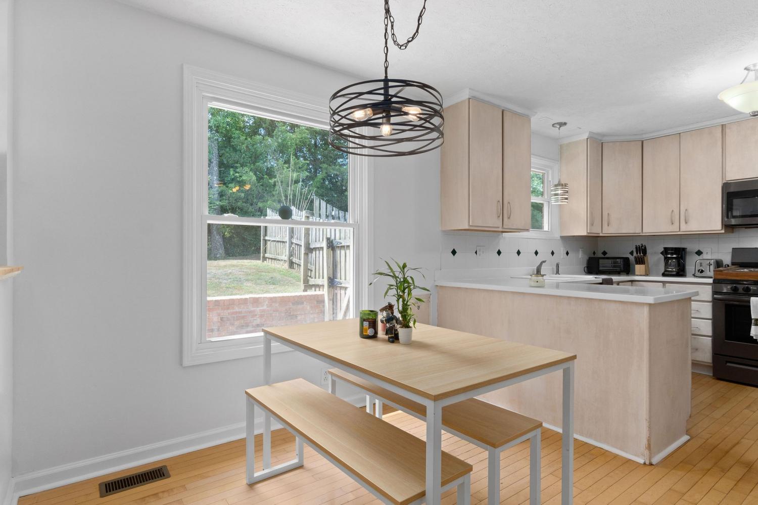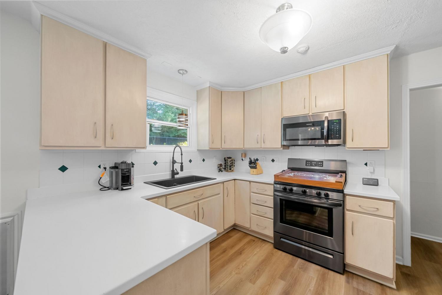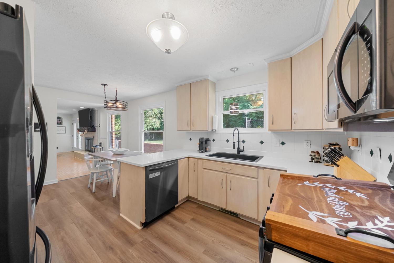 Fall in love with this Clarksville classic! If you’ve been dreaming of a home that blends timeless charm with fresh modern updates and NO carpet..this one checks every box. Perfectly nestled on a .42-acre lot surrounded by mature trees, this beautifully updated 3 bedroom, 2 bath home with a bonus room and 2-car garage offers over 2,000 sqft of thoughtfully designed living space. Step inside and be greeted by a newly renovated, open and airy layout that creates a bright, seamless flow between the living, dining, and kitchen areas. The kitchen is the heart of the home, featuring a new sink, updated appliances, stylish cabinetry, and plenty of space for gatherings. Both bathrooms have been beautifully updated, offering the perfect mix of comfort and design. The living room’s brick fireplace and large windows add warmth and character, while the bonus room above the garage gives you endless flexibility. home office, guest suite, playroom, or cozy theater space. Outside, enjoy peaceful views of mature trees and visiting wildlife from your fenced backyard with an extended patio perfect for relaxing or entertaining. The 2-car garage and extended driveway provide ample room for vehicles. Conveniently located in the heart of Clarksville, you’ll love being just minutes from schools, shopping, and dining while still feeling tucked away in your own private retreat. This is the one you’ve been waiting for. Come see it for yourself today!