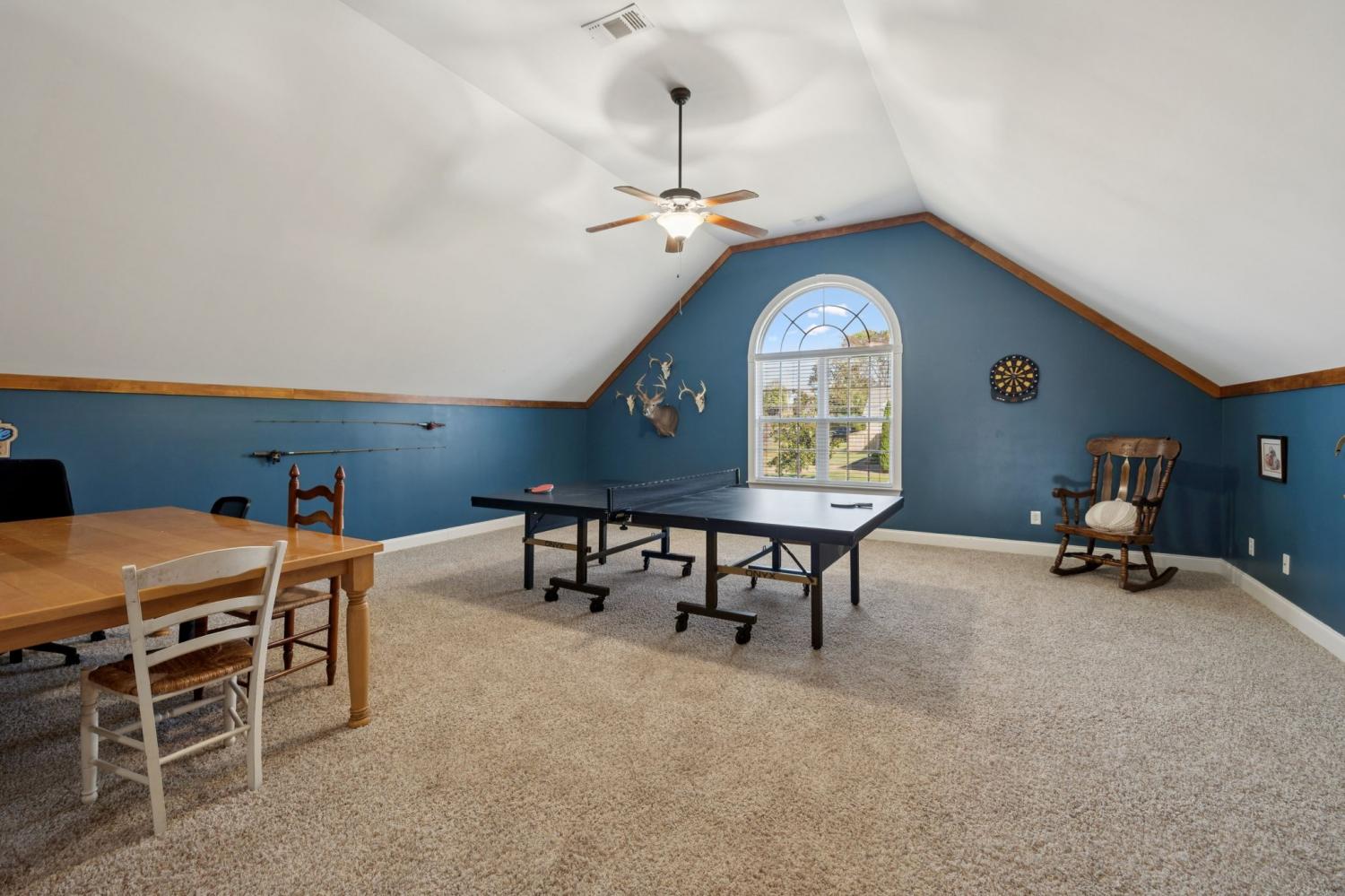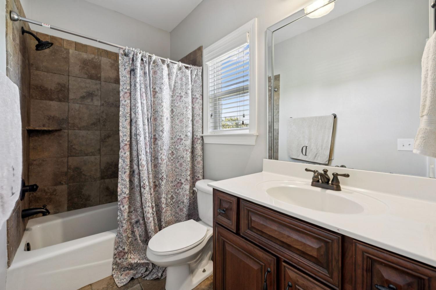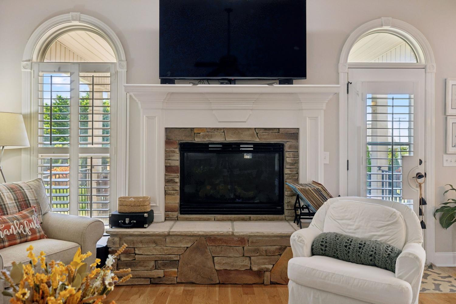 Stunning All-Brick Home in Sought-After Wright Farms Subdivision! This spacious and beautifully maintained home features 4 ensuite bedrooms — with 3 on the main level and a 4th upstairs, currently used as a home theater. Located on a desirable corner lot, this property boasts extra-high ceilings, elegant crown molding, and a traditional gas fireplace that creates a warm, cozy inviting atmosphere. The kitchen is equipped with granite countertops, 6 burner gas stove, 2 large pantries and ample cabinet space. Enjoy everyday convenience with a massive laundry room on the main level. Relax or entertain on the charming covered back patio overlooking a large, fenced-in backyard featuring beautiful trees creating the right amount of privacy — perfect for pets, play, or outdoor gatherings. The metal fencing columns with sunset lighting sets the mood for a fire in the backyard brick firepit. No need to stress over the maintenance of all of the beautiful Landscaping as there are drip lines and soaker hoses on timers around the home and privacy fence. The roof was replaced in Spring 2023 with a 3D shingle. The home is located across the street from the community pool, clubhouse and playground. Don't miss your chance to own a home in one of the area's most sought-after neighborhoods, Wright Farms.