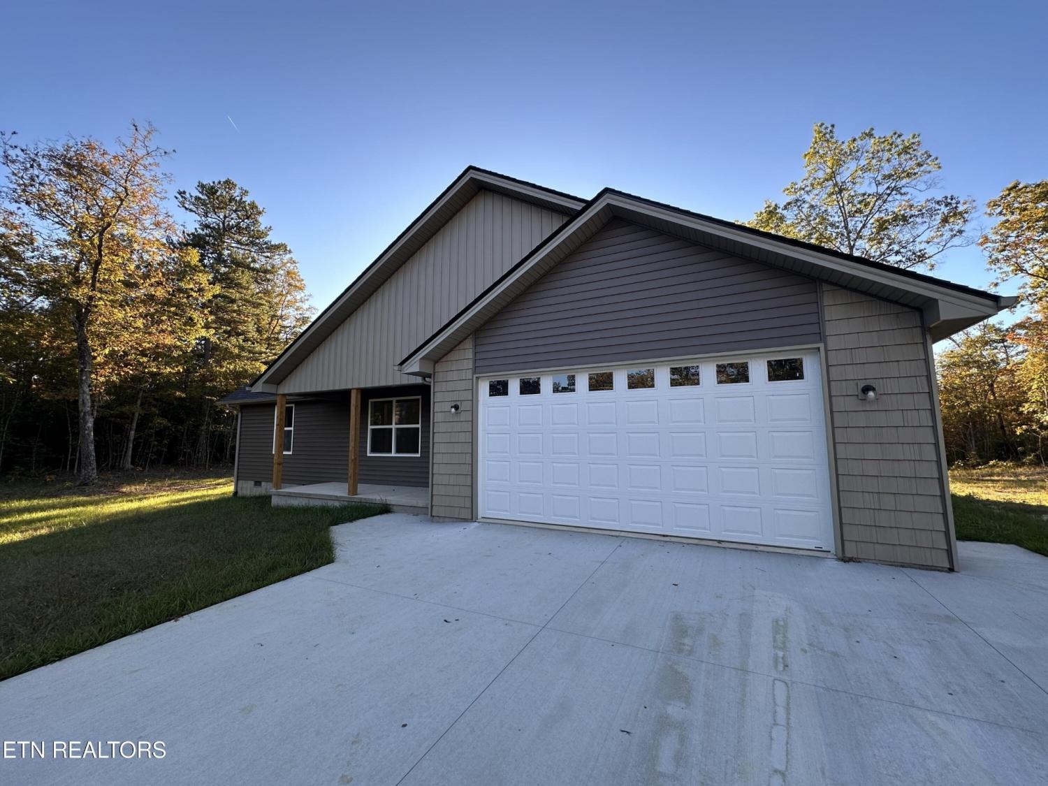 Beautiful New Construction in Stone Cliff Acres - Perfectly Located Between Jamestown & Crossville! Welcome to Stone Cliff Acres, where peaceful country living meets modern comfort. This brand-new home offers the best of both worlds — a quiet, wooded setting with convenient access to Jamestown and Crossville. Step inside and experience a bright, open-concept floor plan featuring vaulted ceilings, warm wood-style flooring, and plenty of natural light. The spacious living area flows effortlessly into a gorgeous kitchen, complete with custom cabinetry, sleek countertops, stainless steel appliances, and recessed lighting — ideal for cooking, entertaining, or gathering with family. The primary suite serves as your personal retreat, offering dual vanities, a large walk-in closet, and a stylish private bath. Additional bedrooms are well-sized, providing comfort and flexibility for guests, kids, or a home office. Enjoy the tranquility of the outdoors on your covered back porch, perfect for relaxing evenings or morning coffee while surrounded by nature. The covered front porch adds extra curb appeal and charm, while the attached two-car garage provides easy access and plenty of storage space. Nestled on a beautiful lot in Stone Cliff Acres, this home is surrounded by trees and scenic views — offering privacy while being just a short drive to town conveniences, restaurants, and shopping. Whether you're seeking a peaceful full-time residence or a getaway in the Cumberland Plateau, this home delivers exceptional craftsmanship and serene living. Don't miss your chance to own a brand-new home in one of the area's most desirable communities! Buyer to verify all information and measurements in order to make an informed offer.