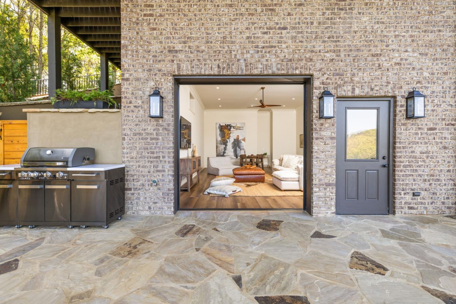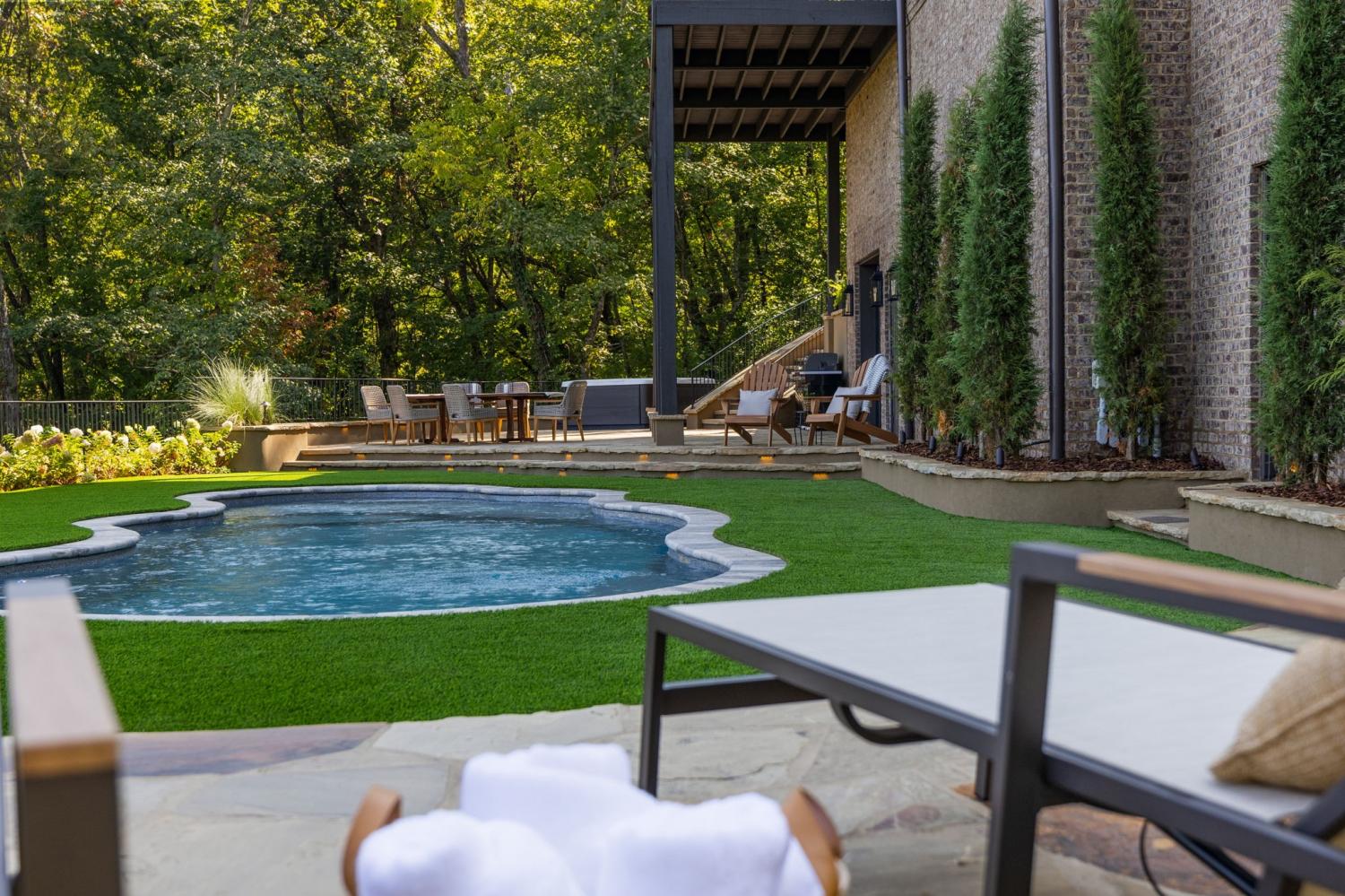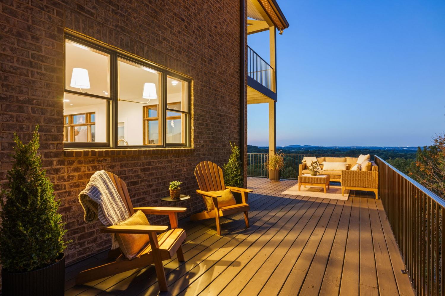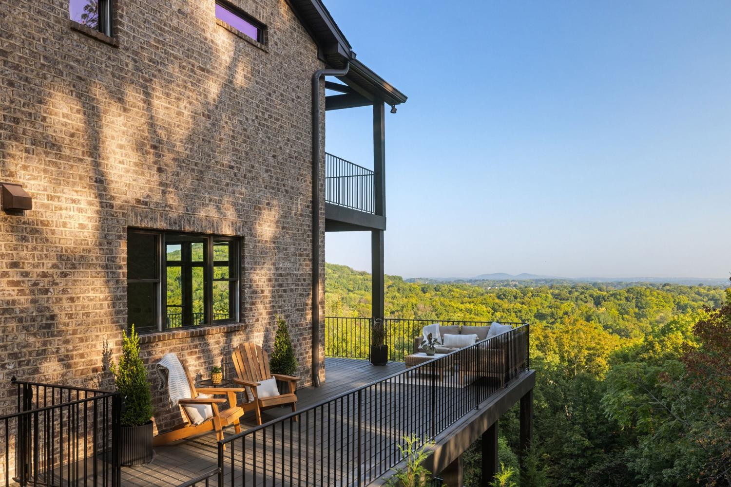 Nestled within the treasure of unexpected, hidden hills in Williamson County, this custom estate rests at the peak of highly sought-after Burke Hollow Road, unfolding across over eight acres of beautiful Tennessee landscape. It offers the charm of a private mountain lodge with the elegance of a luxury retreat- inspired by the timeless beauty of the Grove Park Inn. From its elevated vantage point, enjoy sweeping, unobstructed views, including Music City’s distant lights, creating a setting that feels both peaceful and extraordinary. Here, grandeur is defined by the way the home lives—flowing effortlessly with its breathtaking surroundings, so deeply connected to the natural landscape that it feels as though it has no end. Across three levels of living, you’ll find four bedrooms and four and a half baths, where thoughtful design meets everyday comfort. The main level showcases an expansive covered and uncovered wraparound deck off the kitchen and living room—perfect for entertaining large gatherings or enjoying retreat-like seclusion with panoramic views. The lower level impresses with soaring ceilings over grand living and dining areas, recreational spaces, full bath and secondary laundry, with adjoining oversized 2-car garage- all seamlessly connecting to multiple natural stone patios, heated resort-style pool, and hot tub. An entertainer’s dream that effortlessly blends luxury indoor and outdoor living. Upstairs, the primary suite opens to a private covered deck, a tranquil perch for quiet mornings or sunset views. On Independence Day, the property transforms into its own celebration, as fireworks spanning multiple towns and counties illuminate the horizon—an unrivaled experience from your private hillside haven. Whether envisioned as a personal, secluded estate or luxury Airbnb, this property embodies refined Tennessee living—where craftsmanship, comfort, and natural beauty meet in perfect harmony.