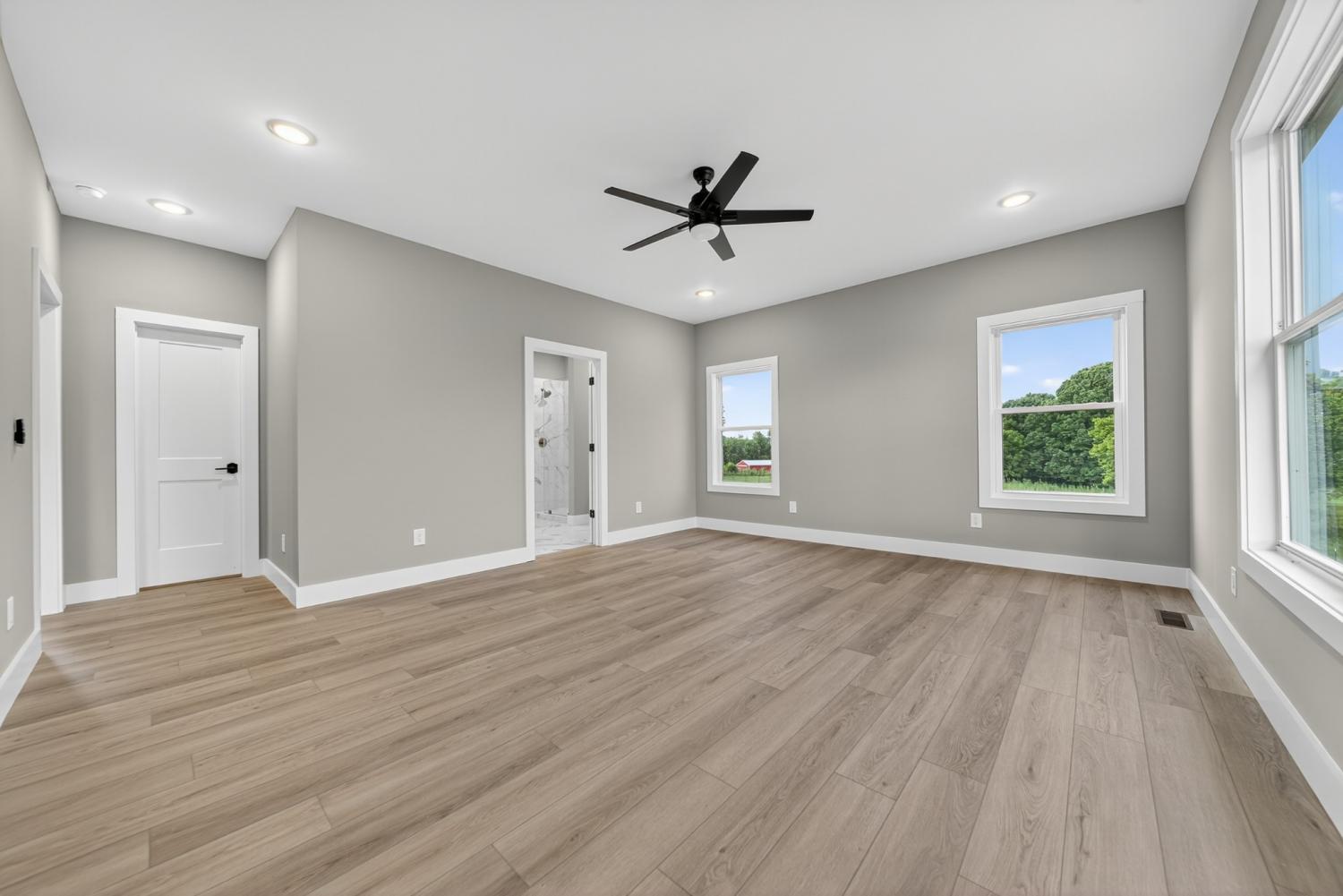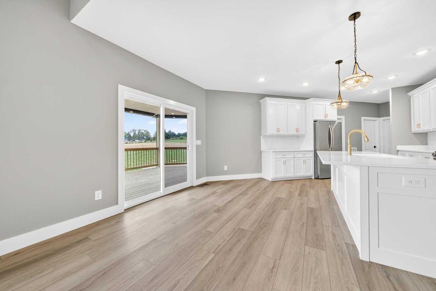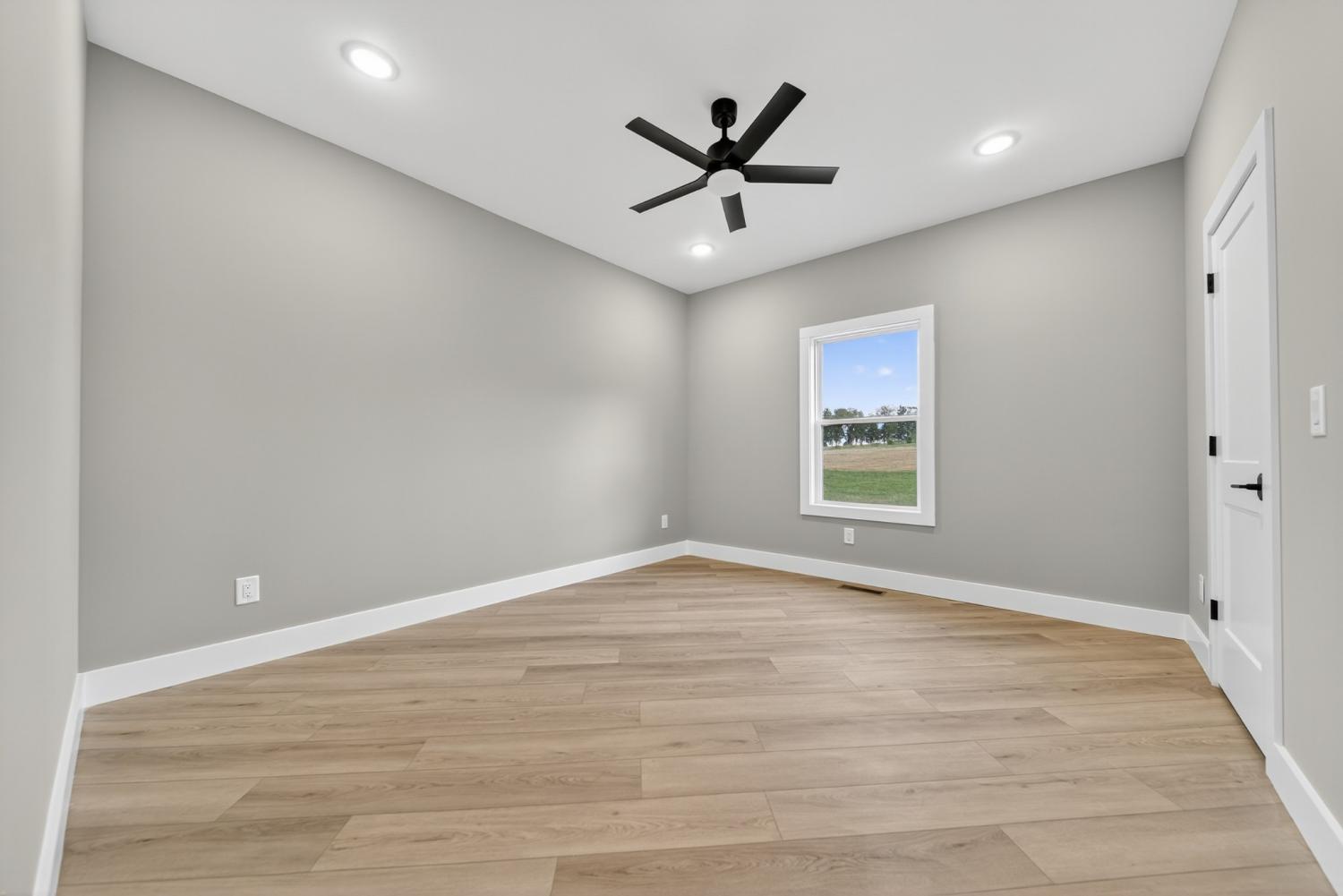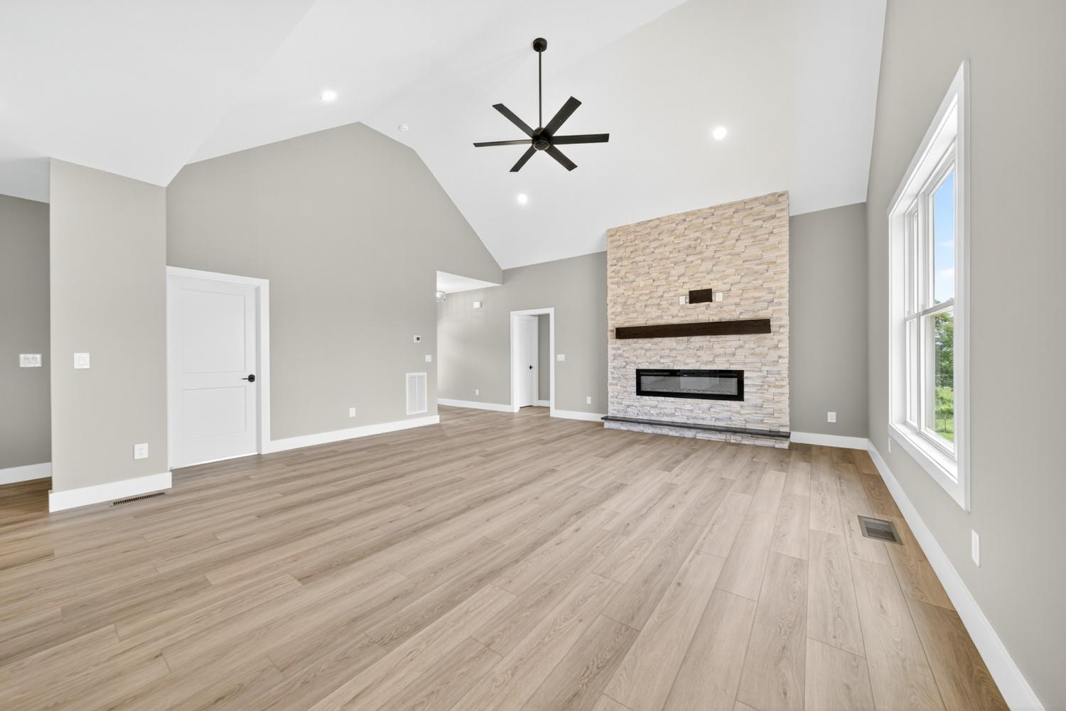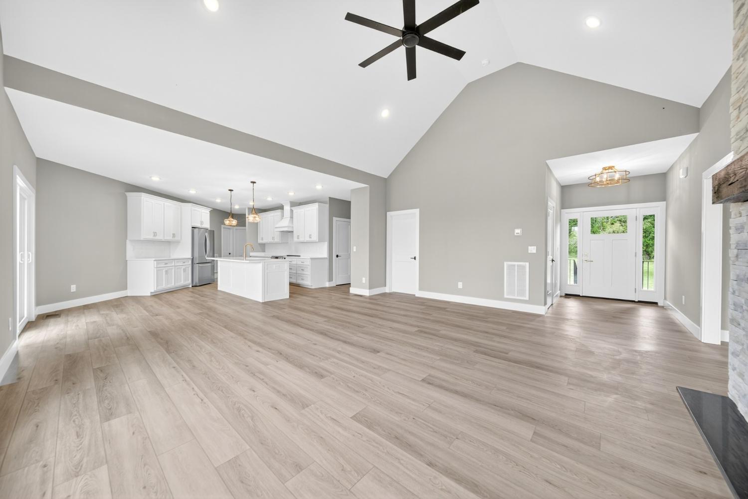 Spectacular 5 bed, 3.5 bath home (perked for 3 bedrooms) situated on 2.6 beautiful acres, just 10 minutes to several surrounding communities. This impressive property combines timeless curb appeal with modern design, featuring a classic brick and Hardie board exterior and an inviting covered front porch that sets the tone for the elegance and comfort found inside. Step into a stunning open floor plan with soaring ceilings and a spacious great room highlighted by a floor-to-ceiling stone fireplace, creating the perfect gathering space for family and friends. The gourmet kitchen is a showstopper, boasting custom tile work, quartz countertops and backsplash, modern fixtures, and an ideal layout for both everyday living and entertaining. The luxurious primary suite on the main level features a spa-inspired bath with dual vanities, a double custom tile shower, and a large walk-in closet, offering comfort and style. Additional rooms on the main floor provide great options for a home office, study, or flexible living spaces to fit your needs. Upstairs, the large rec room with a full bath is perfect for a bonus living area or can easily serve as a 5th bedroom. A second versatile room offers endless possibilities—whether you envision a playroom, theater, home gym, or additional office space, it’s ready to be customized to your lifestyle. Enjoy the peaceful country setting from the spacious covered back deck, ideal for outdoor entertaining, morning coffee, or simply unwinding while taking in the surrounding landscape. The 2-car attached garage provides secure parking and additional storage space. Walk in partial basement has a dehumidifier system for lots of extra storage, storm shelter or finish it off for extra room. (enter from side of home.) This property beautifully blends elegance, functionality, and flexibility—creating the perfect place to call home.. (Buyer Bonus! Get a 1% lender credit toward closing costs when you finance with preferred lender)