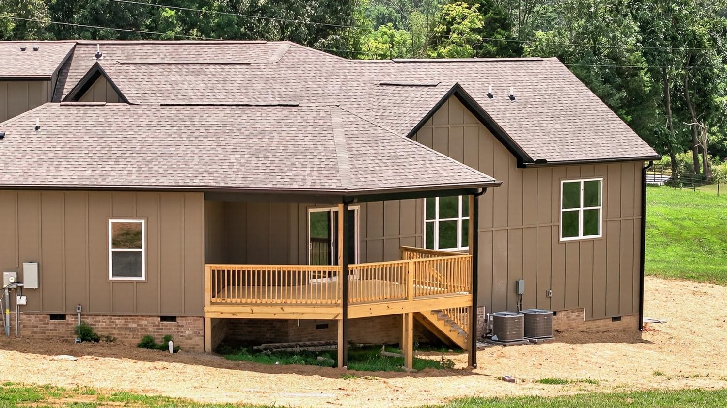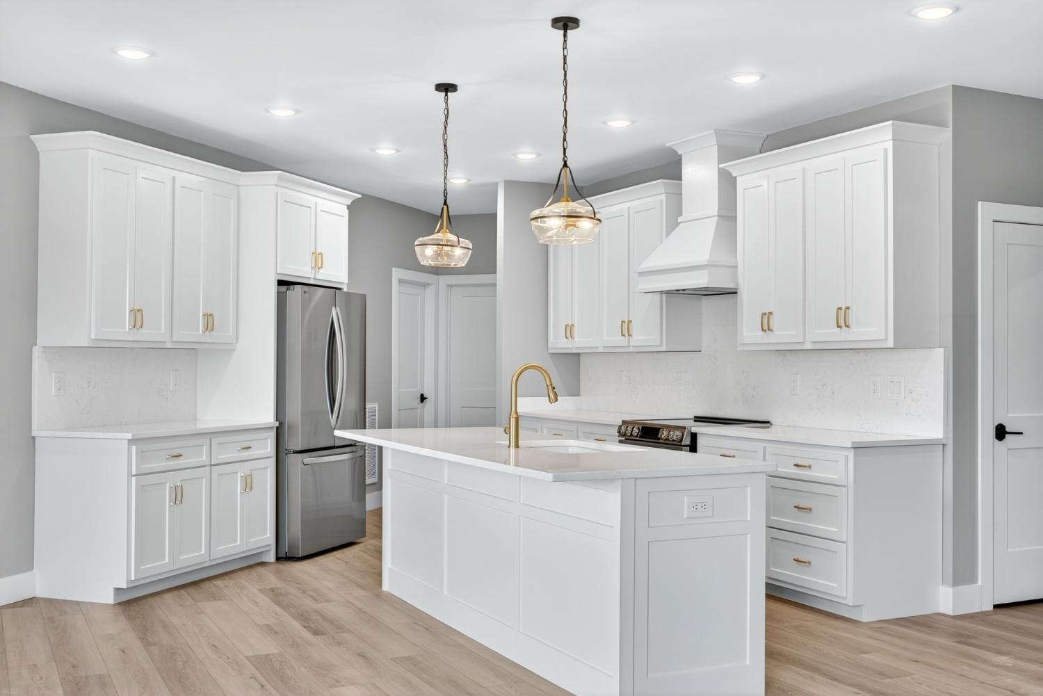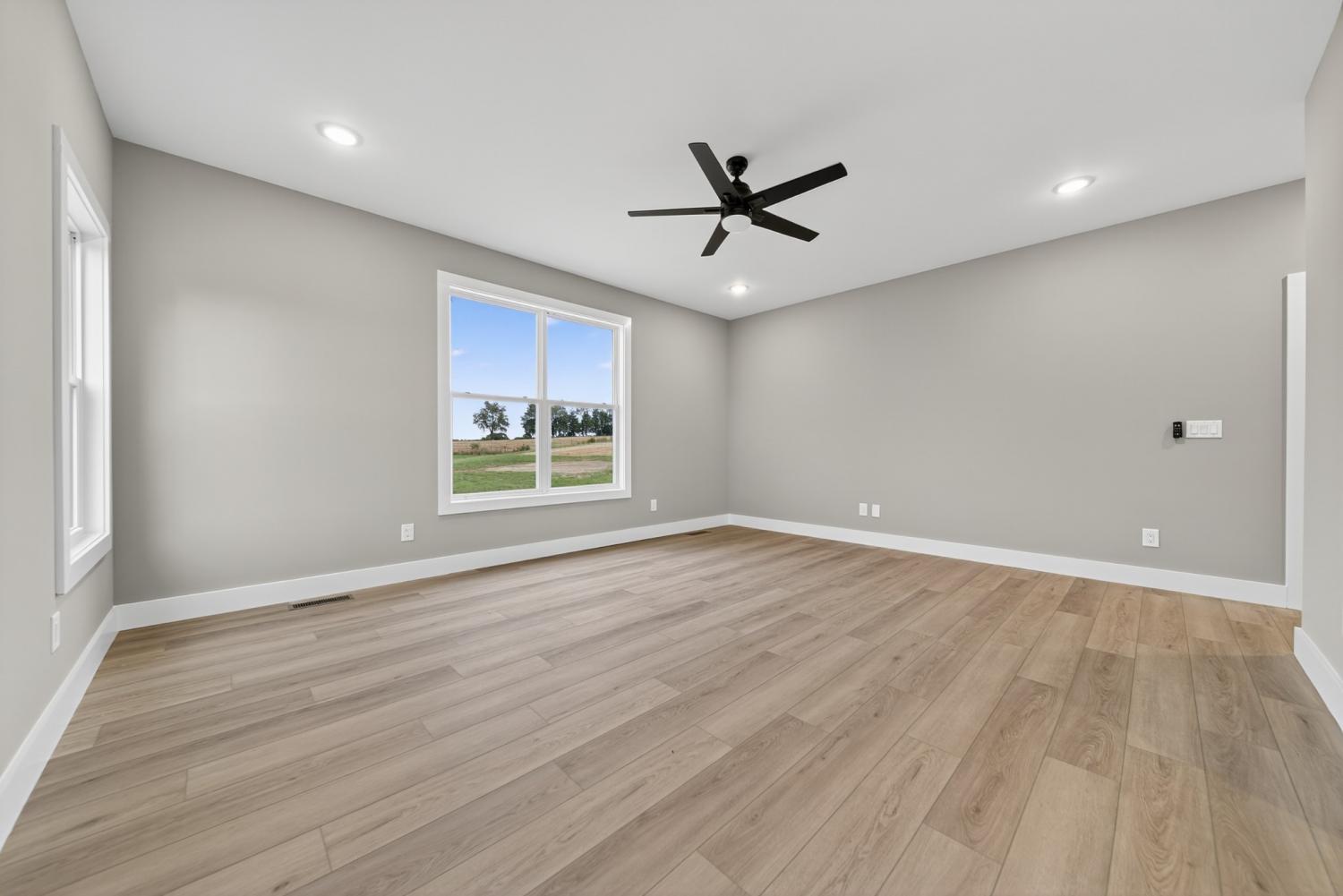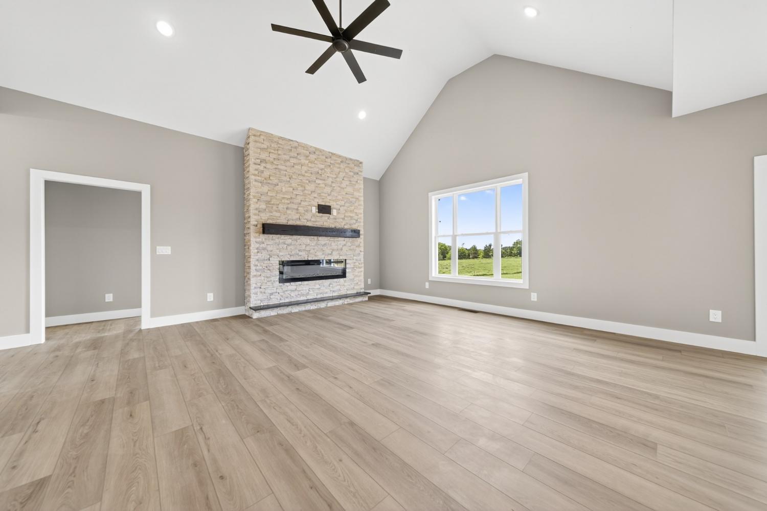 Spectacular 5 bed, 3.5 bath home (perked for 3 bedrooms) situated on 2.6 beautiful acres, just 10 minutes to several surrounding communities. This impressive property combines timeless curb appeal with modern design, featuring a classic brick and Hardie board exterior and an inviting covered front porch that sets the tone for the elegance and comfort found inside. Step into a stunning open floor plan with soaring ceilings and a spacious great room highlighted by a floor-to-ceiling stone fireplace, creating the perfect gathering space for family and friends. The gourmet kitchen is a showstopper, boasting custom tile work, quartz countertops and backsplash, modern fixtures, and an ideal layout for both everyday living and entertaining. The luxurious primary suite on the main level features a spa-inspired bath with dual vanities, a double custom tile shower, and a large walk-in closet, offering comfort and style. Additional rooms on the main floor provide great options for a home office, study, or flexible living spaces to fit your needs. Upstairs, the large rec room with a full bath is perfect for a bonus living area or can easily serve as a 5th bedroom. A second versatile room offers endless possibilities—whether you envision a playroom, theater, home gym, or additional office space, it’s ready to be customized to your lifestyle. Enjoy the peaceful country setting from the spacious covered back deck, ideal for outdoor entertaining, morning coffee, or simply unwinding while taking in the surrounding landscape. The 2-car attached garage provides secure parking and additional storage space. Walk in partial basement has a dehumidifier system for lots of extra storage, storm shelter or finish it off for extra room. (enter from side of home.) This property beautifully blends elegance, functionality, and flexibility—creating the perfect place to call home.. (Buyer Bonus! Get a 1% lender credit toward closing costs when you finance with preferred lender)