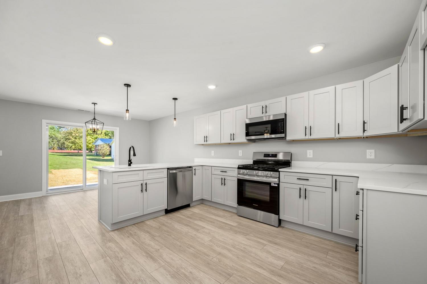 All brick, one level 3 bdrm, 2 bath, 1,260 sqft home in a quiet, established neighborhood close to everything. Upgrades inside and out including quartz countertops with soft close cabinets in the kitchen and bathrooms, as well as a gas range in the kitchen. Deep, single basin kitchen sink, stainless appliances, luxury vinyl plank hardwood flooring throughout (NO CARPET), and a double vanity in the primary bath. Open concept main living area, neutral paint throughout, ceiling fans in all bedrooms, recessed lighting, black hardware, gorgeous window pane front door and garage door. Oversized concrete driveway, covered front porch with beautiful stained wood posts and back concrete patio, gas hot water heater and gas HVAC. Come experience the difference. You will not be disappointed. See you soon!
