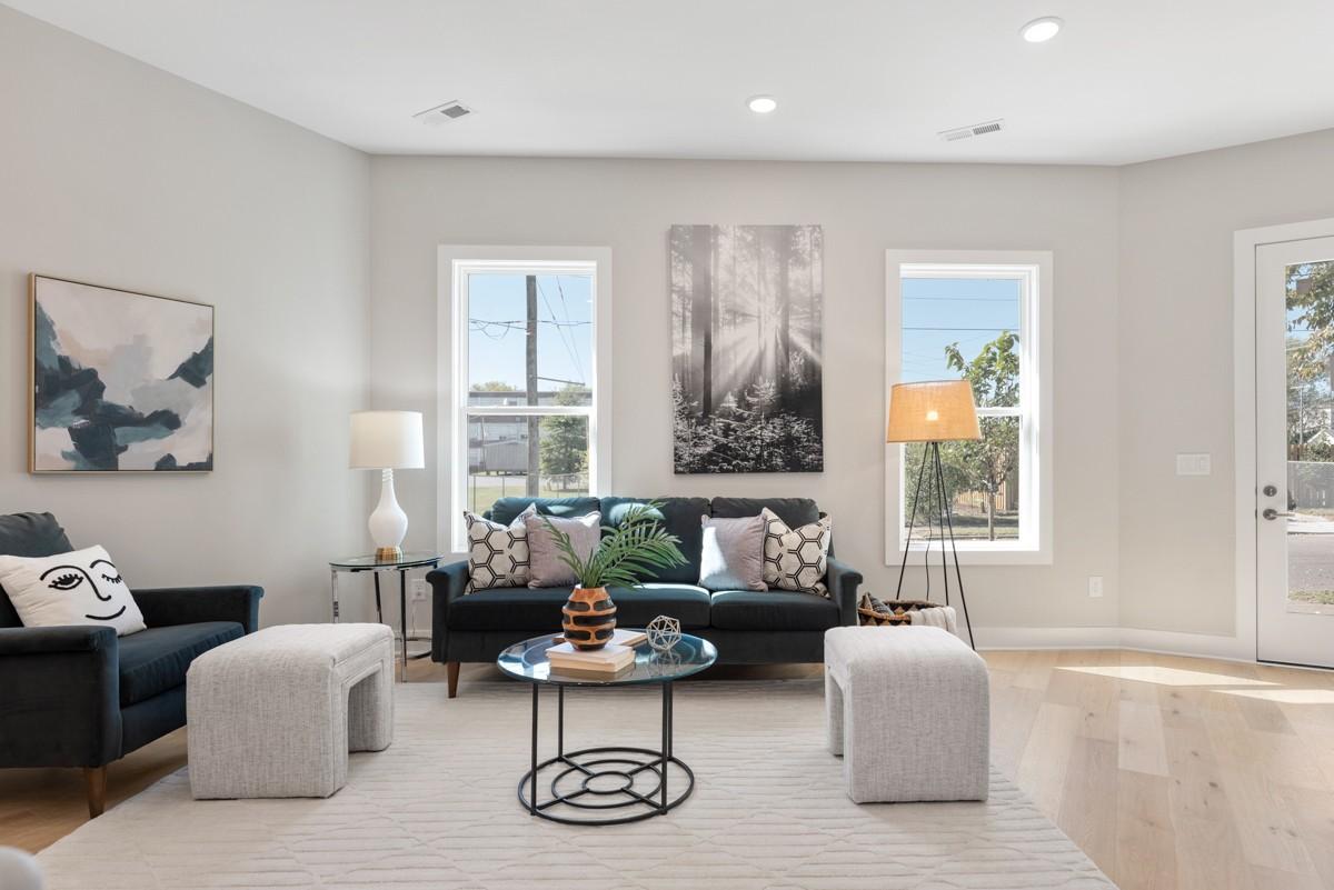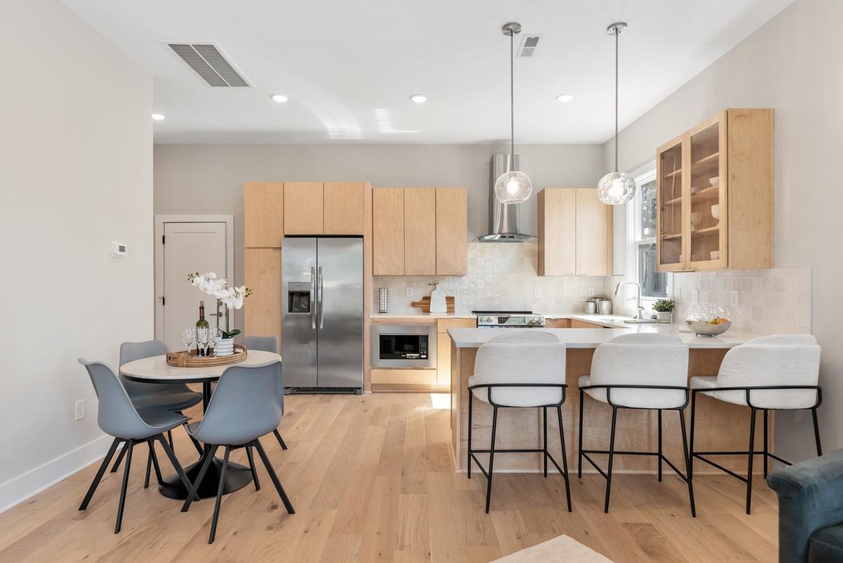 Walk to WeHo from The Wharf. Located a few blocks from the heart of Nashville’s creative epicenter and one of our most rapidly expanding and evolving neighborhoods, The Wharf is a small boutique community featuring a mix of 6 Townhomes and 10 Cottages. The association maintains the land and landscaping, so this is a great "lock and leave" lifestyle situation. 1204 is the final home in the community and is a stand alone home just off Chestnut St on a quiet, sidewalk section of 1st Ave.S offering designer finishes and a unique floor plan with the primary suite on the main level, an open kitchen/living layout. a private side entry garage, and a second story den (or BR4) with large covered balcony.