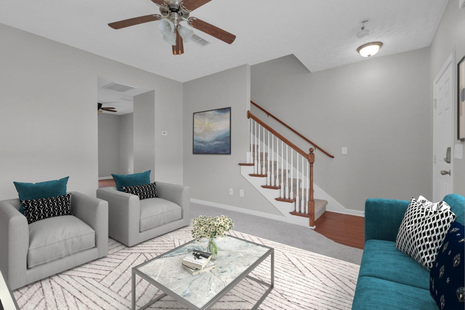 NOW AVAILABLE!!! Freshly updated & move-in ready! This 2-bedroom, 2.5-bath townhome makes low-maintenance living easy in a prime location. Step inside to new carpet and fresh paint throughout, creating a bright, modern feel. The main level features a sun-filled living area, spacious kitchen, and a convenient half bath for guests. Upstairs, both bedrooms are generously sized with private en-suite baths and oversized walk-in closets—perfect for roommates, guests, or a home office setup. Need extra storage? You’ll find it in the exterior storage off the back patio. Washer and dryer remain for effortless laundry days. Enjoy morning coffee on your covered front porch, then explore everything nearby: shopping, dining, and quick interstate access. Spend weekends at Four Corners Marina, Percy Priest Lake, or Hamilton Creek Recreation Area (just 9 minutes away), check out the new Tanger Outlets, or hop on a flight in only 15 minutes via Nashville International Airport. Pet friendly to a small/medium dog only. No cats. Application required. Give us a call to check it out!