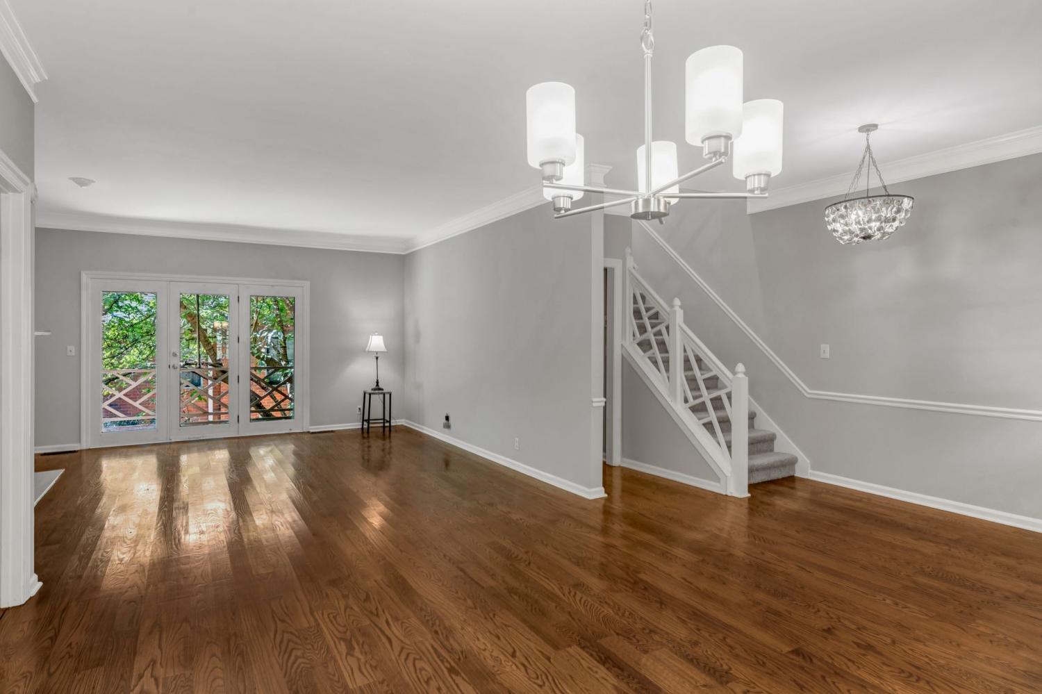 This quiet end-unit townhome offers unmatched value in Green Hills and the surrounding area—an incredible price for this location and lifestyle. Tucked just off Woodmont Boulevard, you’ll enjoy peaceful privacy along a wooded tree line while staying just minutes from Green Hills’ best shopping, dining, and entertainment. Step inside to find 9-foot ceilings, upgraded hardwoods, brand new carpet, and fresh paint throughout. The wood-burning fireplace adds cozy charm, while the open eat-in kitchen shines with stainless steel appliances—fridge, washer, and dryer all included—making this home truly move-in ready. Your spacious primary suite offers comfort and style, featuring a custom built-in closet and a walk-in shower. Set in a well-kept community with a pool, dog park, and convenient access to everyday essentials, this home combines location, lifestyle, and value like no other.