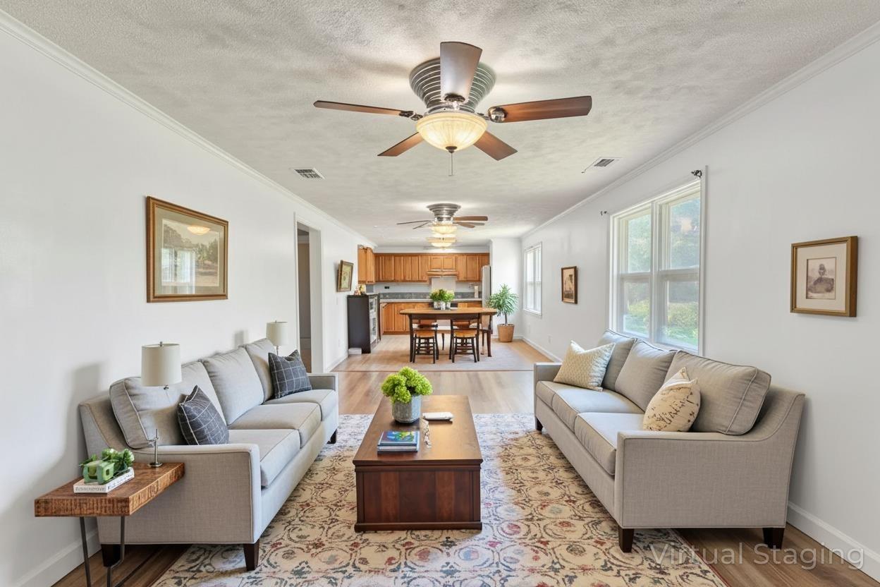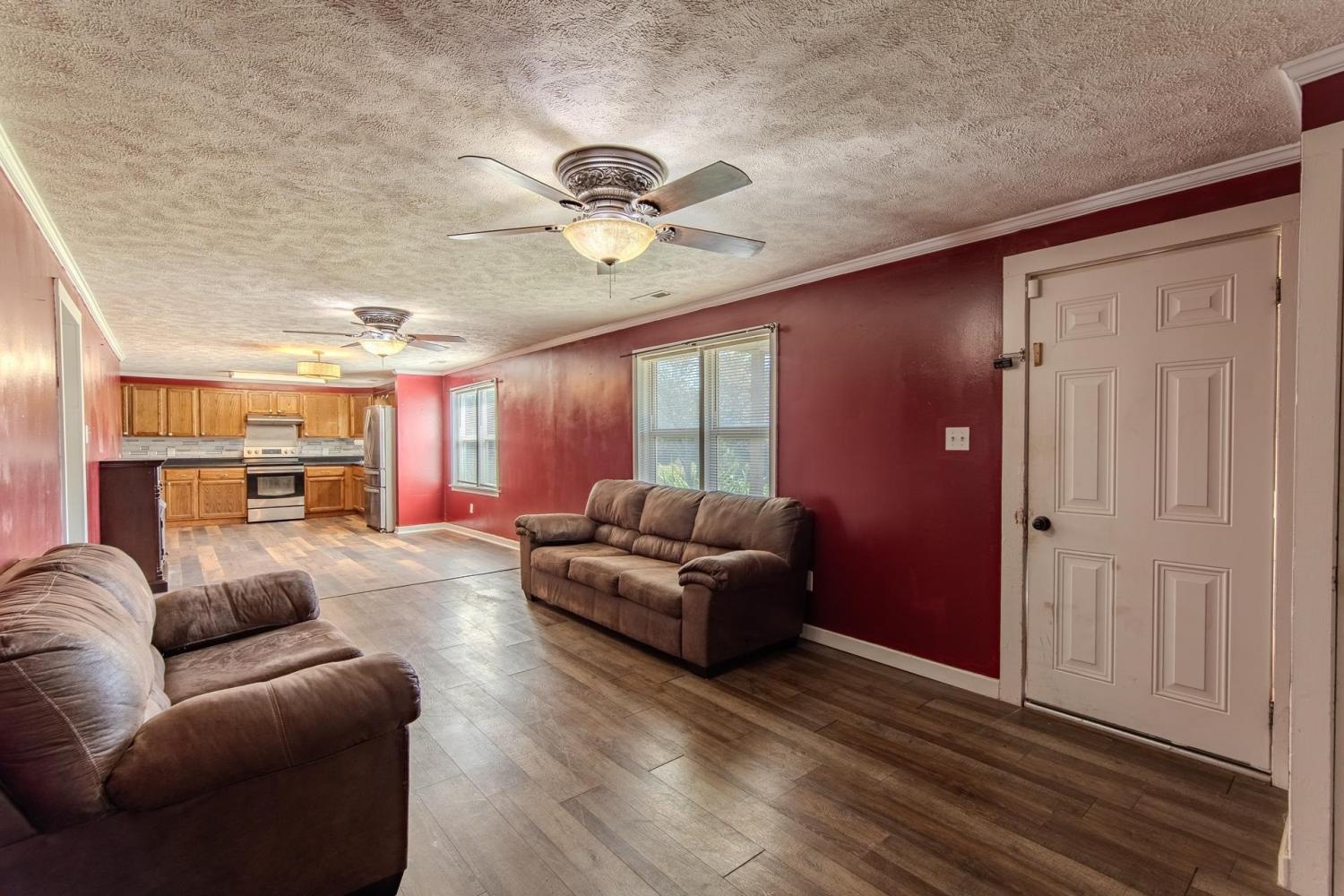 Say hello to this charming 2 bedroom, 1 bath home offering a spacious, open floor plan, and thoughtful features throughout. The kitchen is equipped with stainless steel appliances & a generous walk-in pantry, perfect for storage and organization! The spacious living/dining area is perfect for gatherings, game night, & dinner around your farm house table. Enjoy cozy evenings by the gas fireplace and sunny days on the inviting front porch or the private rear deck - ideal for grilling or relaxing. The large garage provides ample space for parking, storage, or hobbies. Conveniently located...just minutes from shopping and just a short drive to Pickwick Lake. This adorable home blends comfort, functionality, and location in one perfect package, whether your buying your first home, downsizing, retiring, or looking for an investment! Listed for $125,900. **Some virtual staging & virtual painting have been done in a few photos to show the potential this home has to offer.**