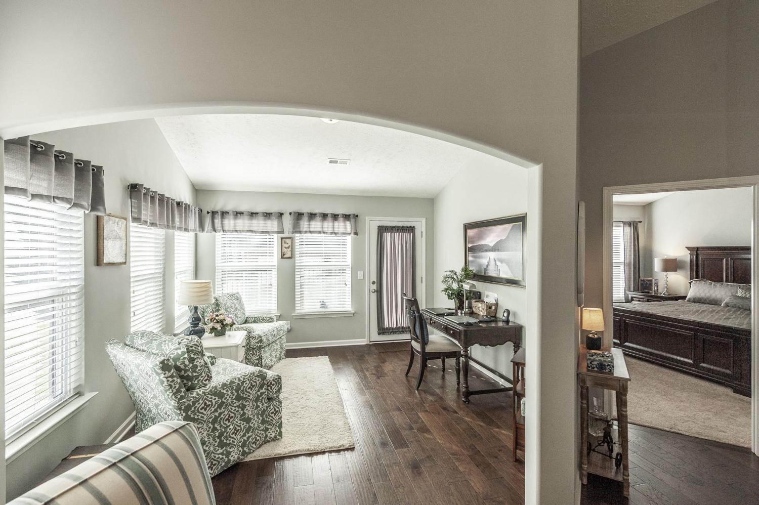 Welcome to Lenox Place, a premier 55-and-better community! This showstopper is an upgraded end-unit that offers the perfect blend of comfort and convenience. Featuring 2 bedrooms, 2 bathrooms, and 1,523 square feet, this home showcases hardwood flooring in the living areas and kitchen, tiled flooring in the bathrooms, and stunning granite countertops. Enjoy the added privacy of being tucked along the peaceful backside of the development, where lush green space and minimal traffic create a tranquil, low-maintenance lifestyle. The open layout and thoughtful design make this home ideal for both relaxing and entertaining. All you have to do is move in - this property is pristine! Community amenities and an active neighborhood setting complete the package!