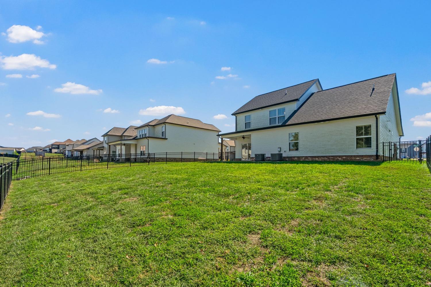 Welcome home to this stunning 5-bedroom, 2.5-bath residence that perfectly blends comfort, luxury, and functionality. Featuring a spacious open layout, this home invites you in with a large covered front porch—perfect for relaxing mornings or evening gatherings. Step inside to a bright and airy living area highlighted by a floor-to-ceiling stone fireplace and warm brick accents that create a cozy yet elegant atmosphere. The chef’s dream kitchen boasts a massive granite island, stainless steel appliances, walk-in pantry, and tile backsplash, making it ideal for cooking, entertaining, and family time. The primary suite on the main level offers a true retreat with a spa-inspired ensuite featuring a double tile shower, dual vanities, and a large walk-in closet. You’ll love the thoughtful touches throughout the home, including a coat wall with a built-in bench for kicking off your shoes after a long day. Upstairs, you’ll find carpeted bedrooms with ample closet space, providing plenty of room for everyone. Step through the sliding doors to your covered patio overlooking a fenced backyard—ideal for pets, play, or peaceful outdoor living. The two-car garage adds convenience and storage, rounding out this beautiful property that truly has it all.