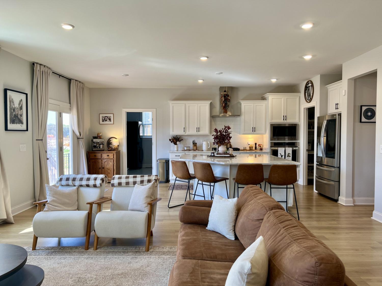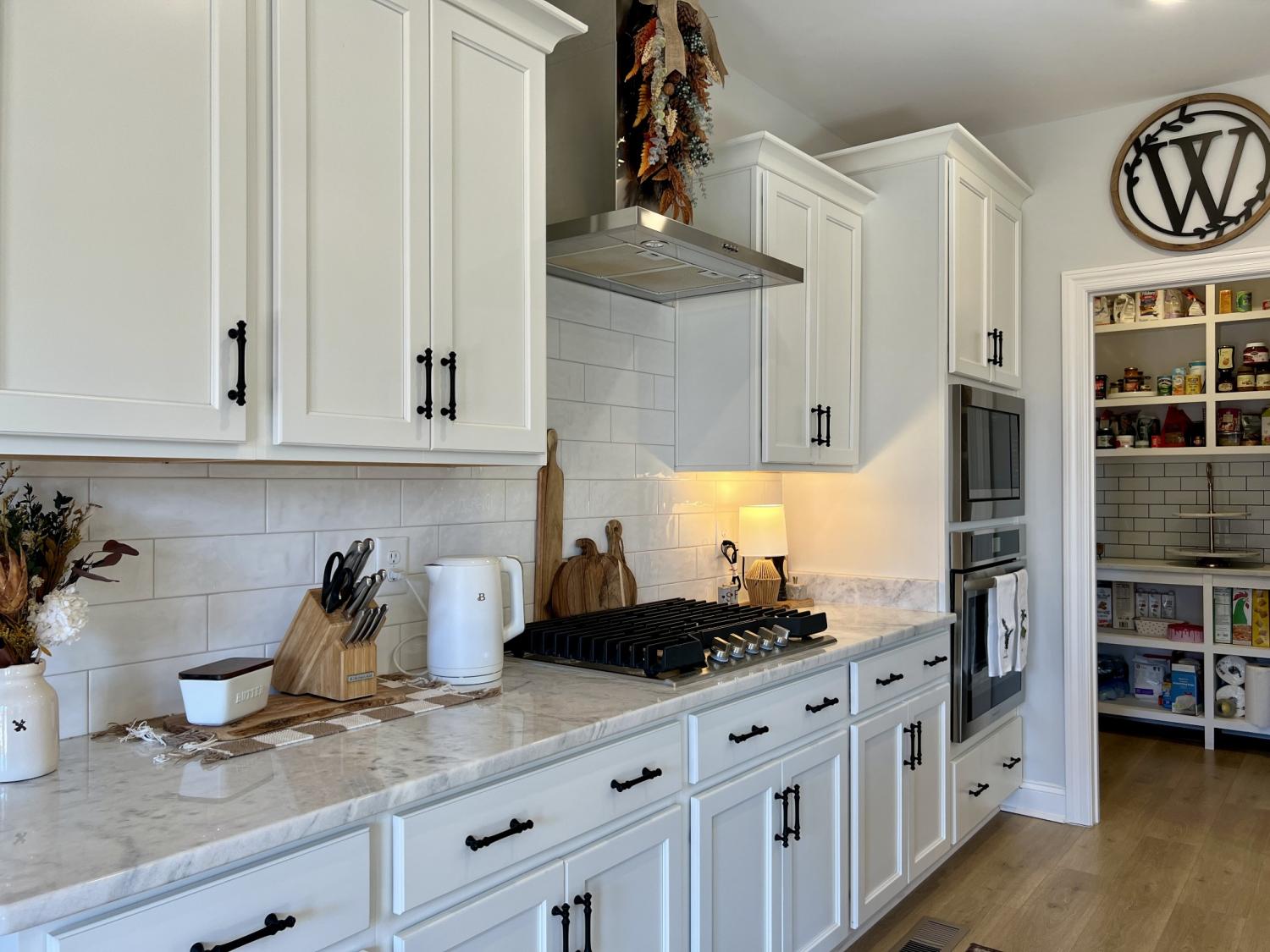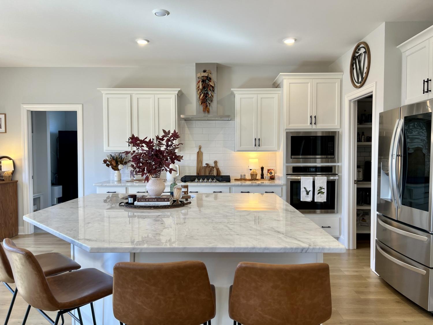 Perfection under one roof at 804 Odell Drive in White House, TN! This stunning 4-bedroom, 3-bath home combines charm, space, and functionality with thoughtful builder and owner upgrades throughout, evident down to the details. A covered front porch and tasteful landscaping greet you as you enter the home. Enjoy wide plank flooring, large windows, and an open floor plan filled with natural light. The kitchen shines with quartz countertops (marble-like in appearance), island seating for 4, stainless appliances, a 5-burner gas cooktop, and a walk-in pantry with custom shelving, electric outlets, and prep space. The main level offers a bedroom, full bath with marble enclosure, and an office that could serve as a 5th bedroom (closet could be added easily). The oversized primary suite includes a sitting area, but could easily be divided to create an additional bedroom, nursery, office, or hobby space. The upstairs bonus room offers versatility—make it a home theater, library, workout space, or whatever suits your needs! The laundry room features custom built-in storage, bench, and cubbies. Head out back through French doors to relax on the covered deck overlooking a flat backyard—one of the largest on the street—surrounded by decorative fencing and newly planted privacy shrubs. The Franklin floor plan and light brick exterior are no longer available in new construction, meaning this home is truly one of a kind. Sounds like home sweet home to you? Call today to schedule your private showing!