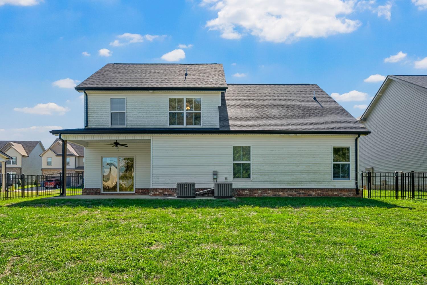 All the perks of new construction—without the upfront costs! Welcome to 1469 Citadel Drive, a stunning hard-to-find 5-bedroom home that is like new but better. Skip the extra expenses of new builds—this beauty already includes a sleek black metal fence, all appliances, and custom window blinds, saving you thousands from day one. The heart of the home is a dream-worthy open-concept kitchen that everyone is looking for! With tons of gathering space, a granite island, stainless-steel appliances, soft-close cabinetry, and a spacious walk-in pantry— all the common spaces perfectly flow together, convenient for daily life, and effortless entertaining. The cozy living area features a floor-to-ceiling stone fireplace, a built-in dog den (yes, it’s as cute as it sounds!), and a flexible built-in space ideal for a stylish bar, homework nook, or work-from-home zone. There is a generous space connecting the living and dining spaces with enough room for a large eating table. The oversized primary suite is your personal retreat with double vanities, a beautifully tiled walk-in shower, and an enormous closet designed to keep everything in its place. Four additional bedrooms offer flexibility for guests, home offices, or playrooms—plus extra transitional spaces ideal for a media room, game zone, or hobby haven. Step outside to enjoy your covered patio overlooking a private, fenced backyard with serene tree-lined views and no direct rear neighbors. It’s the perfect setup for quiet mornings, evening BBQs, or just enjoying the sunset in peace. Located near shopping, dining, schools, and with easy access to Fort Campbell, this home offers the best of both worlds: tranquil suburban living with urban convenience. Meticulously maintained, move-in ready, and full of thoughtful upgrades, 1469 Citadel Drive checks every box for comfort, style, and value. Come see why this is the one you’ve been waiting for! Check out the 3D virtual tour and floorplan and come see it in-person today --!