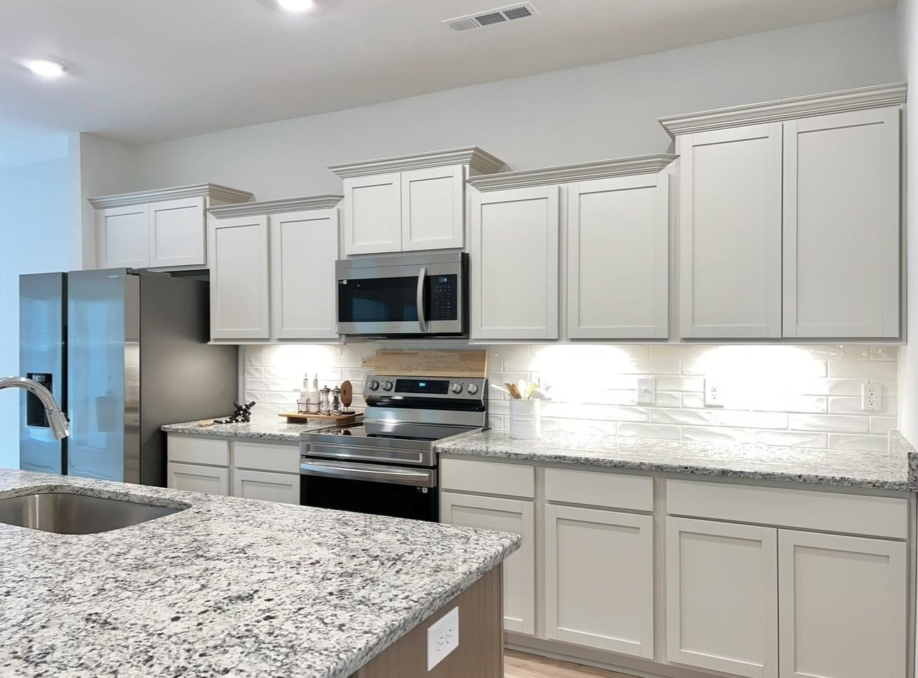 Plan (1690) Welcome to Park Place, a distinguished gated townhome community where modern convenience meets timeless appeal. Ideally situated next to H.V. Griffen Park and The Recreation Center, this neighborhood offers an exceptional blend of comfort, accessibility, and leisure. As you approach, the stunning stone masonry, Dover brick, and James Hardie exteriors sets the stage for the craftsmanship that defines this home. Inside, a formal foyer leads to an expansive living room that flows into the kitchen.The main level seamlessly blends the kitchen, living room, and breakfast area resulting in a harmonious space - perfect for both everyday living and entertaining guests. Windows flood these spaces with natural light while the back patio provides an ideal outdoor retreat. In the kitchen, you'll find an array of refined touches, including birch cabinetry, a spacious island, granite countertops, a tile backsplash, and high-end stainless steel appliances. Step outside to your private patio, an ideal spot to unwind, or take a stroll to the exclusive dog park for some fresh air. All bedrooms and the laundry room are cleverly zoned upstairs. The primary bedroom is a haven in itself featuring a private en-suite bathroom. The guest bedrooms feature inviting window nooks. The garage is painted for added style, smooth ceilings, and window blinds are installed throughout. Park Place is located within an Equal Opportunity Zone, which may offer tax advantages for buyers who hold their investment for at least two years (buyer to verify with their accountant). This isn’t just a home—it’s a lifestyle waiting for you. Don’t miss your chance to live in this exceptional community. $99 Closing Costs promotion includes payment of insurance for one year, property tax escrows, origination fees, and discount points as allowed. Must use preferred lender. Images may be digitally enhanced and may not reflect actual features or finishes. Verify with on-site agent.