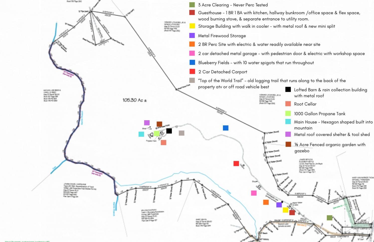 A true homesteader’s paradise on 105 private acres in the Short Mountain community! The one-of-a-kind 3-story home, built into the mountainside in a striking truncated hexahedron design, offers stunning ridge-top views and total seclusion. Property features multiple outbuildings with electric and cooling, a lofted barn, root cellar, walk-in refrigerated building, and a former natural foods club—ideal for a guest house or studio. Also includes a 1BD/1BA guest house, 3-acre clearing, and Top of the World Trail with incredible views. Enjoy 200+ blueberry bushes, fig and cherry trees, black raspberries, and a fenced 1/4 acre organic garden with raised beds. City water, MTE electric, propane, wood stove, Wi-Fi, and fiber optics provide comfort and convenience. A 2-bed perc site with power box adds potential for expansion. The perfect blend of off-grid privacy and modern amenities!