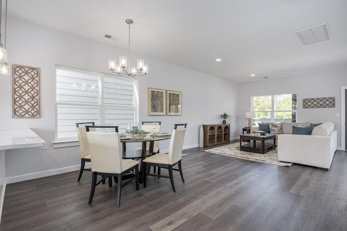 Welcome to the MADISON Plan, a stunning new construction home, ideally located 15 minutes from Nashville. This three-story single-family home offers 2,116 square feet of living space with five spacious bedrooms and 3.5 bathrooms, providing the perfect blend of comfort, style, and functionality. Thoughtfully designed upgrades are featured throughout, including a tray ceiling in the third-floor primary suite, 3cm quartz countertops in the kitchen and all bathrooms, and soft-close cabinets for a polished, modern finish. Extra bedrooms come with prewired ceiling fans, and a 32-inch soaking tub in the secondary bathroom adds a touch of luxury. For added convenience, USBC and USB ports are installed in the kitchen, living room, and all bedrooms. Enjoy outdoor living with inviting porches, perfect for relaxing or entertaining. Located less than a mile from grocery stores, popular restaurants, gyms, parks, and entertainment, this home offers both convenience and serenity.