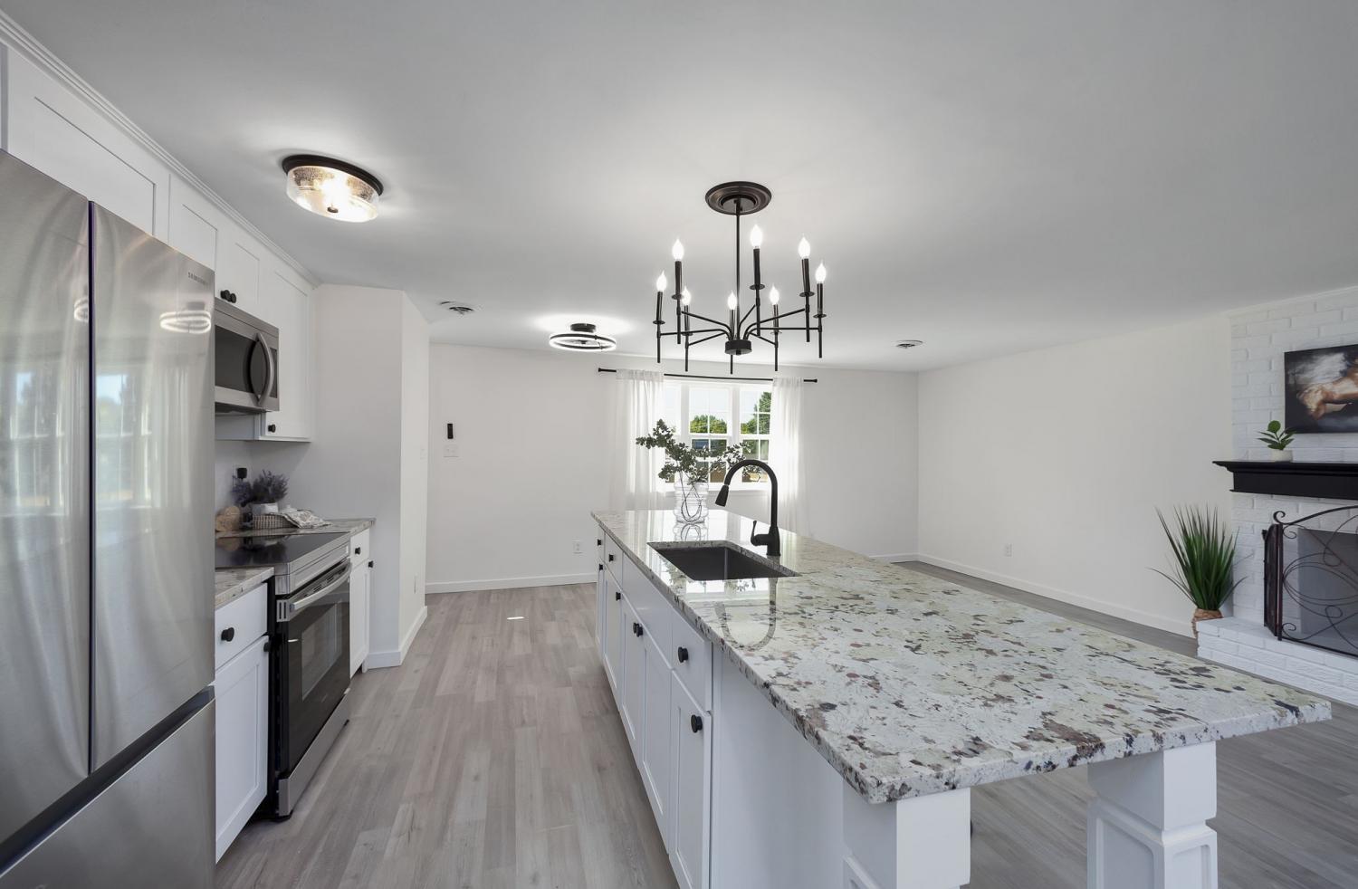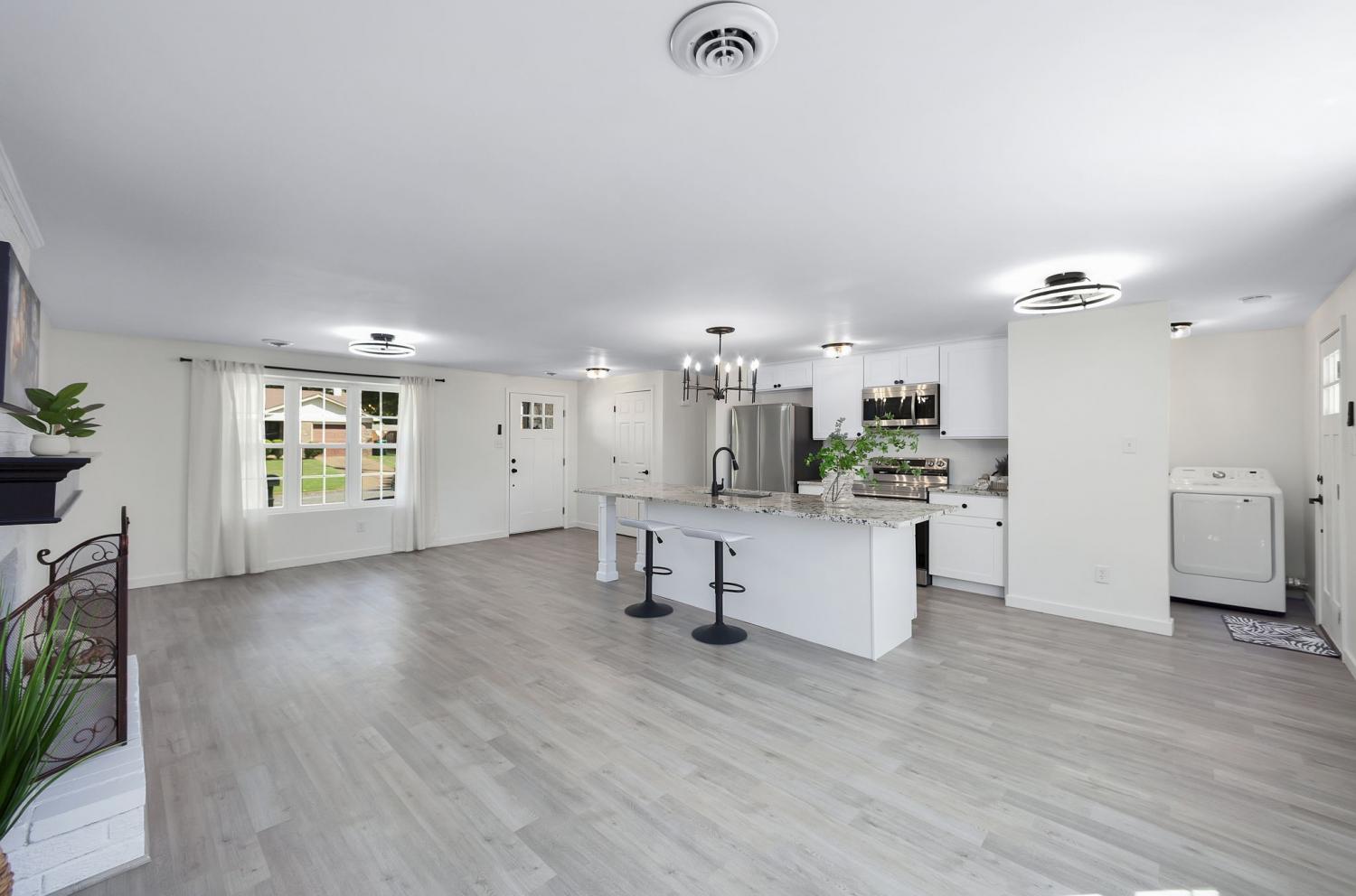 Welcome Home to this Completely Remodeled & Move-In Ready Property! This one-story ranch has been totally transformed—so many upgrades, it’s hard to keep count! Fresh paint inside and out, brand-new LVP flooring with tile in all the wet areas, new roof, custom windows, custom closets, all new doors, new water heater and HVAC are just the beginning. The open-concept living area flows right into a dream kitchen featuring brand-new cabinets, sparkling granite countertops, and a massive 10-foot island that’s ready for cooking, gathering, or just showing off. Every appliance is brand new—including the washer and dryer! Step outside to a spacious, perfectly flat yard, fully wrapped in a brand-new privacy fence—ideal for pets, play, or backyard parties. Add in all-new bathroom fixtures and stylish light fixtures, and you’ve got a home that feels brand new from top to bottom. And the cherry on top? It’s tucked into a super convenient location close to everything you need. Fresh, modern, and move-in ready—the only thing missing is you!