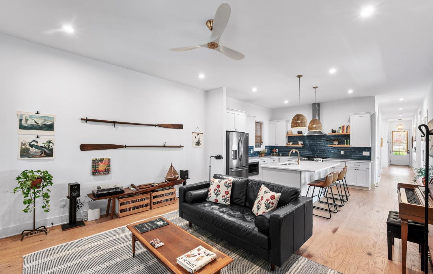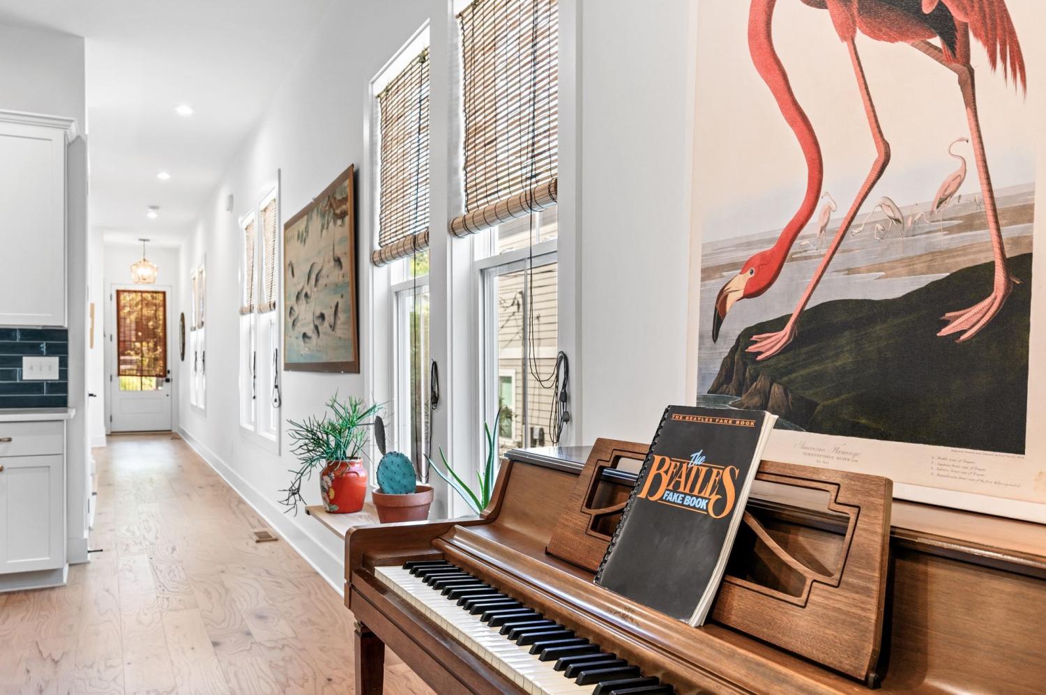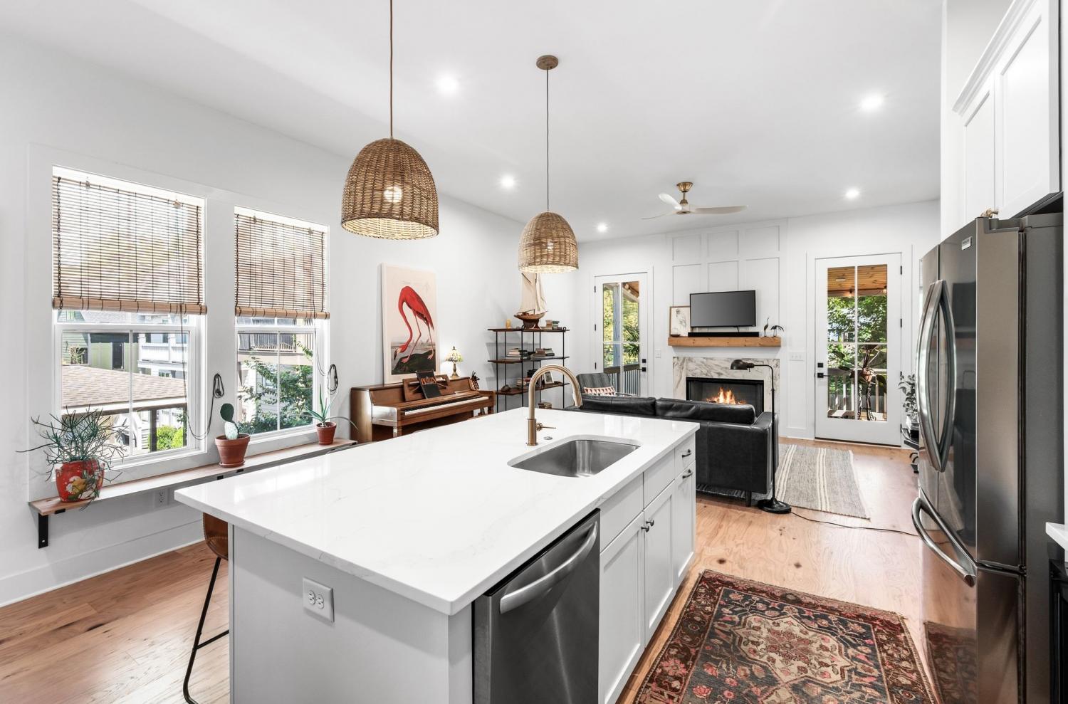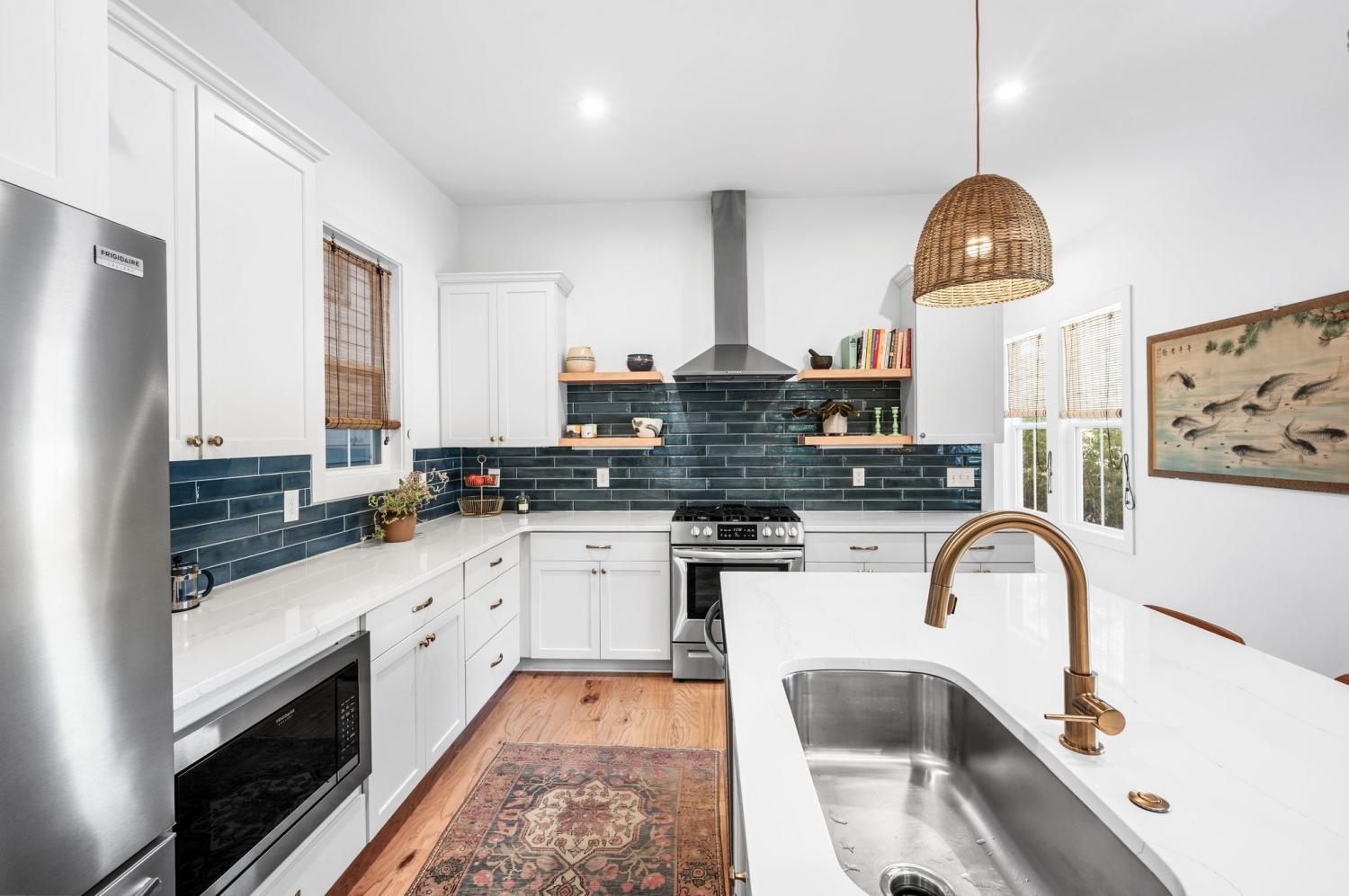 All bedrooms have private, en-suite bathrooms; full kitchen; screened back porch for relaxing; fenced back yard ready for your pup; two smart TVs- one downstairs and larger couch and smart TV living room area upstairs. Walking distance to Elegy Coffee, Nicoletto's Italian, Frankie's Pizza, Mickey's Tavern, Tiger Bar, Gramp's Garage, Anytime Fitness, YMCA, Grimey's, Living Waters Brewery; close to grocery stores; short distance to Riverside Village restaurants/bars; short drive to Shelby Park; 10 minutes to downtown, 15 minutes to airport. This recently built, beautifully designed home combines modern luxury with cozy comfort for a peaceful and convenient stay near downtown. A two-floor, light-filled open floor plan with natural wood floors and organic finishes throughout. The chefs kitchen features gas cooking and stainless steel appliances. Each of the three bedrooms includes a private en-suite bathroom and large closets. Includes attached garage plus additional parking, screened back porch, fenced backyard, and upstairs laundry room.