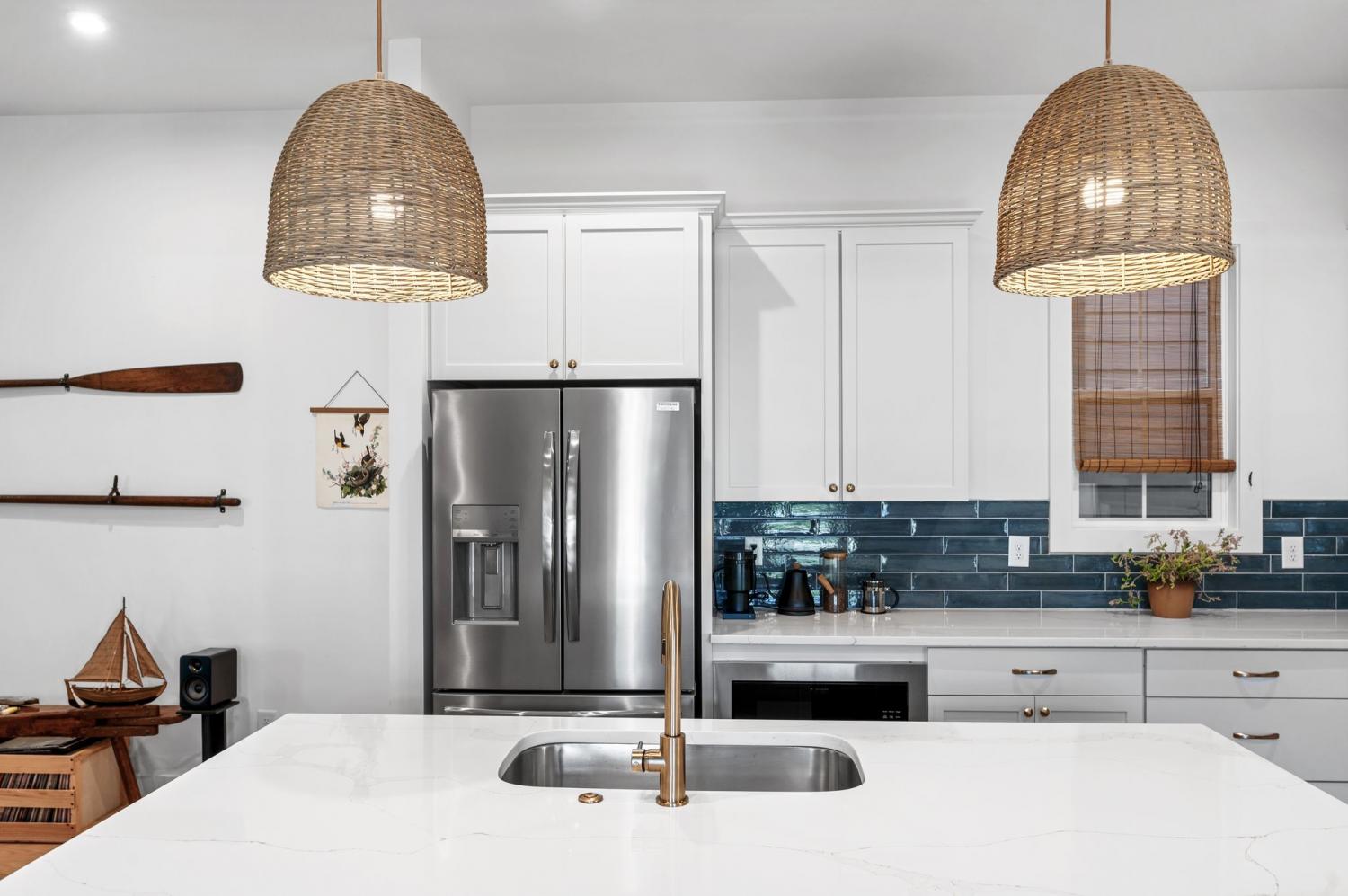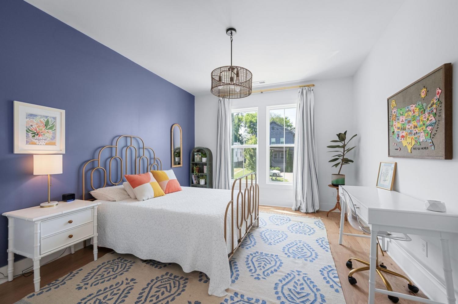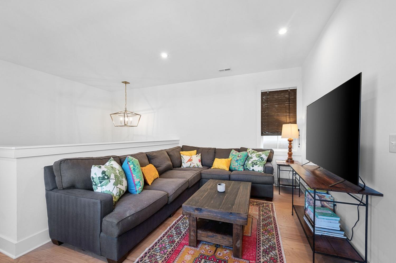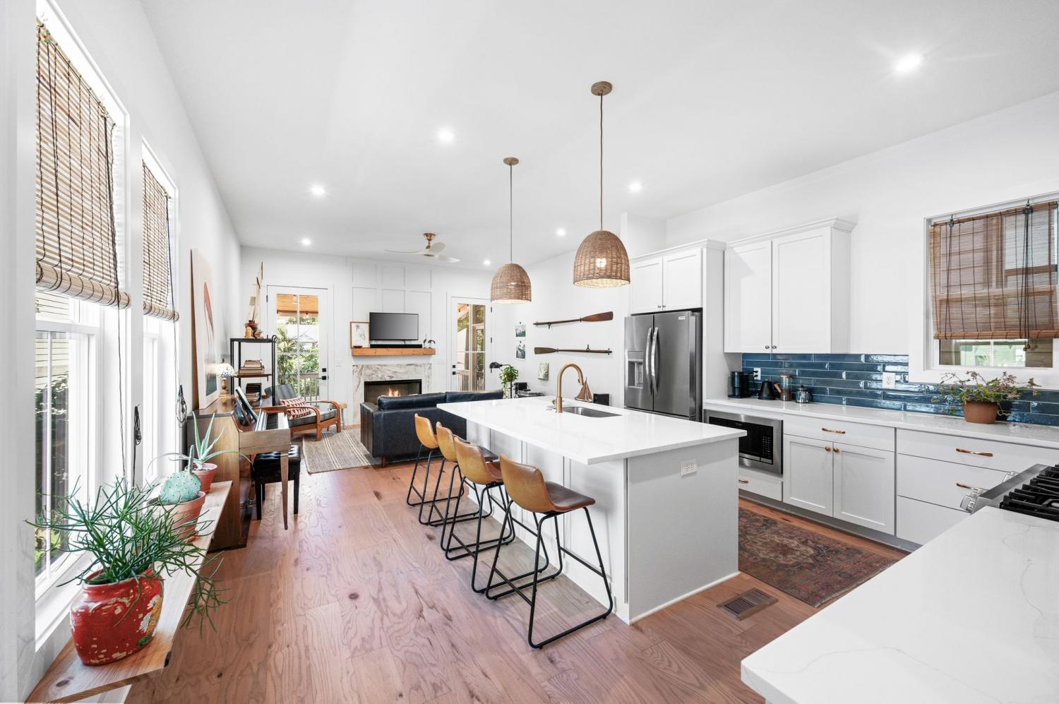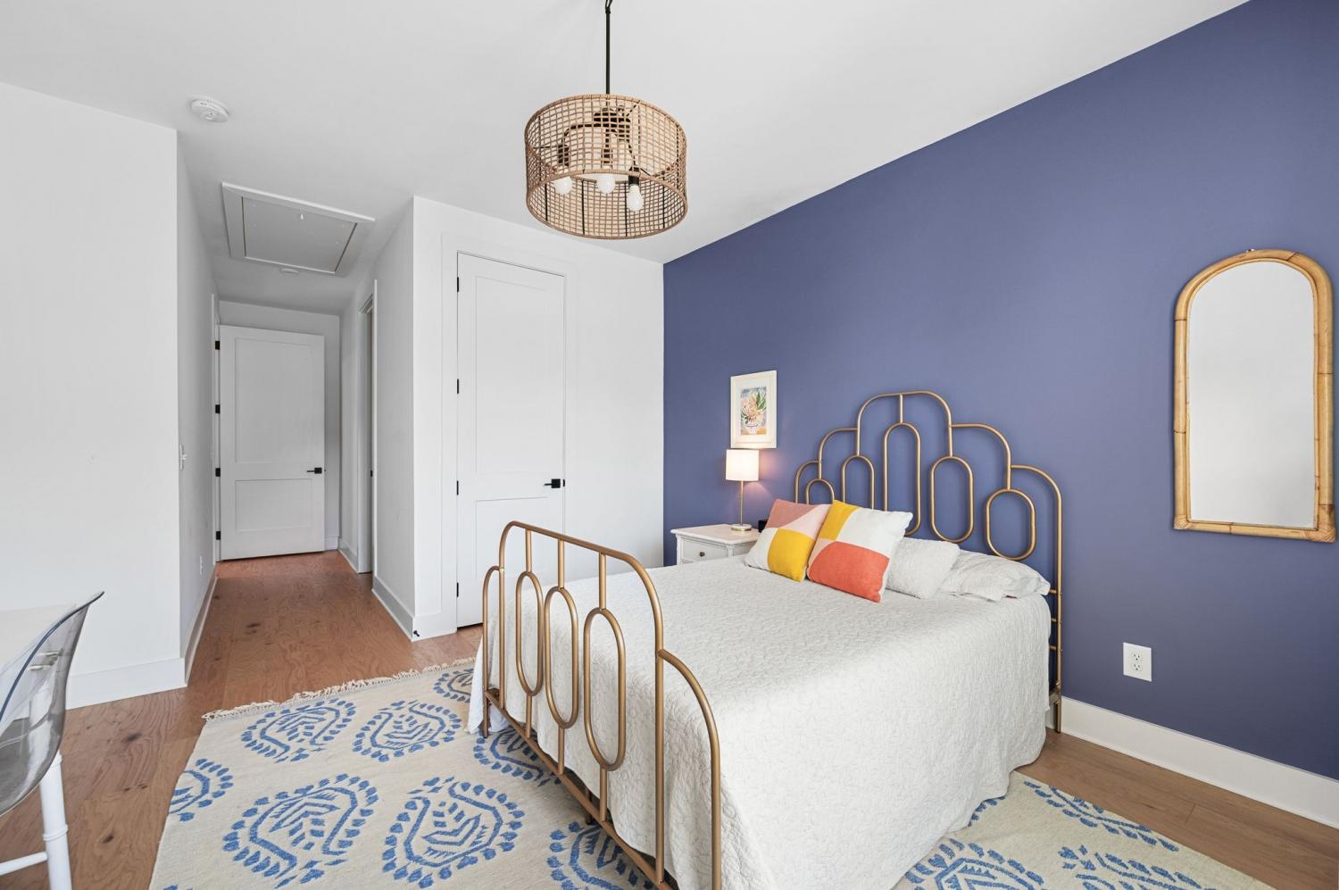All bedrooms have private, en-suite bathrooms; full kitchen; screened back porch for relaxing; fenced back yard ready for your pup; two smart TVs- one downstairs and larger couch and smart TV living room area upstairs. Walking distance to Elegy Coffee, Nicoletto's Italian, Frankie's Pizza, Mickey's Tavern, Tiger Bar, Gramp's Garage, Anytime Fitness, YMCA, Grimey's, Living Waters Brewery; close to grocery stores; short distance to Riverside Village restaurants/bars; short drive to Shelby Park; 10 minutes to downtown, 15 minutes to airport. This recently built, beautifully designed home combines modern luxury with cozy comfort for a peaceful and convenient stay near downtown. A two-floor, light-filled open floor plan with natural wood floors and organic finishes throughout. The chefs kitchen features gas cooking and stainless steel appliances. Each of the three bedrooms includes a private en-suite bathroom and large closets. Includes attached garage plus additional parking, screened back porch, fenced backyard, and upstairs laundry room.
