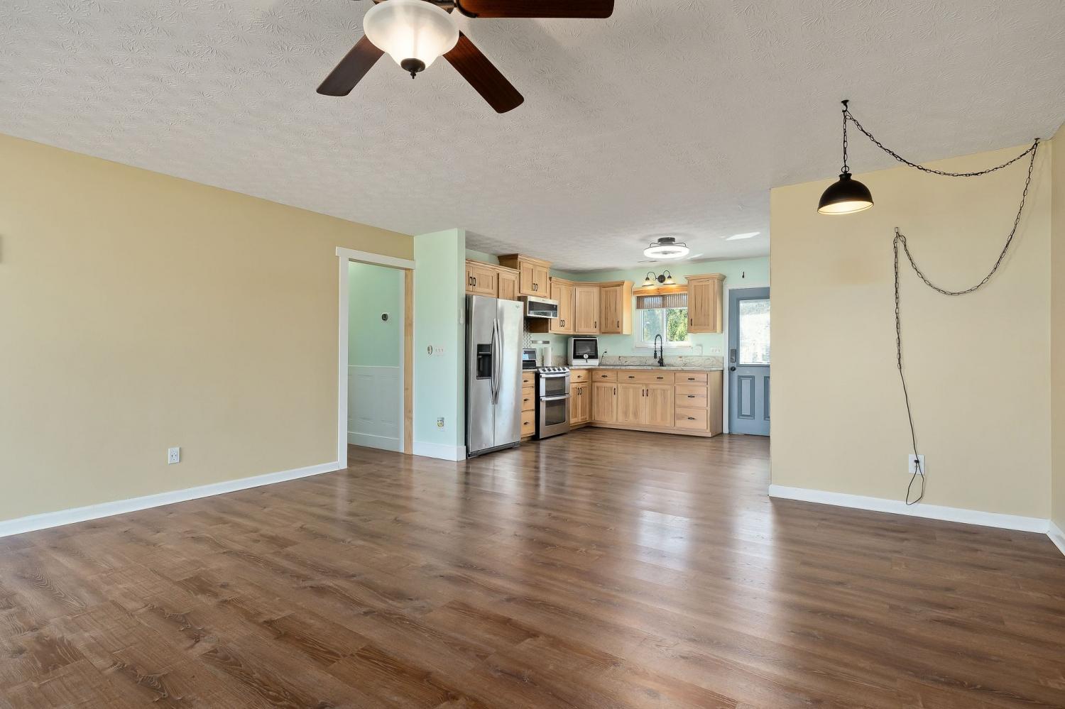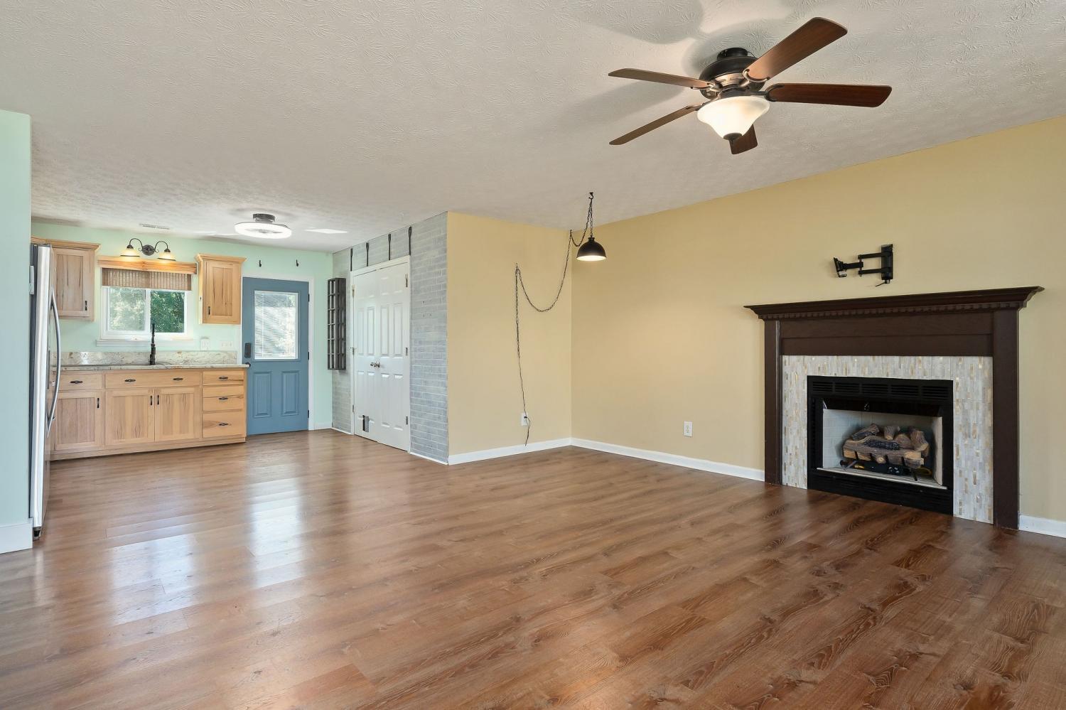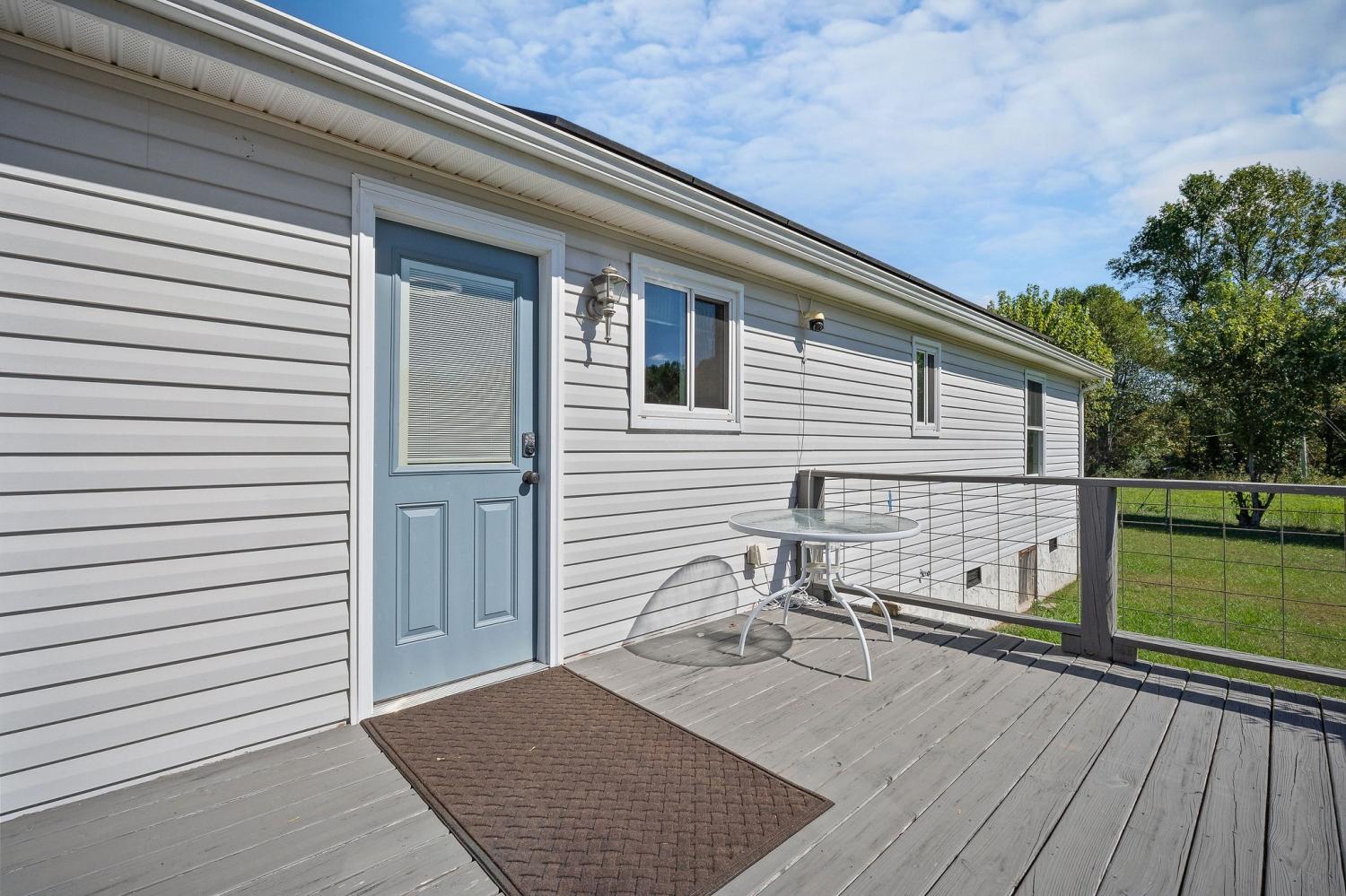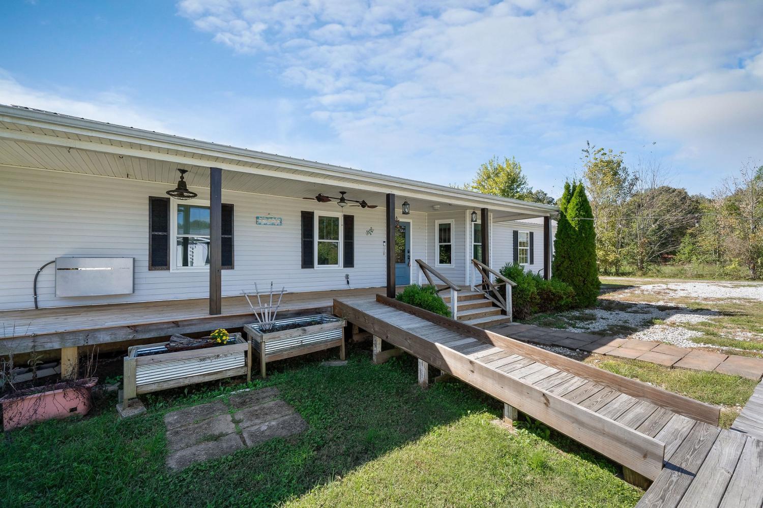 Don't miss this one!!! So many upgrades and features! This spacious 4-bedroom, 3-bathroom home offers a versatile layout with many updates throughout. The main area features 3 bedrooms and 2 bathrooms, while a private mother-in-law suite provides its own bedroom, kitchen, bathroom, and living room. Recent updates include newer flooring, fresh paint, updated lighting, three new entry doors, and a RainSoft brand water filtration system. Kitchen appliances in the main area and suite, along with the washer and dryer, remain with the home. The property also includes SOLAR PANELS, a tankless water heater, and ADA-compliant accessibility inside and outside. Two thermostats control separate zones for the main home and the suite. The home’s exterior features a tree-lined driveway, new front porch and steps, a freshly painted back deck, and a fenced (the very back of the property line may not be fenced) and sub-fenced yard. A one-car detached garage offers extra reinforcement underneath. The garage provides 220v electric wiring, an electric garage door opener, and window air. Additional storage includes two backyard sheds. There is a large 40x40 barn. The barn’s contents remain. The property was logged in 2007, and the septic system was recently pumped. The roof was replaced in 2013. New HVAC installed in 2021! Electricity is available in the field to the left of the home, ideal for a shed, pool, or other hobbies. Outdoor features include apple trees, black walnut trees, raspberry bushes, and blueberry bushes. The addition of the mother-in-law suite was completed in 2013. Paneling in the primary bedroom has sheetrock underneath. Kitchen counters are granite, and the living area includes a ventless gas fireplace.