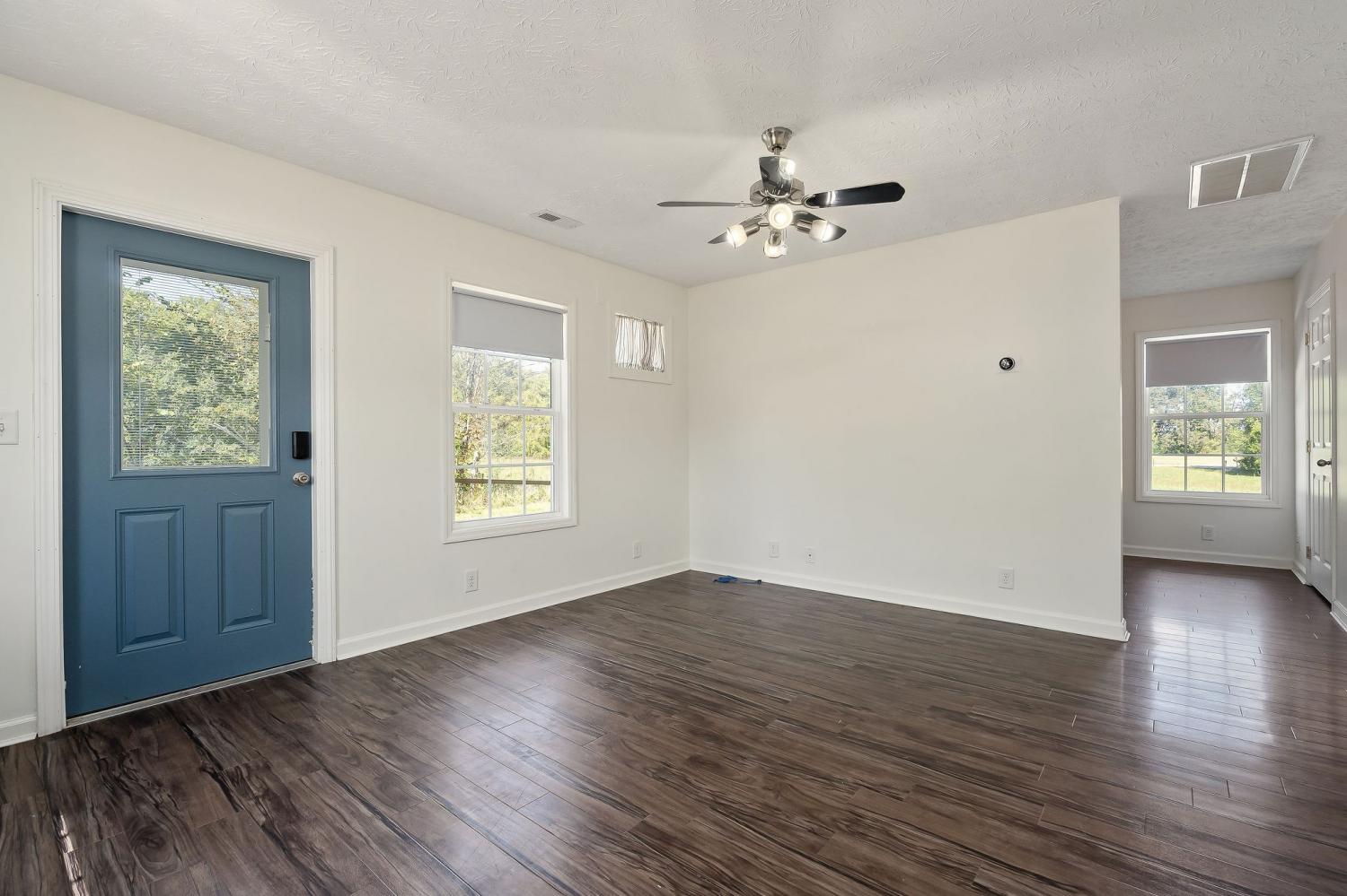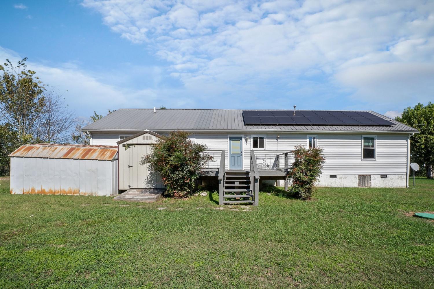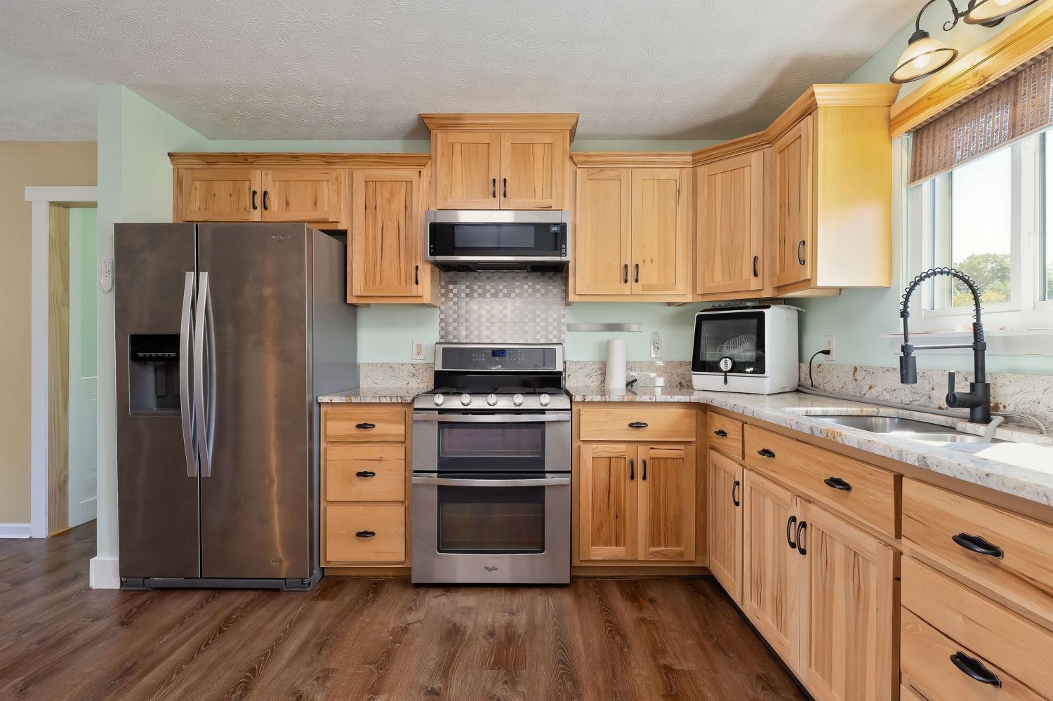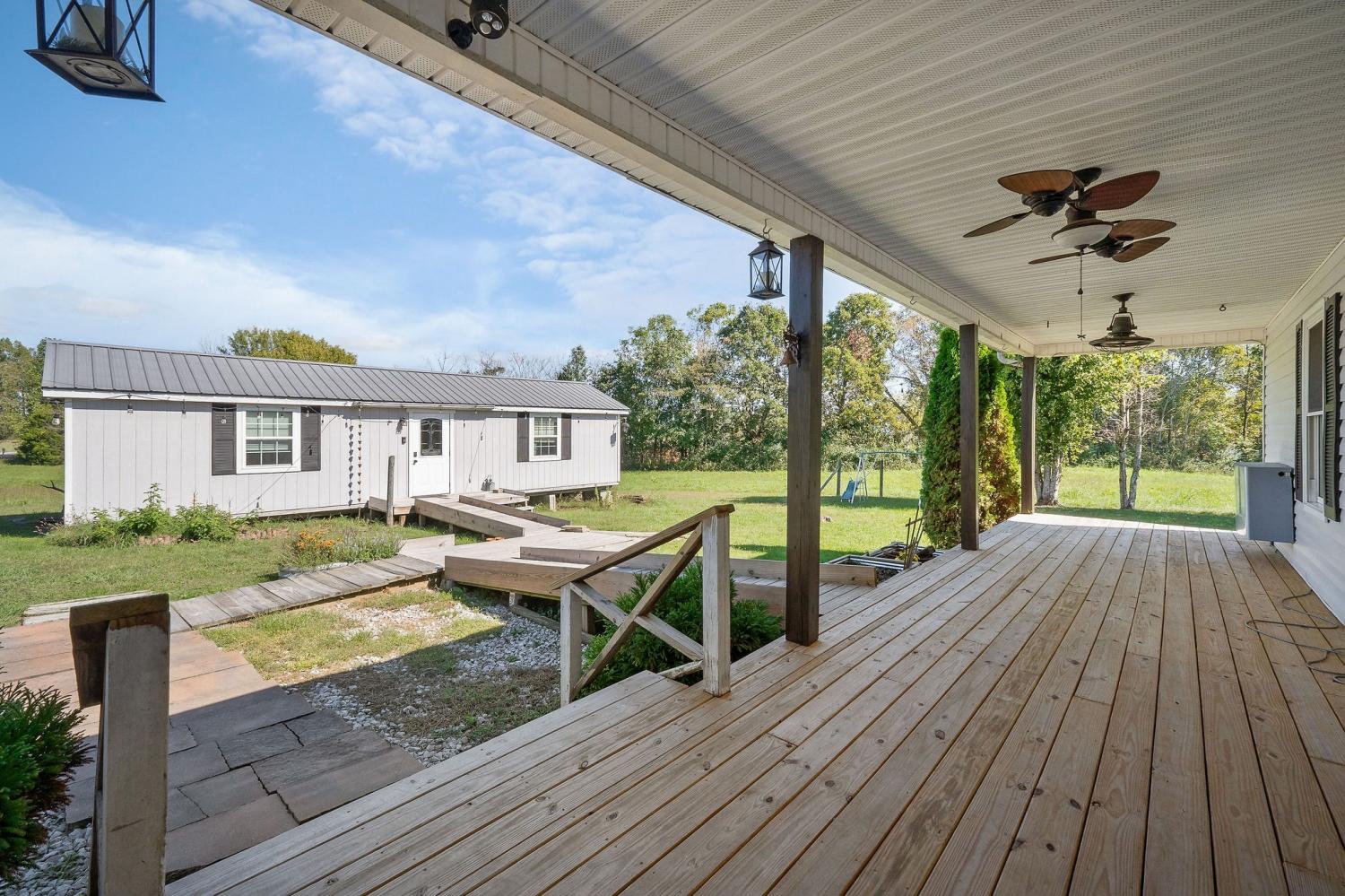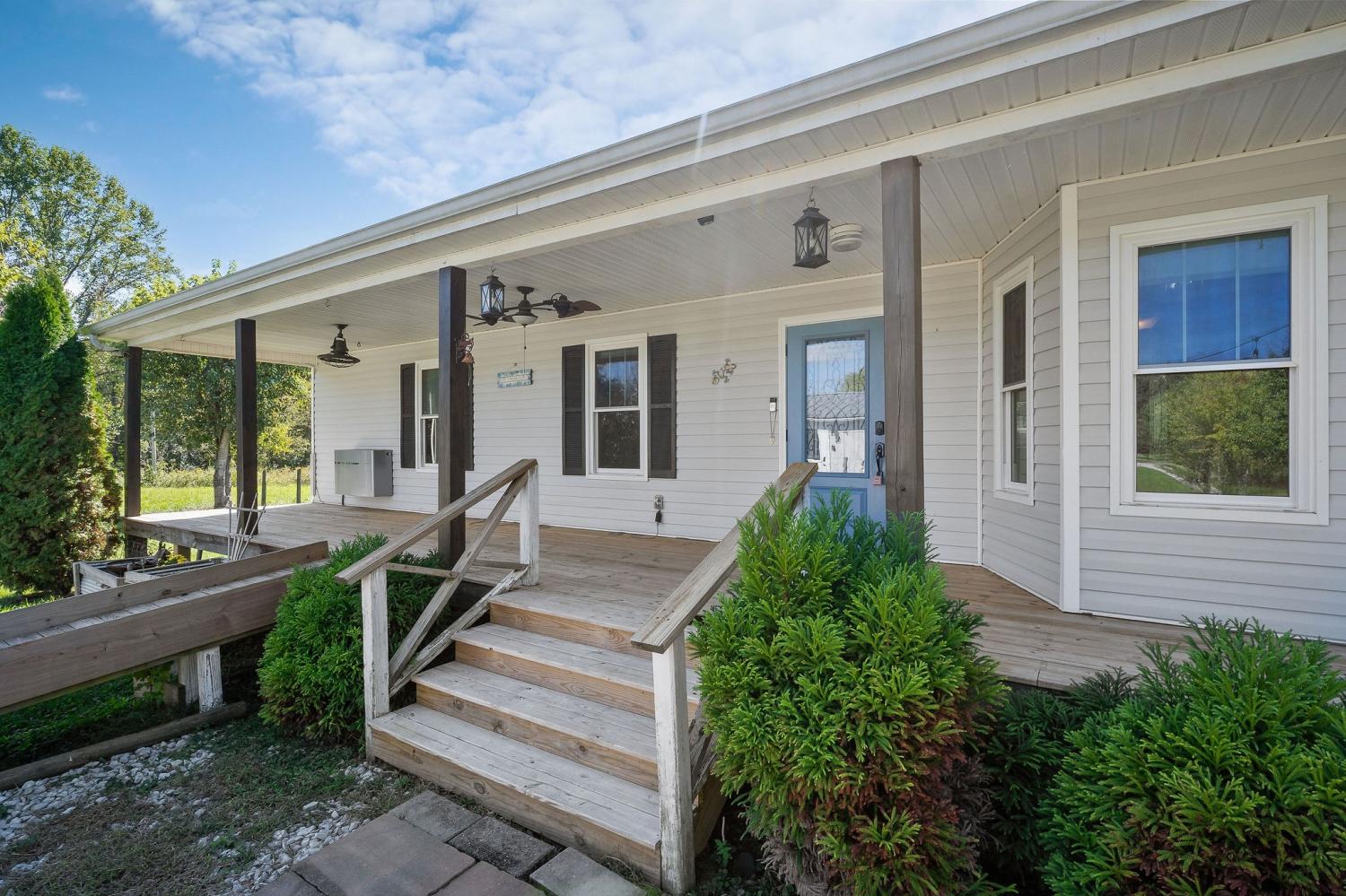 Don't miss this one!!! So many upgrades and features! This spacious 4-bedroom, 3-bathroom home offers a versatile layout with many updates throughout. The main area features 3 bedrooms and 2 bathrooms, while a private mother-in-law suite provides its own bedroom, kitchen, bathroom, and living room. Recent updates include newer flooring, fresh paint, updated lighting, three new entry doors, and a RainSoft brand water filtration system. Kitchen appliances in the main area and suite, along with the washer and dryer, remain with the home. The property also includes SOLAR PANELS, a tankless water heater, and ADA-compliant accessibility inside and outside. Two thermostats control separate zones for the main home and the suite. The home’s exterior features a tree-lined driveway, new front porch and steps, a freshly painted back deck, and a fenced (the very back of the property line may not be fenced) and sub-fenced yard. A one-car detached garage offers extra reinforcement underneath. The garage provides 220v electric wiring, an electric garage door opener, and window air. Additional storage includes two backyard sheds. There is a large 40x40 barn. The barn’s contents remain. The property was logged in 2007, and the septic system was recently pumped. The roof was replaced in 2013. New HVAC installed in 2021! Electricity is available in the field to the left of the home, ideal for a shed, pool, or other hobbies. Outdoor features include apple trees, black walnut trees, raspberry bushes, and blueberry bushes. The addition of the mother-in-law suite was completed in 2013. Paneling in the primary bedroom has sheetrock underneath. Kitchen counters are granite, and the living area includes a ventless gas fireplace.