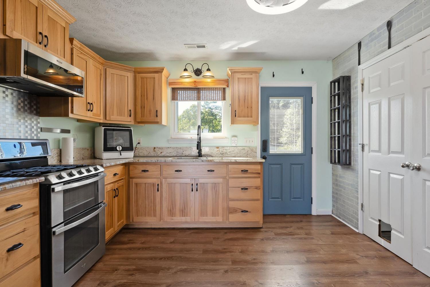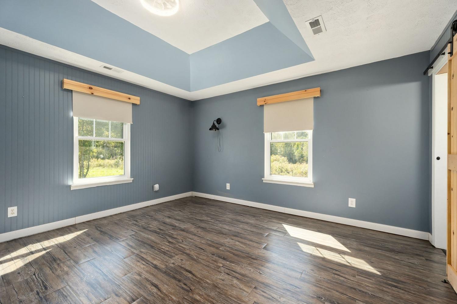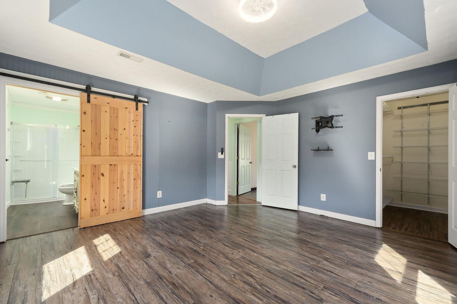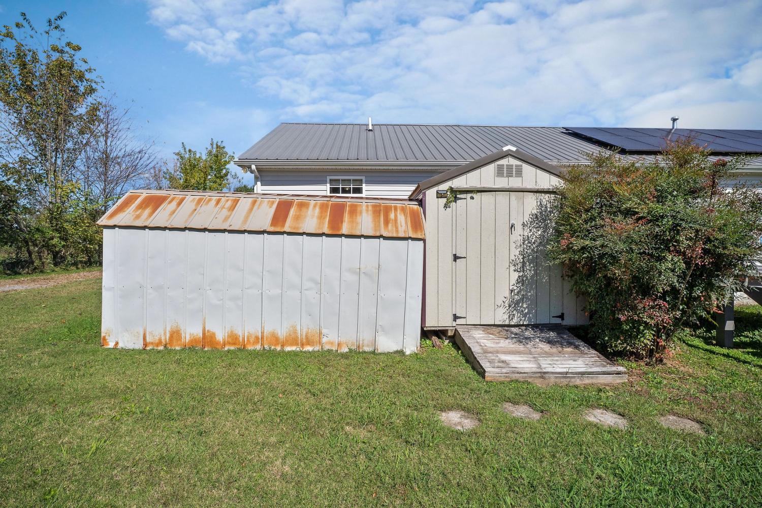 Don't miss this one!!! So many upgrades and features! This spacious 4-bedroom, 3-bathroom home offers a versatile layout with many updates throughout. The main area features 3 bedrooms and 2 bathrooms, while a private mother-in-law suite provides its own bedroom, kitchen, bathroom, and living room. Recent updates include newer flooring, fresh paint, updated lighting, three new entry doors, and a RainSoft brand water filtration system. Kitchen appliances in the main area and suite, along with the washer and dryer, remain with the home. The property also includes SOLAR PANELS, a tankless water heater, and ADA-compliant accessibility inside and outside. Two thermostats control separate zones for the main home and the suite. The home’s exterior features a tree-lined driveway, new front porch and steps, a freshly painted back deck, and a fenced (the very back of the property line may not be fenced) and sub-fenced yard. A one-car detached garage offers extra reinforcement underneath. The garage provides 220v electric wiring, an electric garage door opener, and window air. Additional storage includes two backyard sheds. There is a large 40x40 barn. The barn’s contents remain. The property was logged in 2007, and the septic system was recently pumped. The roof was replaced in 2013. New HVAC installed in 2021! Electricity is available in the field to the left of the home, ideal for a shed, pool, or other hobbies. Outdoor features include apple trees, black walnut trees, raspberry bushes, and blueberry bushes. The addition of the mother-in-law suite was completed in 2013. Paneling in the primary bedroom has sheetrock underneath. Kitchen counters are granite, and the living area includes a ventless gas fireplace.