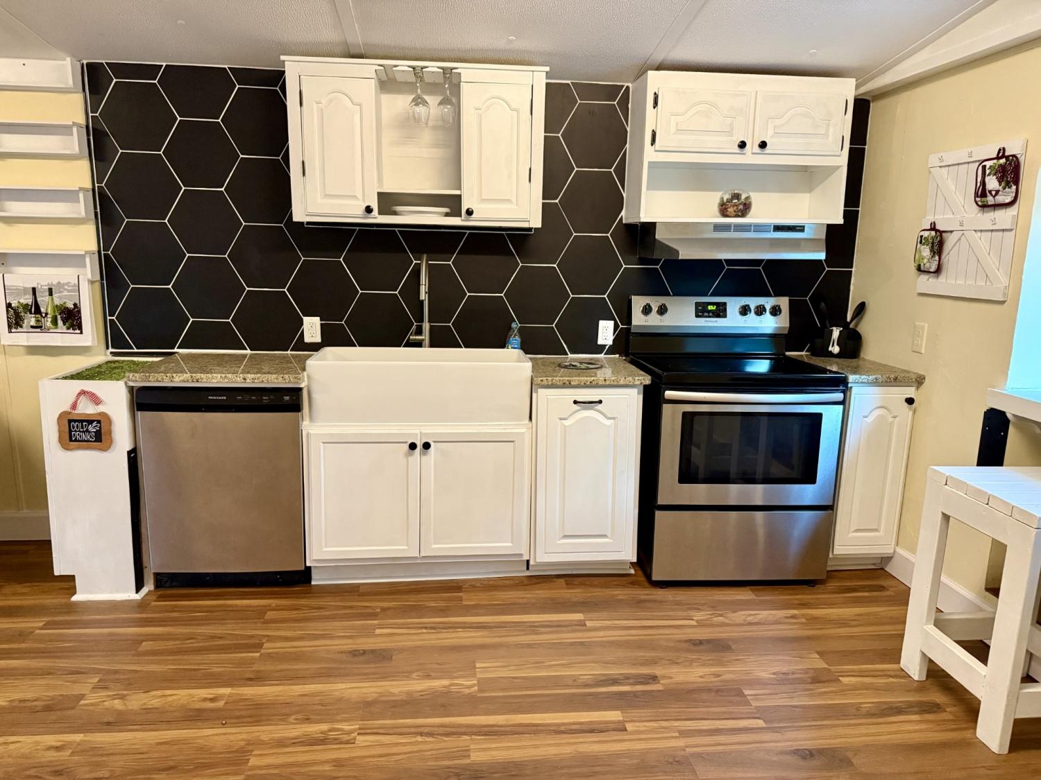 This completely renovated 700 sq ft trailer, located within walking distance to downtown Pulaski & UT Southern College, has numerous updates for a modern living experience: new flooring throughout, all new windows, granite countertops, a 36-inch fireclay farmhouse kitchen sink, a custom breakfast nook with a view out the large kitchen/dining room window, a coffee station, a built-in wine rack and wine glass holder, a luxury bath featuring a soaking tub with tiled shower and tiled bathroom floor, and an accent wall in the primary bedroom to name a few. Further enhancing the property are a new, large front deck, a new AC/Heat unit and water heater, and vaulted ceiling over the combined living room, dining room, and kitchen area. The sale is all-inclusive: the trailer, the land, and all appliances, furniture, furnishings, and decor inside the home remain. A complete list of updates is available in the document section. Buyers and buyer's agents must verify all important information. Home is not on a permanent foundation and is not de-titled - must be a cash purchase or if you need creative financing options through a local bank, please reach out for lender information. Would be a great investment property or home to live in.