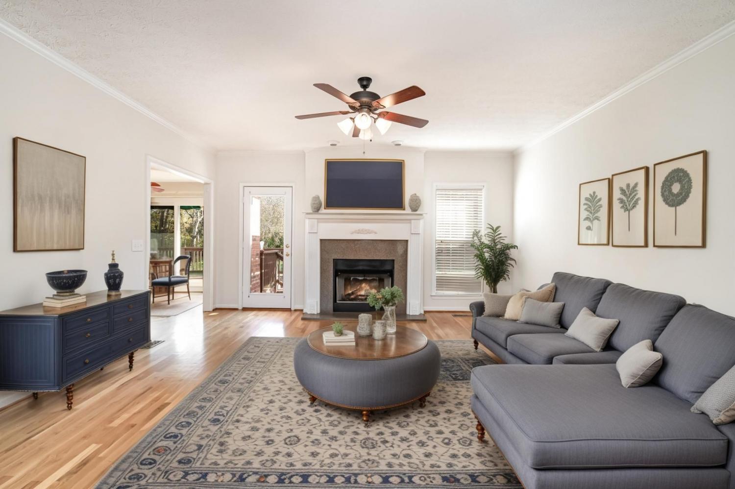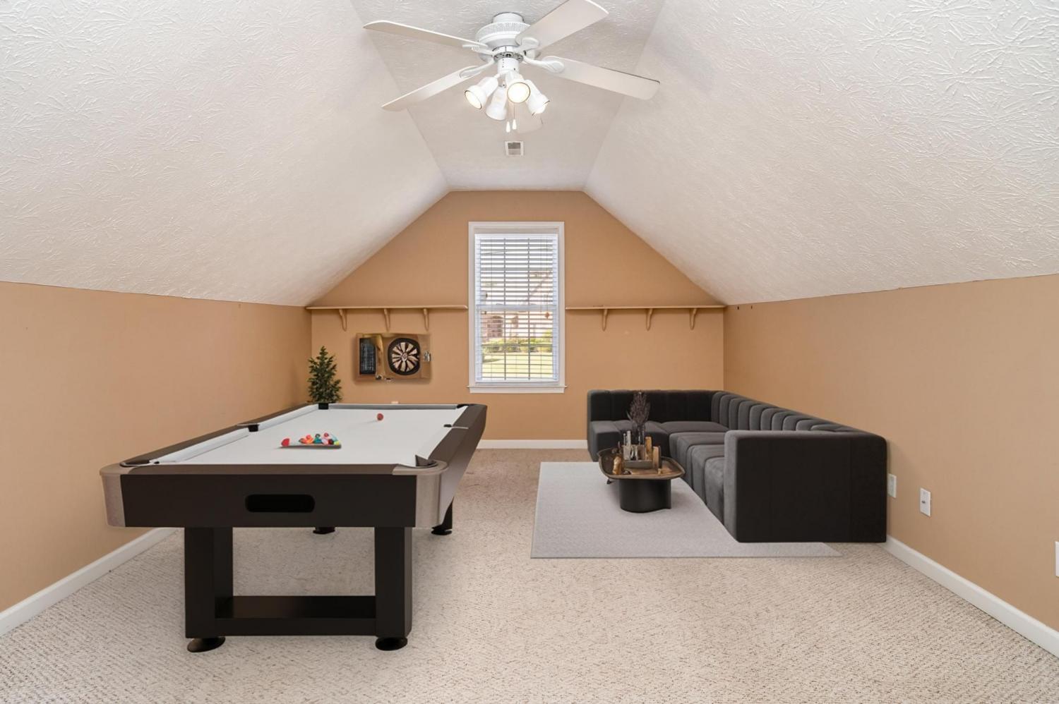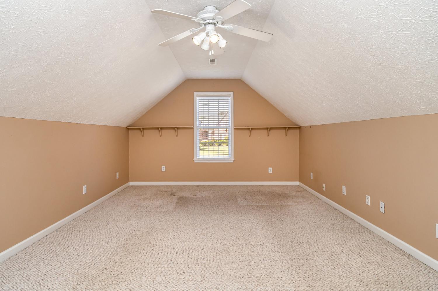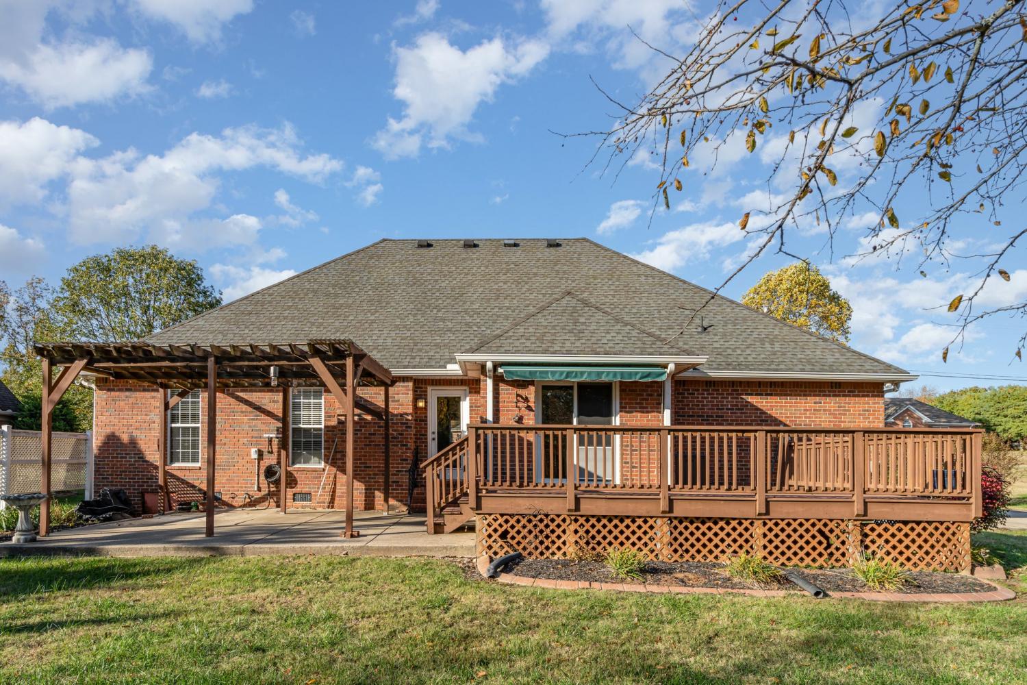 BEAUTIFUL GRANDVIEW ESTATES HOME ON A SPACIOUS LOT Welcome to this lovely 3 bed, 2 bath home offering a split layout with bonus room upstairs. This home has a formal living area with a fireplace, opening to the formal dining room. The kitchen features solid surface countertops, tiled backsplash and an eat-in kitchen with a gorgeous view of the large back yard. The primary suite has a large tiled bathroom with separate tub and shower and double vanities. There is a spacious bonus room upstairs, perfect for use as an office, movie room or a guest room. Enjoy the sitting or entertaining on the back deck or patio. The home also features a storm shelter in the garage! This home has been meticulously maintained, from the landscaping to the interior.