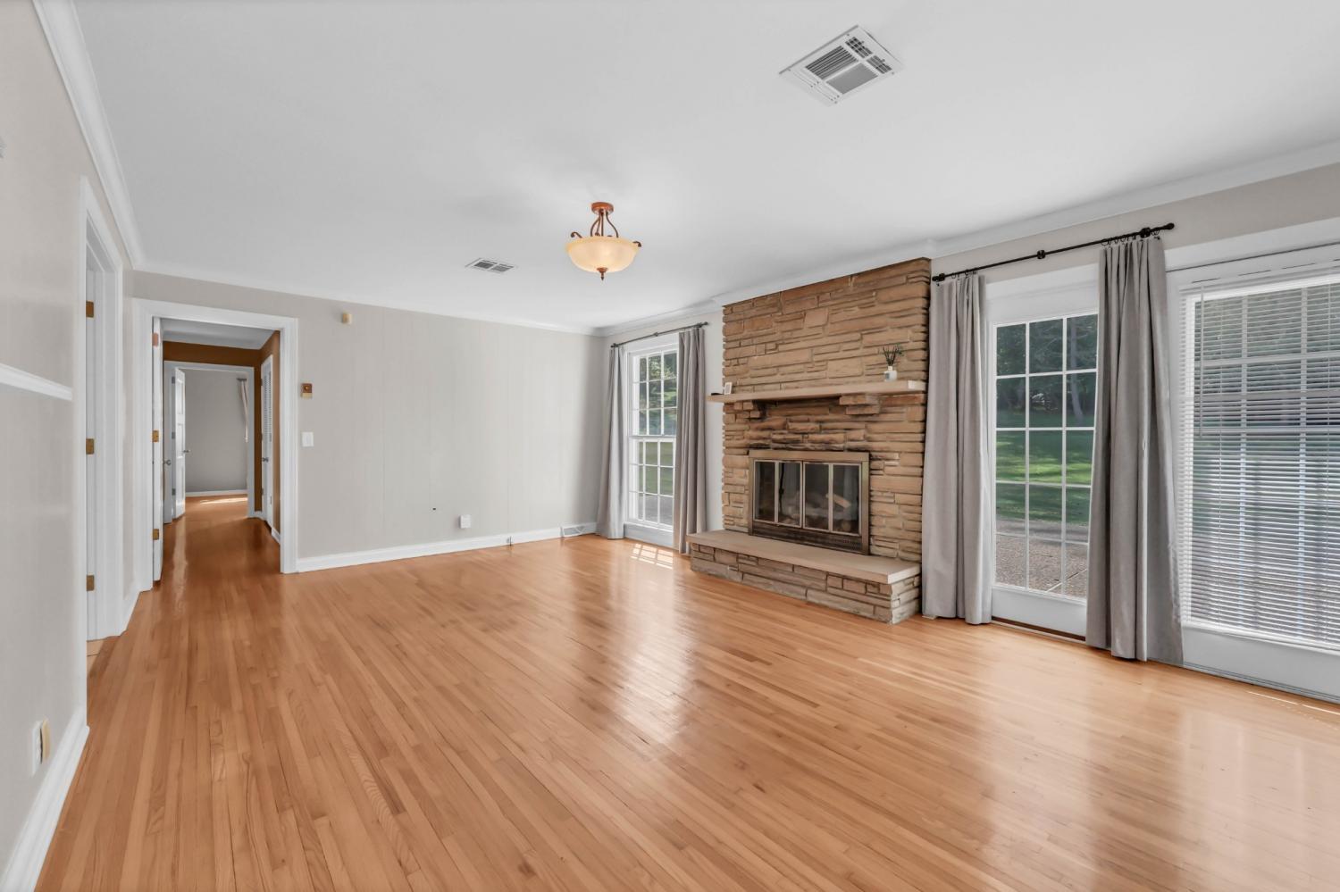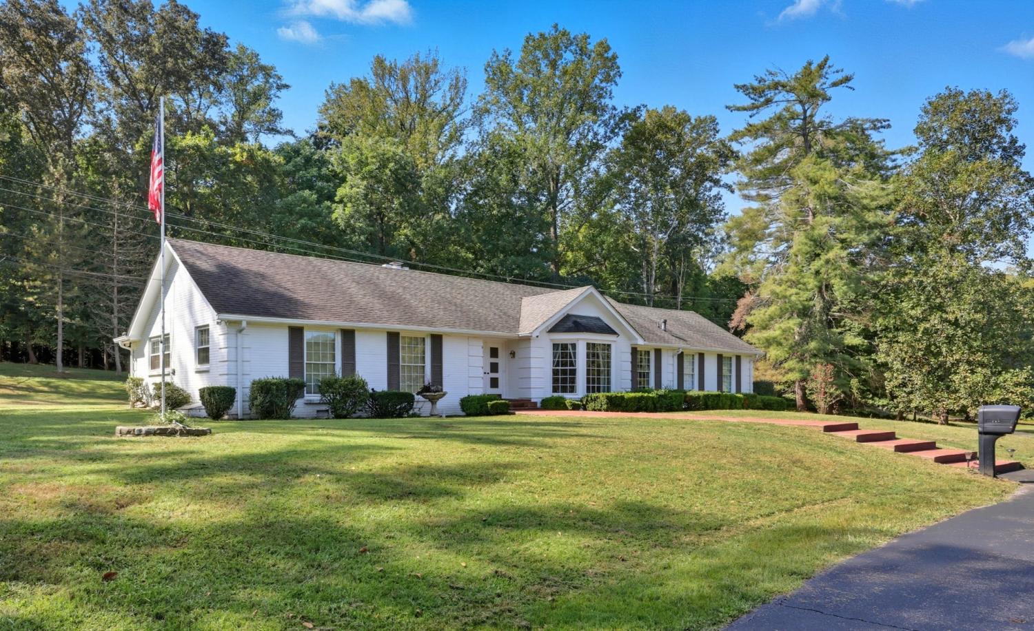 Spacious mid-century ranch set on over 2 acre lot overlooking Swan Lake Golf Course. Property features charming primary suite with double closets and bath with shower, large 2nd and 3rd bedrooms and hall bath with double sinks, formal living and dining spaces, bright kitchen with breakfast room and den with remote-controlled gas fireplace. Plus cozy 4th bedroom or bonus room over garage! Park your vehicle in one of two garage bays or on expansive driveway space. Enjoy the outdoors with large back patio and yard or wander to adjacent Dunbar Cave State Park. 6 month or 12 month lease. Showings will begin August 25 with minimum 24 hour notice. Pets on owner approval with $250/per non-refundable pet fee. $55 application fee See https://www.avail.co/l/60986806 or contact Jodi Kendall for more info.