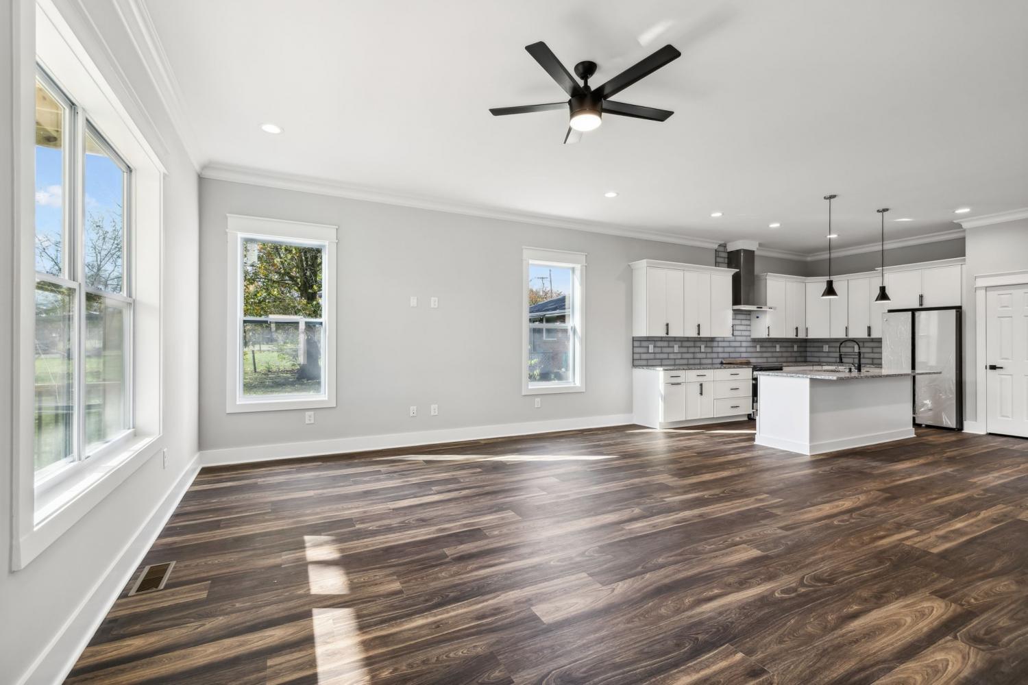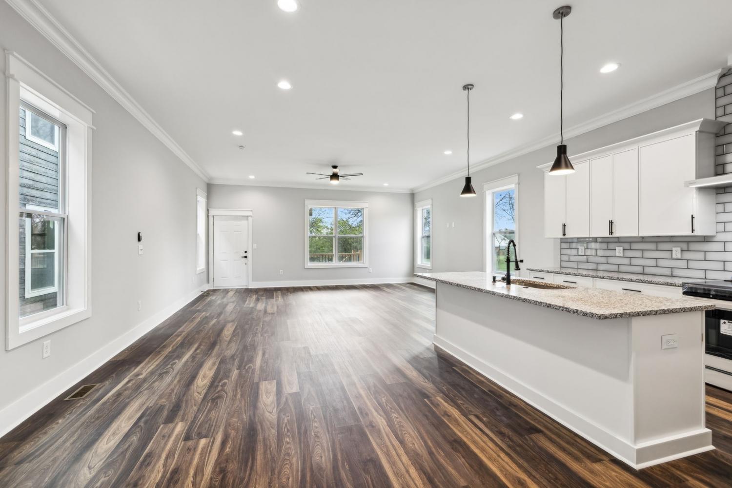 Single family home new construction in a prime location. Plenty of room for all in this 4 bedroom / 3 full bath home featuring 10-foot ceilings, LVP flooring throughout, incredible kitchen with island, granite, designer tile backsplash with white glass & stainless steel "smart" appliances. Oversized family room opens to a 22 x 12 covered deck overlooking large rear yard. The main level ensuite guest room offers a walk-in closet & is a perfect flex room for a home office. Upper-level primary suite includes an enclosed tub and shower wet area, double sinks along with a huge walk-in closet, plus an additional outdoor living space accessed off the rear of the bedroom. Secondary bedrooms off full ceramic baths and custom closets. Laundry room with sink and ample room for your washer & dryer. All in a most convenient location only minutes from schools, parks, shopping, restaurants & only a short ride to Germantown, Nashville Sounds Stadium, East Bank development & Downtown Nashville FUN!