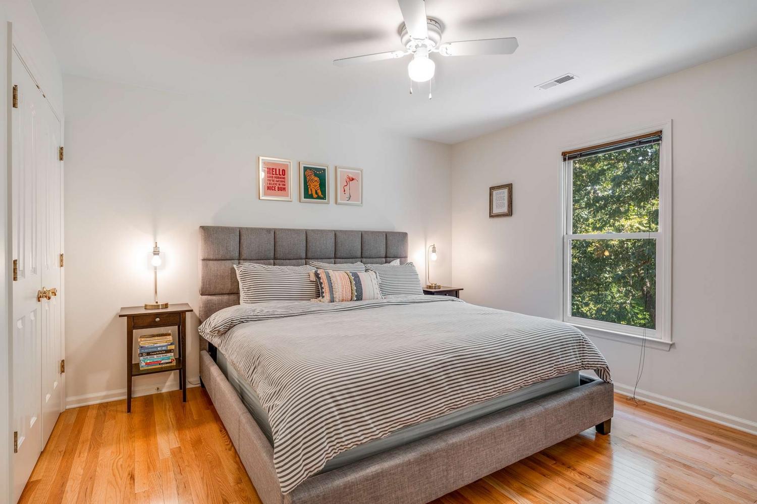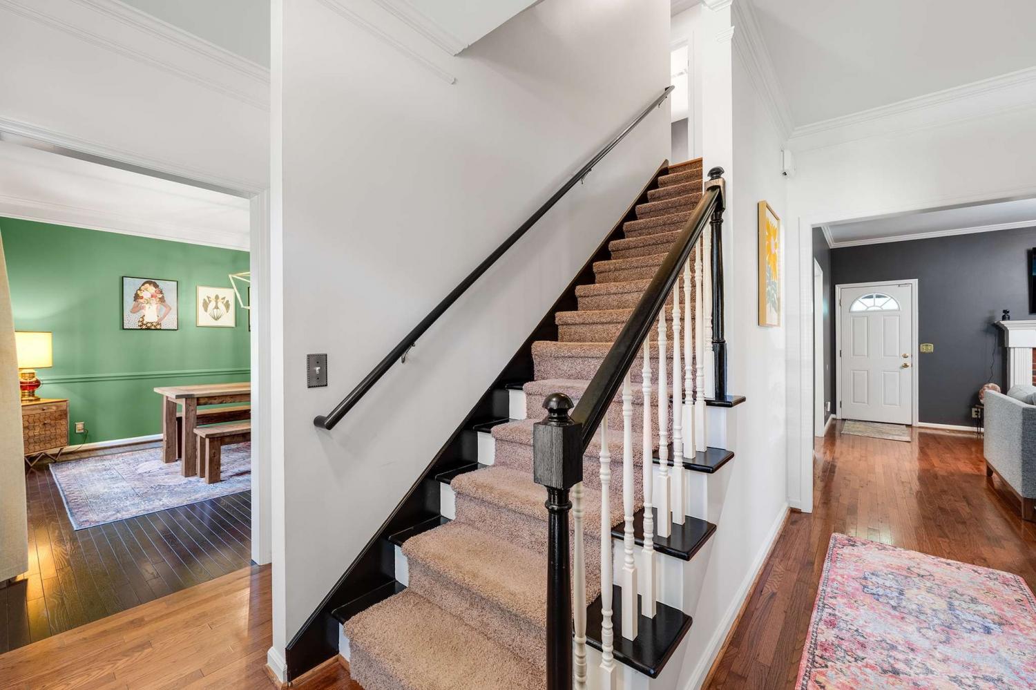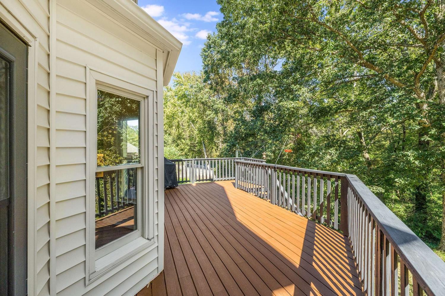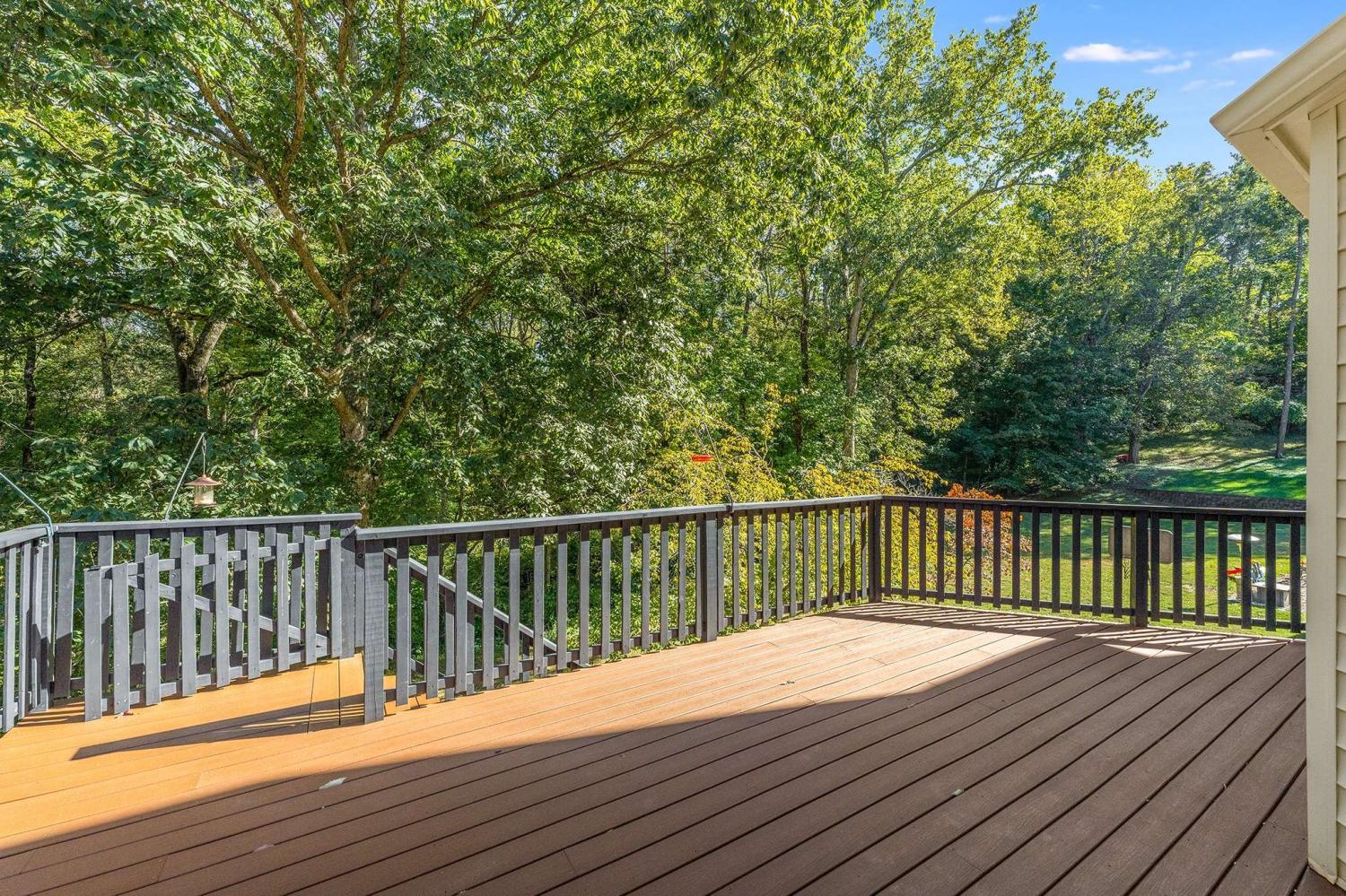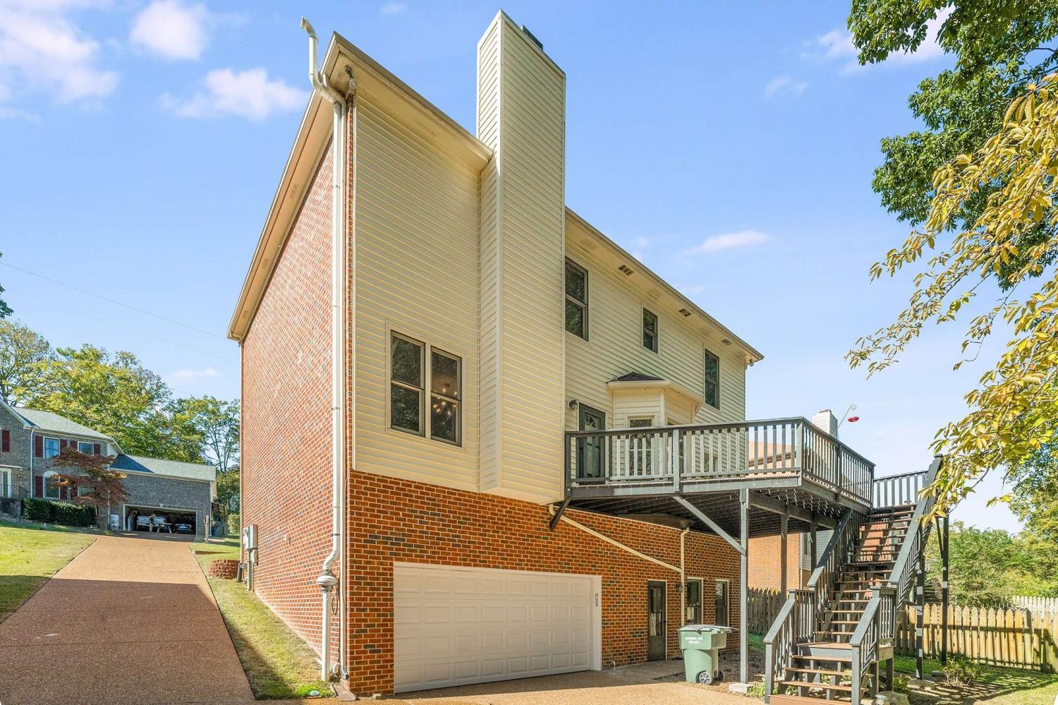 Beautifully updated 3 story Colonial backing to a wooded area for total privacy and serene, tree-lined views. This home lives like a private treehouse retreat, combining character and modern comfort with thoughtful updates throughout. The main level features 9’ ceilings, crown molding, hardwood floors, a vented gas fireplace, and double pocket doors that open to a music room, additional living area or home office. The kitchen was refreshed in 2023 with stainless appliances including a Samsung induction range, black honed granite countertops, tile backsplash, and Kraus composite sink. Step outside to the large composite deck (2022) with plenty of space for dining, seating and grilling, overlooking peaceful, tree-lined views. Upstairs, hardwoods continue through all four bedrooms. The spacious primary suite includes a tray ceiling, walk-in closet, double vanities, and a connecting flex room ideal for an additional bedroom, office or nursery. The finished lower level offers a studio or apartment setup with 9’ ceilings, Lifeproof floors (2023), a renovated full bath (2025), and walk-in closet. Additional highlights: updated light fixtures, Nest thermostats, new paint (2023), HVAC (2015), and new garage door/opener. Convenient to I-40 for easy access into town and just minutes from the Natchez Trace Parkway entrance. Zoned for highly desired Harpeth Valley Elementary.