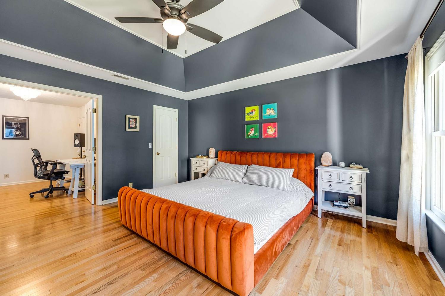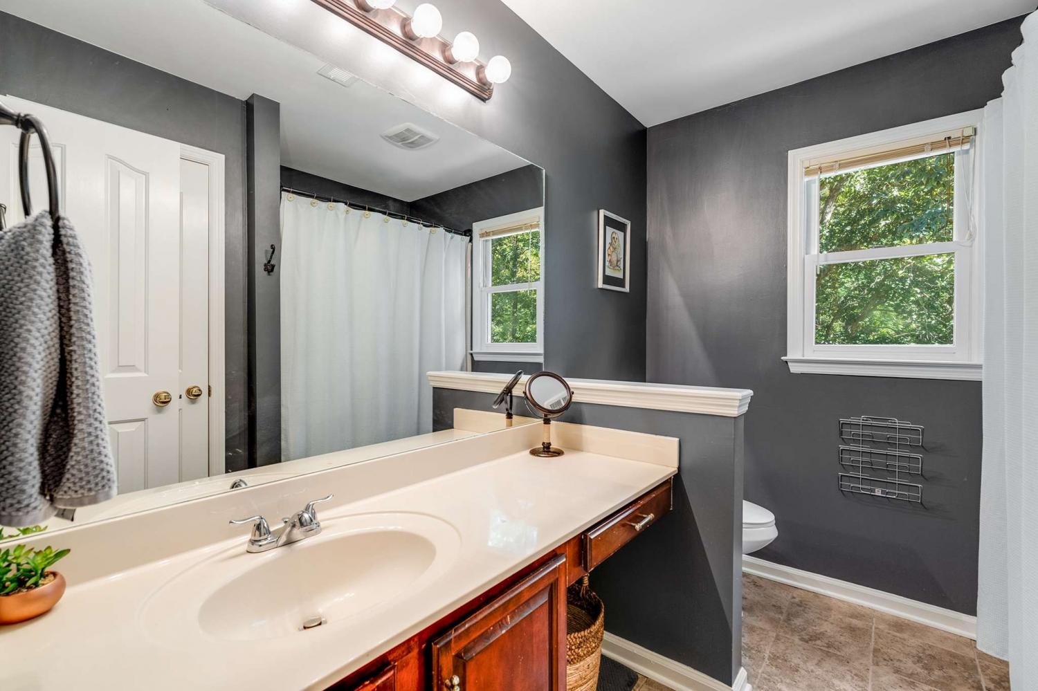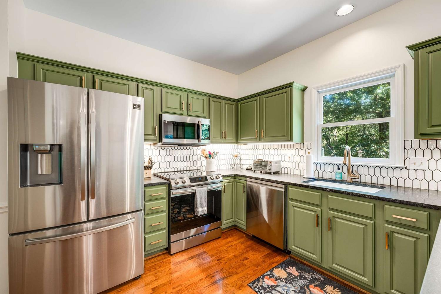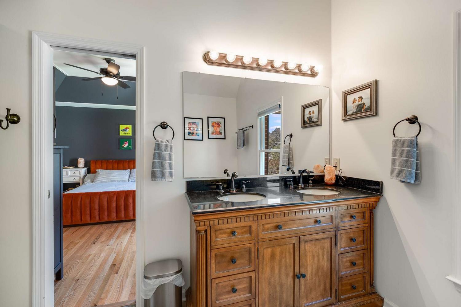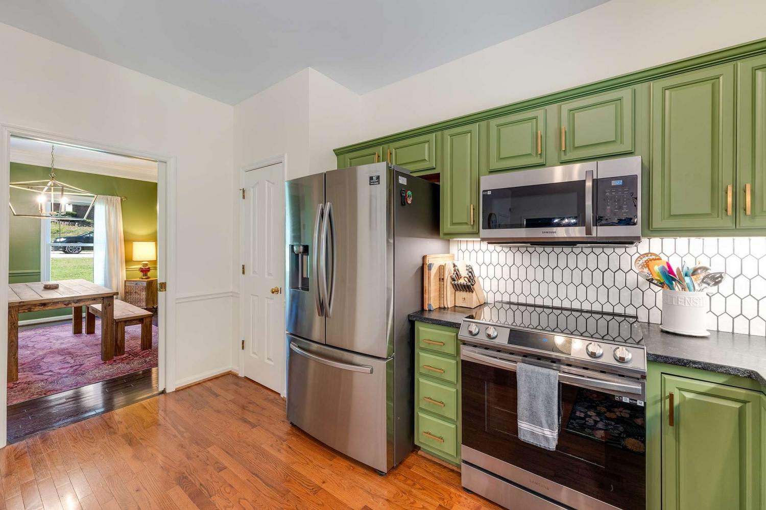 Beautifully updated 3 story Colonial backing to a wooded area for total privacy and serene, tree-lined views. This home lives like a private treehouse retreat, combining character and modern comfort with thoughtful updates throughout. The main level features 9’ ceilings, crown molding, hardwood floors, a vented gas fireplace, and double pocket doors that open to a music room, additional living area or home office. The kitchen was refreshed in 2023 with stainless appliances including a Samsung induction range, black honed granite countertops, tile backsplash, and Kraus composite sink. Step outside to the large composite deck (2022) with plenty of space for dining, seating and grilling, overlooking peaceful, tree-lined views. Upstairs, hardwoods continue through all four bedrooms. The spacious primary suite includes a tray ceiling, walk-in closet, double vanities, and a connecting flex room ideal for an additional bedroom, office or nursery. The finished lower level offers a studio or apartment setup with 9’ ceilings, Lifeproof floors (2023), a renovated full bath (2025), and walk-in closet. Additional highlights: updated light fixtures, Nest thermostats, new paint (2023), HVAC (2015), and new garage door/opener. Convenient to I-40 for easy access into town and just minutes from the Natchez Trace Parkway entrance. Zoned for highly desired Harpeth Valley Elementary.