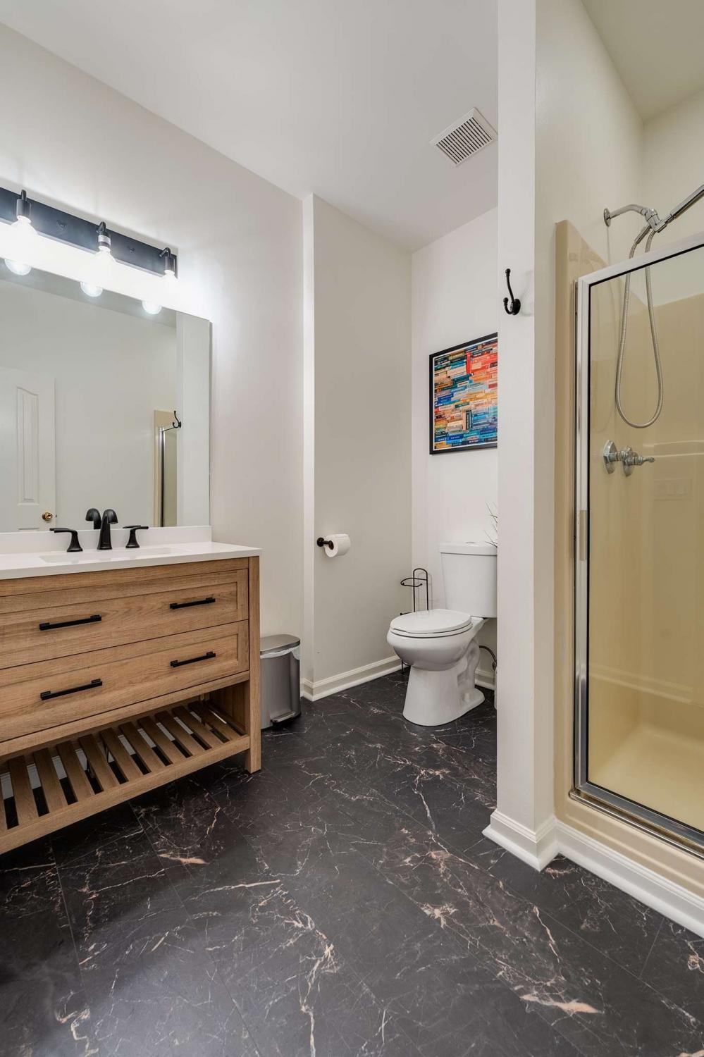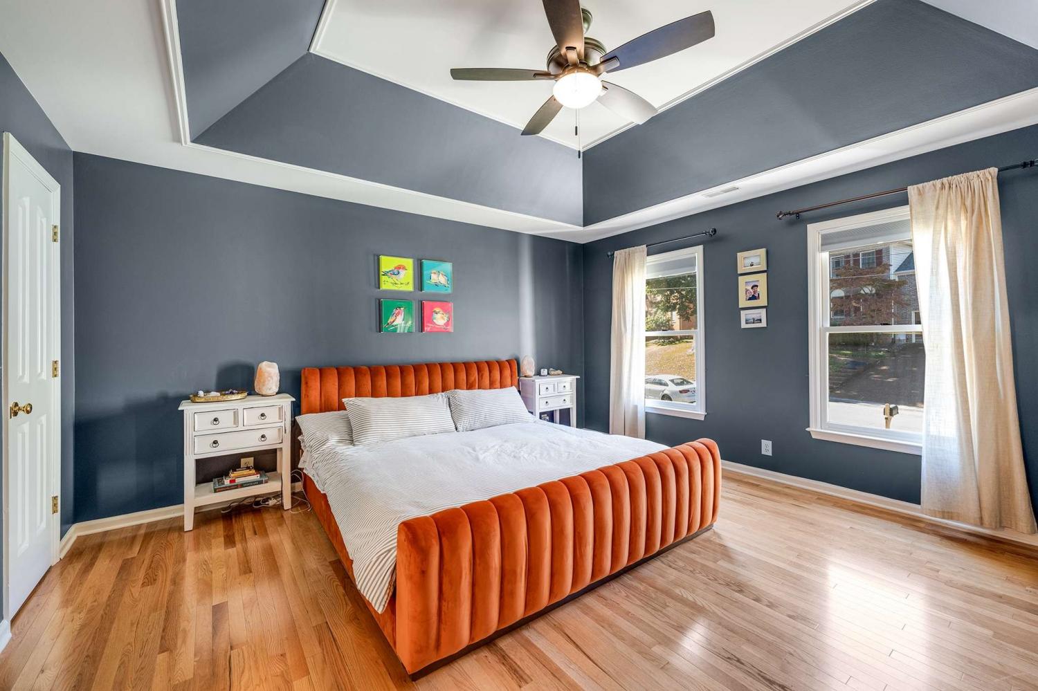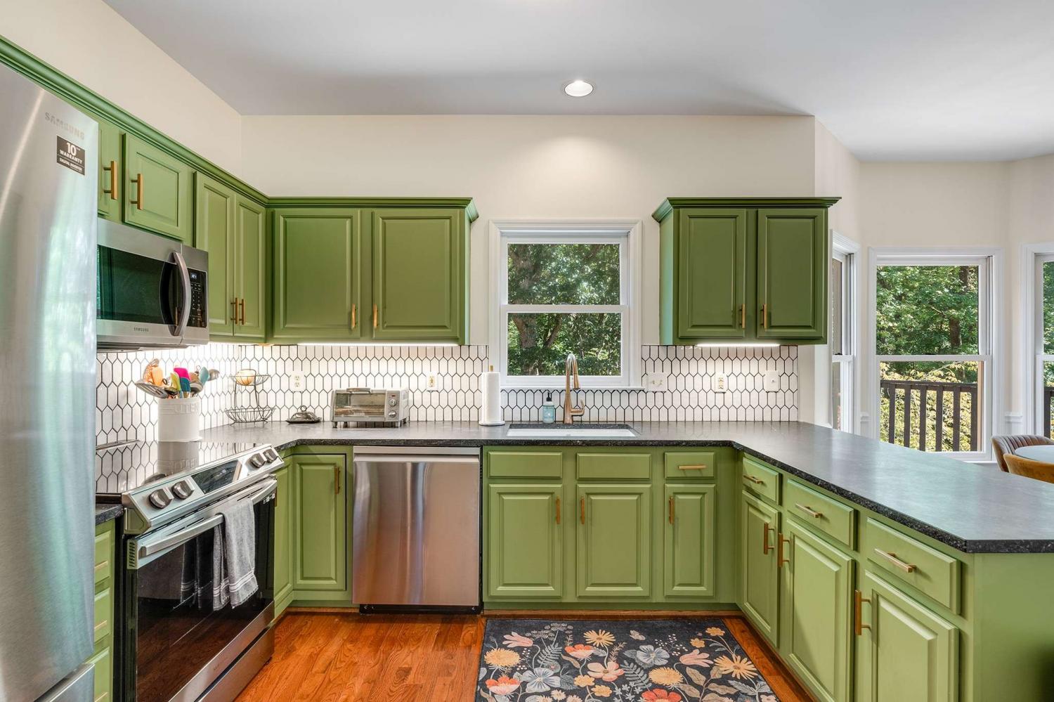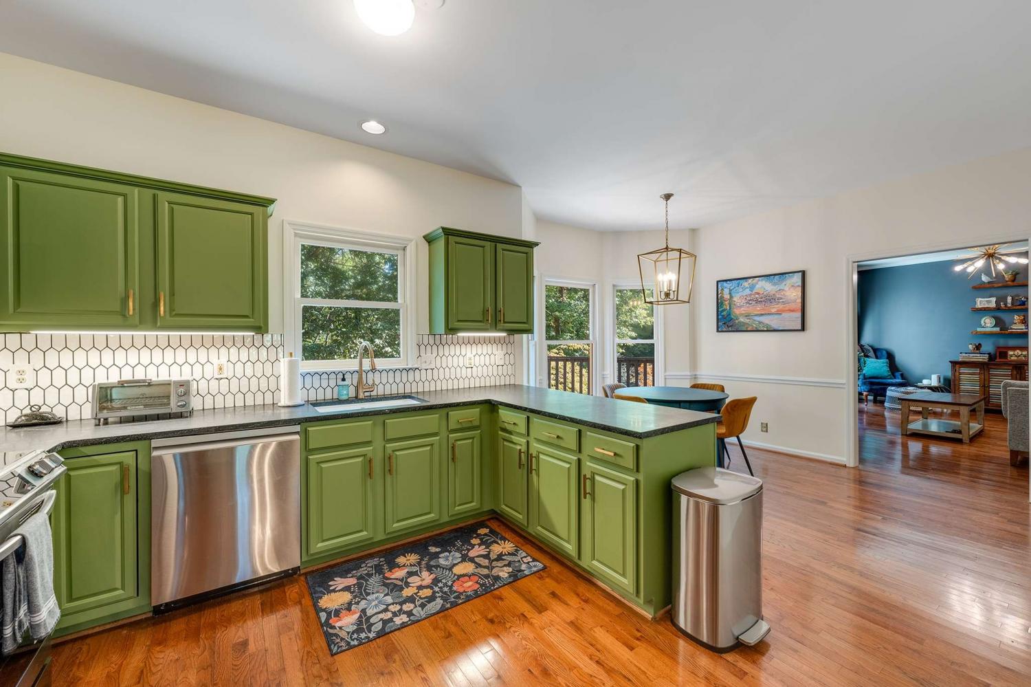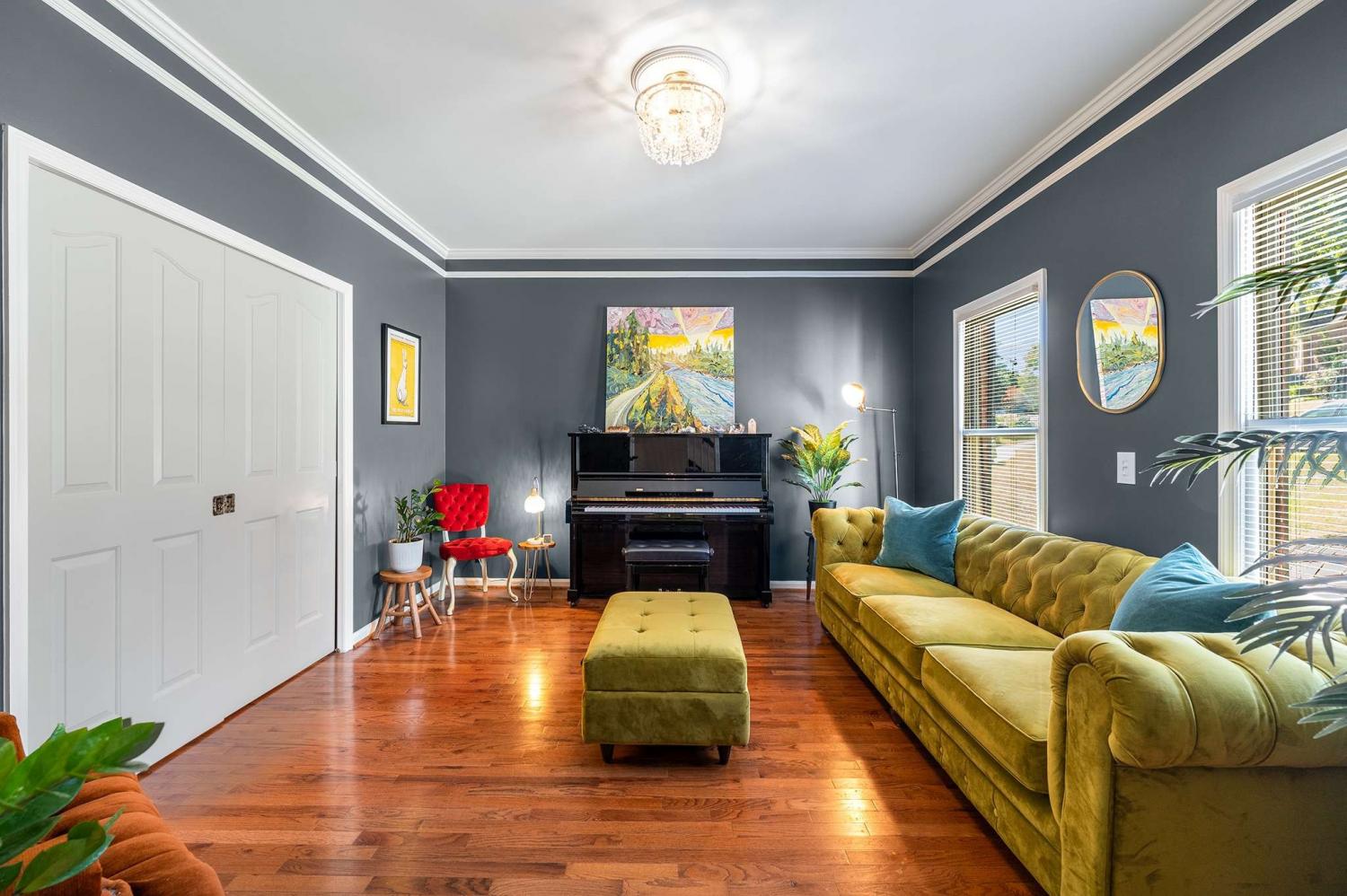 Beautifully updated 3 story Colonial backing to a wooded area for total privacy and serene, tree-lined views. This home lives like a private treehouse retreat, combining character and modern comfort with thoughtful updates throughout. The main level features 9’ ceilings, crown molding, hardwood floors, a vented gas fireplace, and double pocket doors that open to a music room, additional living area or home office. The kitchen was refreshed in 2023 with stainless appliances including a Samsung induction range, black honed granite countertops, tile backsplash, and Kraus composite sink. Step outside to the large composite deck (2022) with plenty of space for dining, seating and grilling, overlooking peaceful, tree-lined views. Upstairs, hardwoods continue through all four bedrooms. The spacious primary suite includes a tray ceiling, walk-in closet, double vanities, and a connecting flex room ideal for an additional bedroom, office or nursery. The finished lower level offers a studio or apartment setup with 9’ ceilings, Lifeproof floors (2023), a renovated full bath (2025), and walk-in closet. Additional highlights: updated light fixtures, Nest thermostats, new paint (2023), HVAC (2015), and new garage door/opener. Convenient to I-40 for easy access into town and just minutes from the Natchez Trace Parkway entrance. Zoned for highly desired Harpeth Valley Elementary.